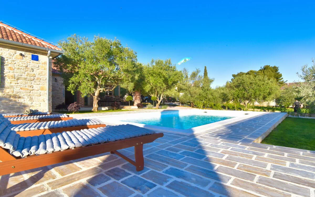 Maison individuelle "Mate Ceko", année de construction 2016. À 2.5 km du centre de Sukošan, situation ensoleillée, à 110 m de la mer, à 110 m de la plage. A usage privé: terrain 1'000 m2 (clôturé), piscine (8 x 4 m, disponibilité saisonnière: 01.Mai. - 01.Oct.) avec marches intérieures. Meubles de jardin. Infrastructures de la Maison: accès internet, lave-linge. Place de parking (pour 3 voitures) près de la maison sur le terrain. Magasins 380 m, restaurant 1 km, arrêt de bus 2.1 km, plage de graviers 110 m.