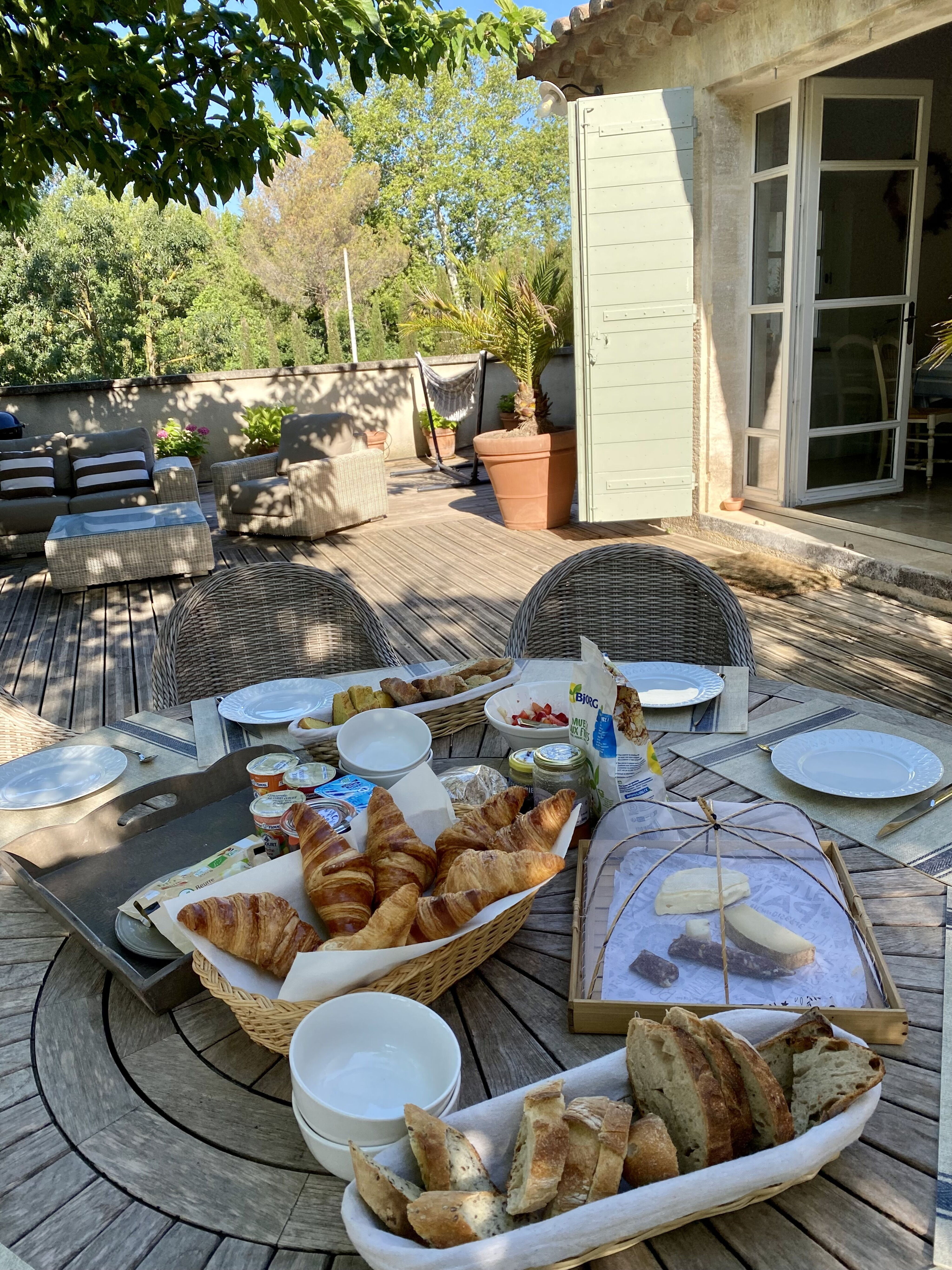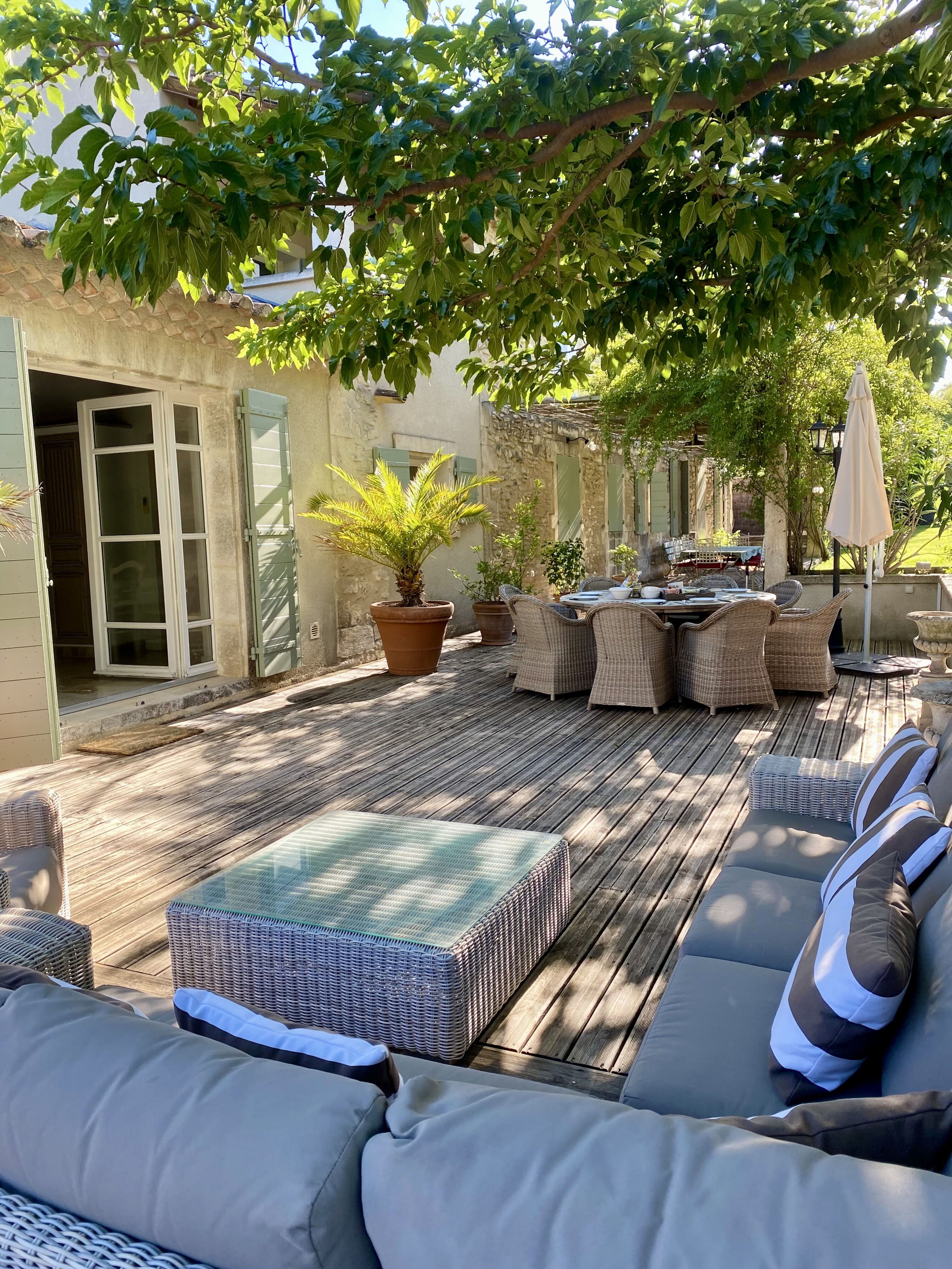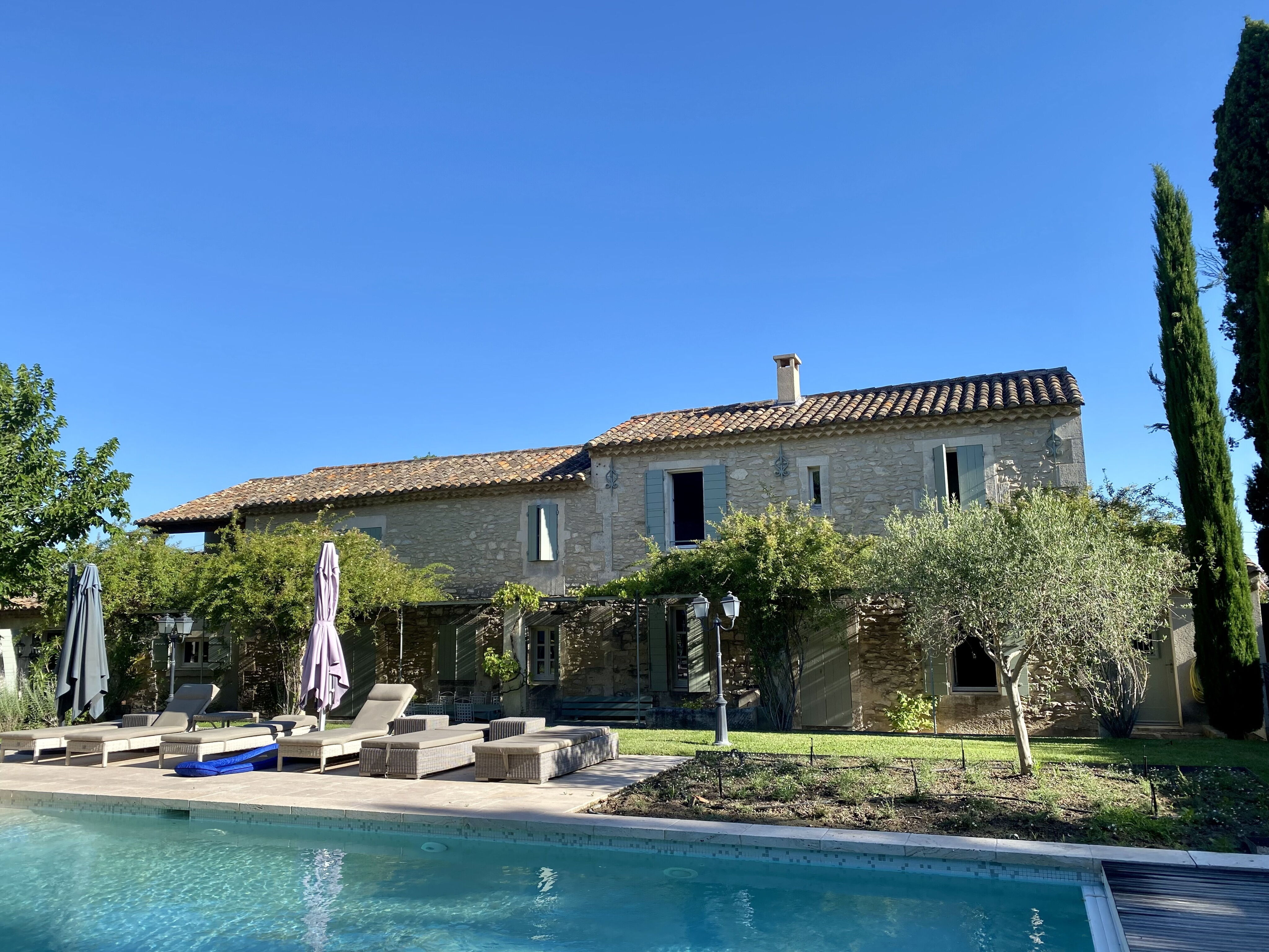 Mas "La Villebague", année de construction 1850, renové en 2012. Dans la localité, à 1 km du centre. A usage privé: terrain 700 m2 (clôturé) avec arbres, piscine chauffée (5 x 12 m, profondeur 130 cm, disponibilité saisonnière: 01.Mar. - 30.Oct.) avec protection par couverture de volet. Pool house avec réfrigérateur, ping-pong, terrasse (200 m2), meubles de jardin, barbecue. Infrastructures de la Maison: chauffage central. Change de linge 1 fois par semaine. Sur demande possibilité d'achat avant l'arrivée. Accès en voiture (300 m chemin non goudronné). Magasins 800 m, restaurant, gare ferroviaire "Avignon TGV" 21 km. Terrain de golf (18 trous) 10 km, tennis 800 m. Attractions à proximité: Les Baux de Provence 11 km, Cité des Papes 23 km, Gordes 45 km, Marseille 88 km. Parking privé sur un terrain attenant de 800 m². Terrain clos par un portail électrique. Possibilité de service taxi sur demande (en sus) par le responsable des clés.