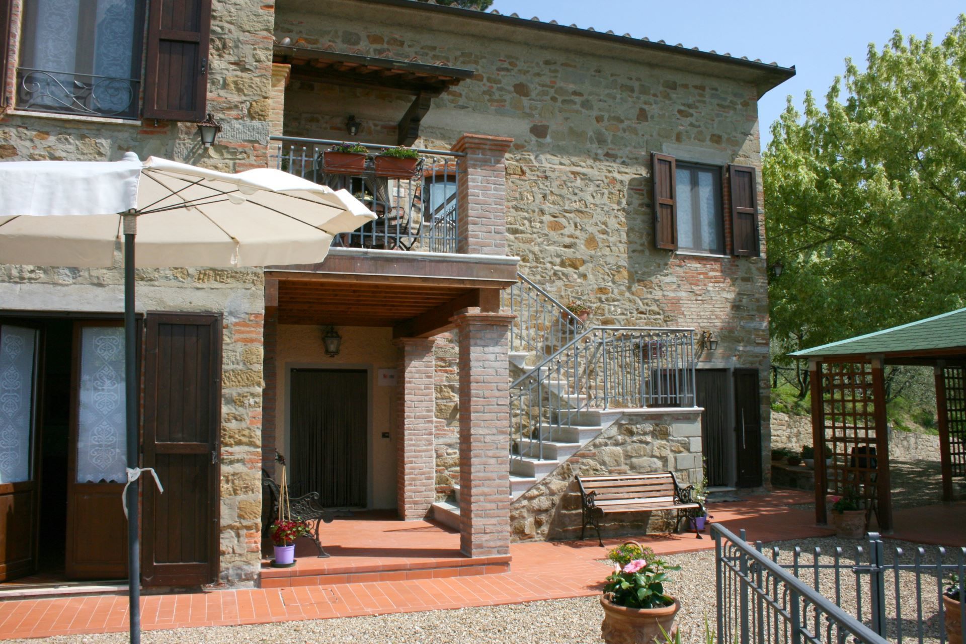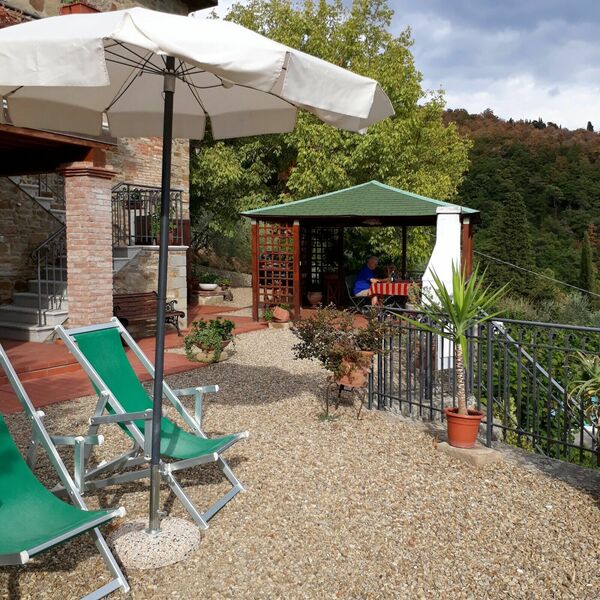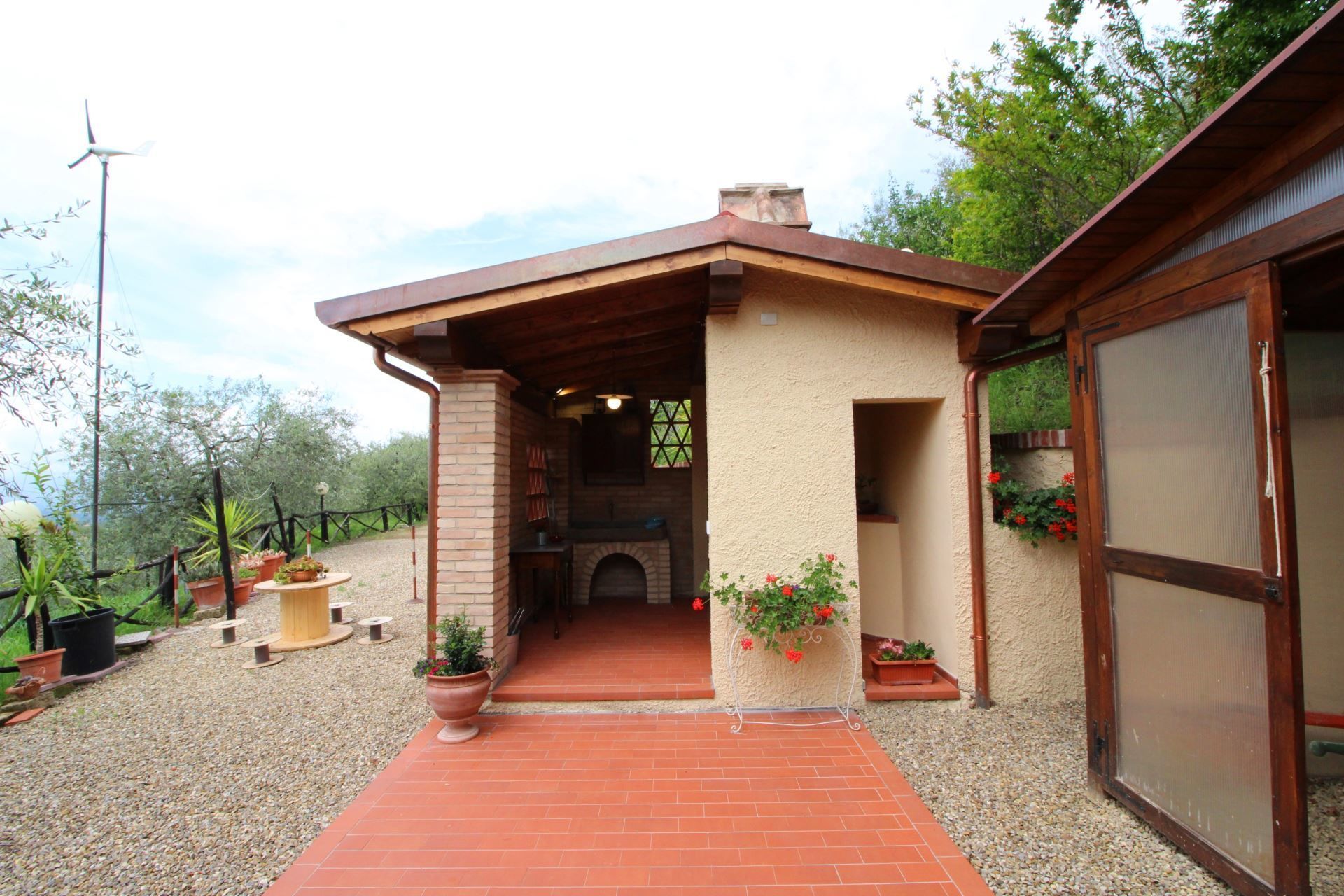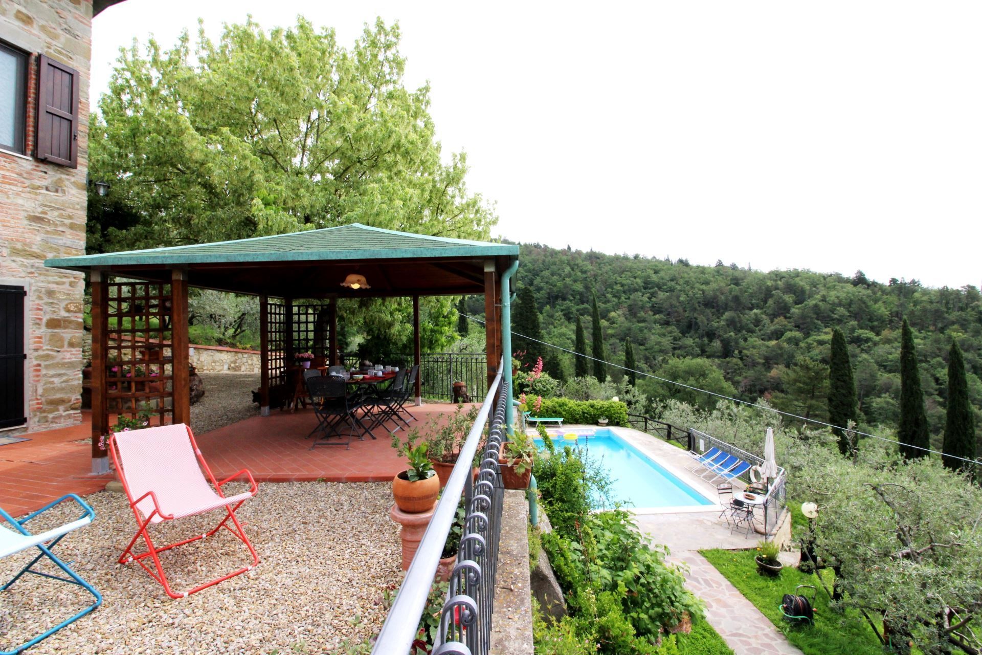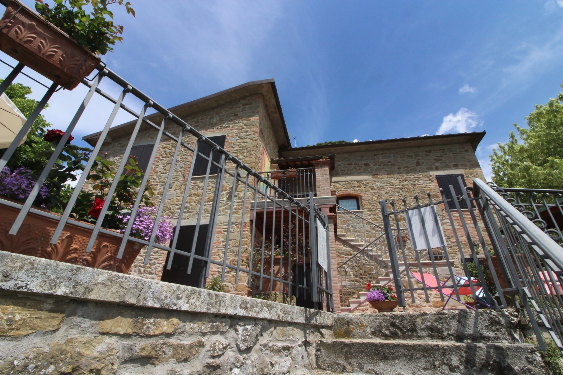 La maison est installée sur les pentes du Pratomagno qui s'incline en formant de vastes terrasses naturelles garnies d'oliviers jusqu'à la route dite des '7 ponts', construite sur le tracé d'une ancienne voie étrusque.