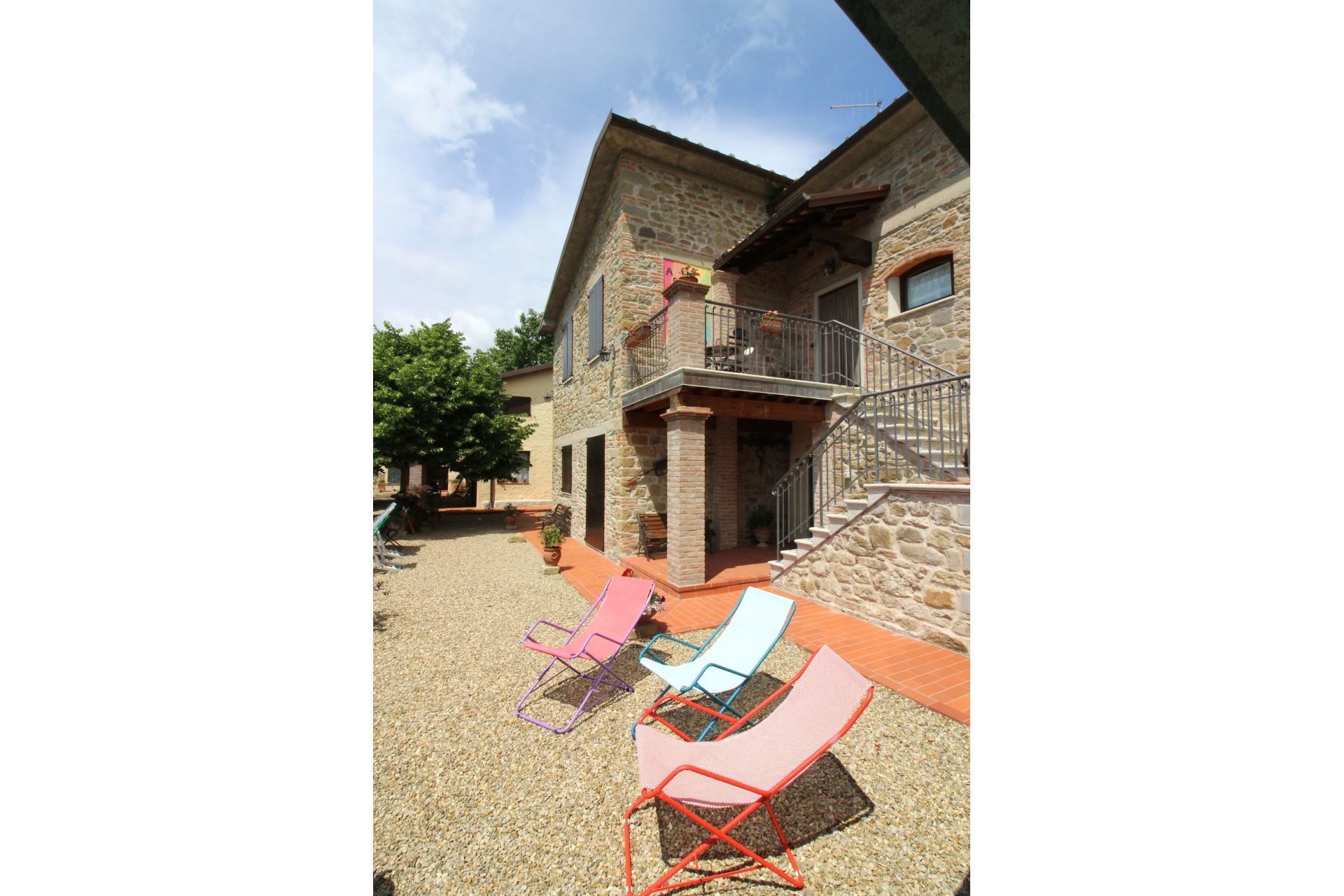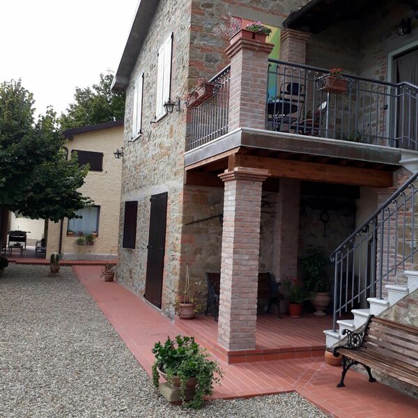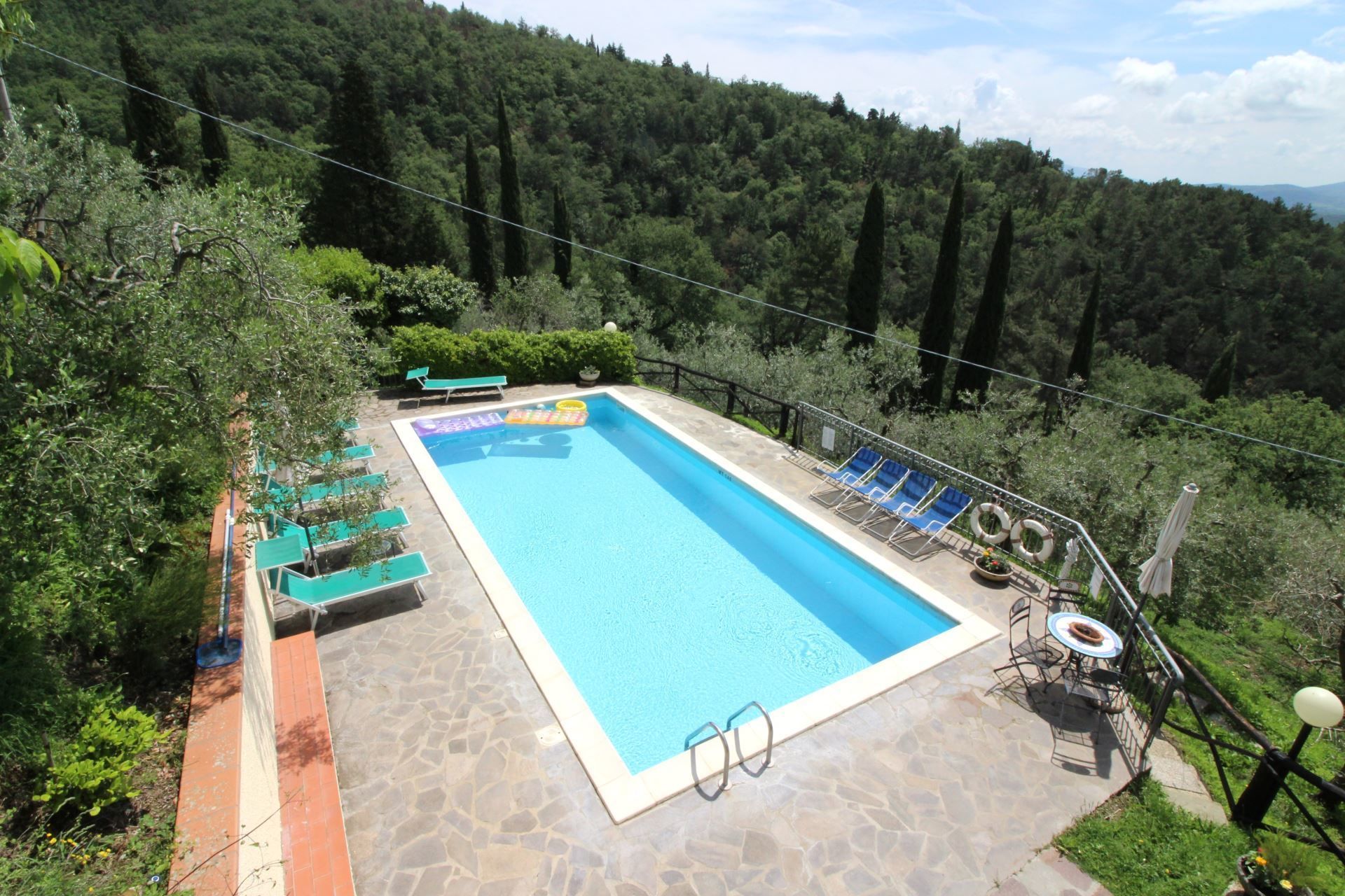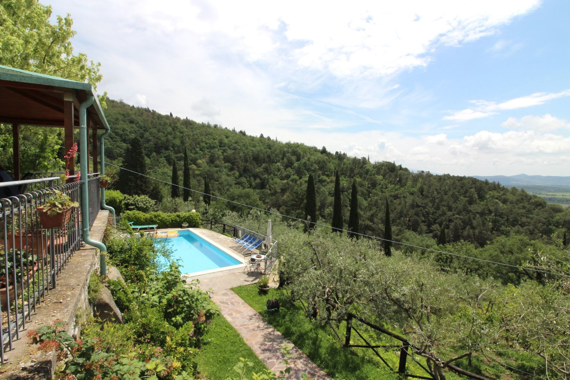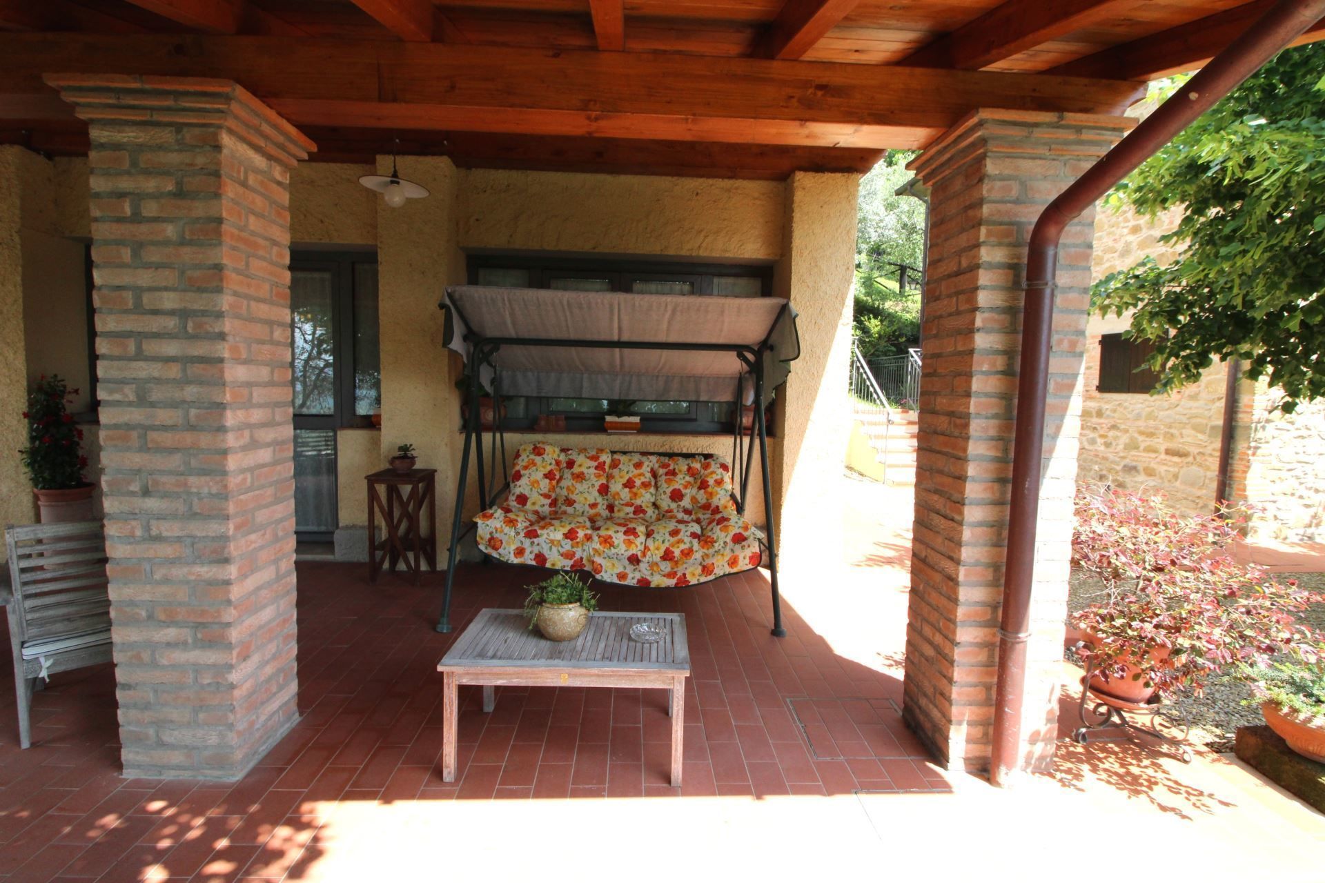 La maison est installée sur les pentes du Pratomagno qui s'incline en formant de vastes terrasses naturelles garnies d'oliviers jusqu'à la route dite des '7 ponts', construite sur le tracé d'une ancienne voie étrusque.