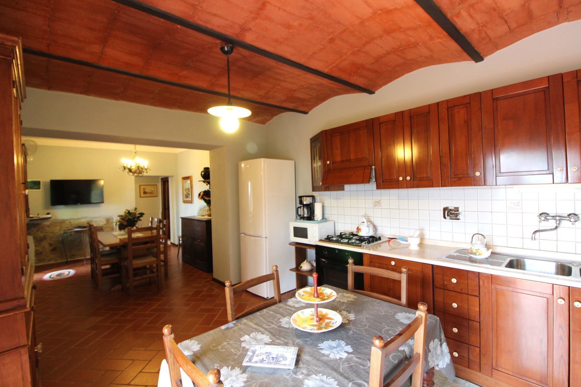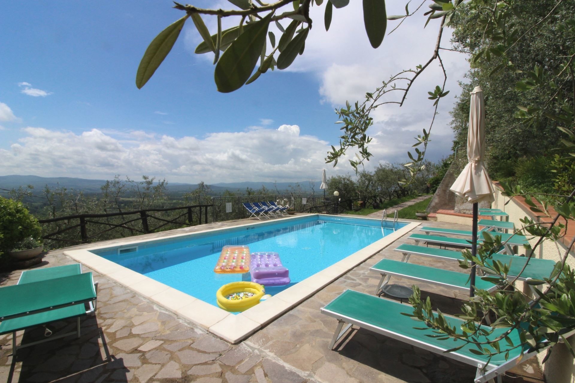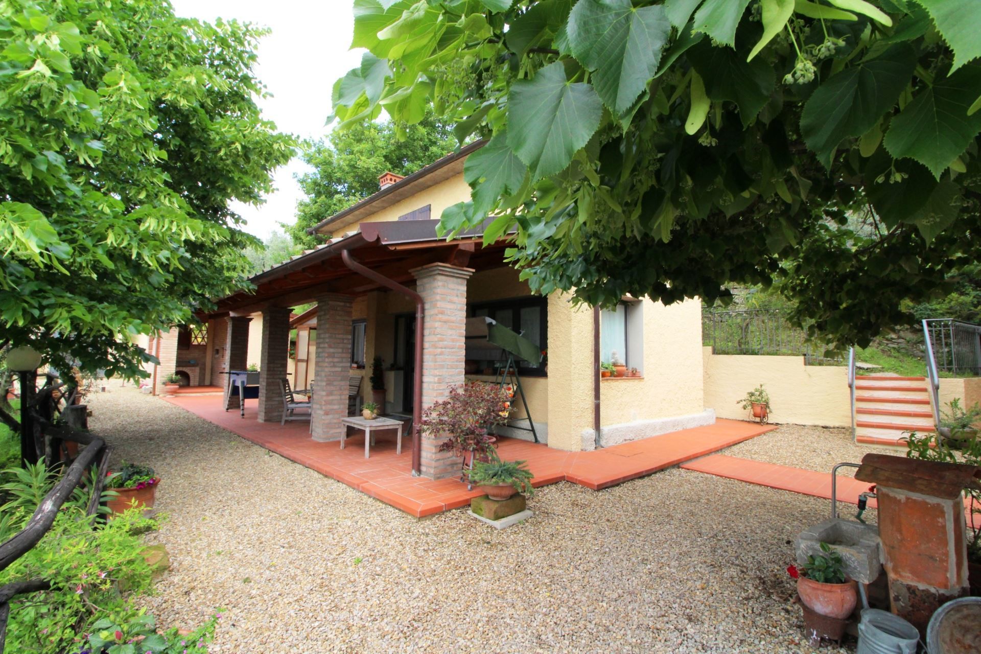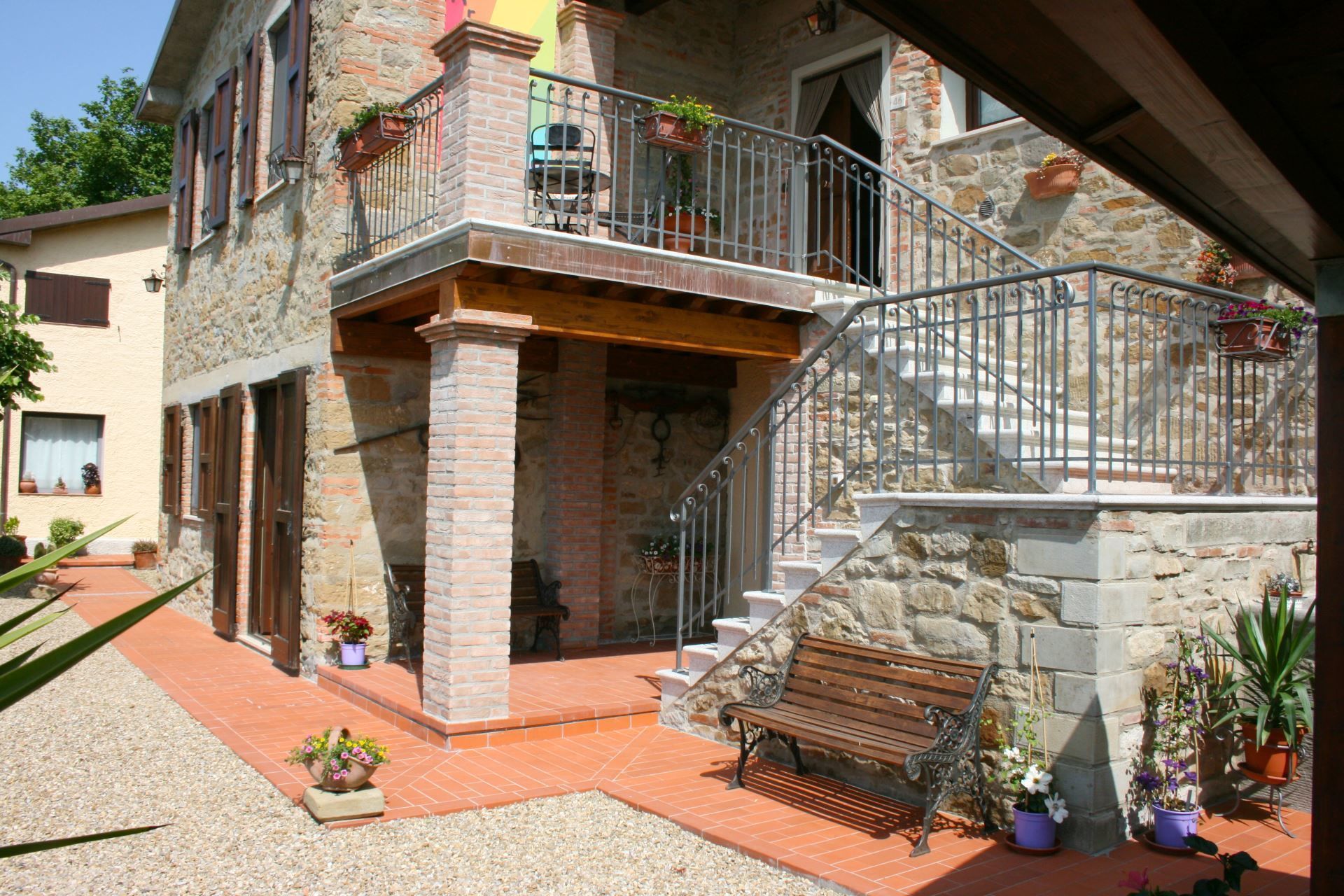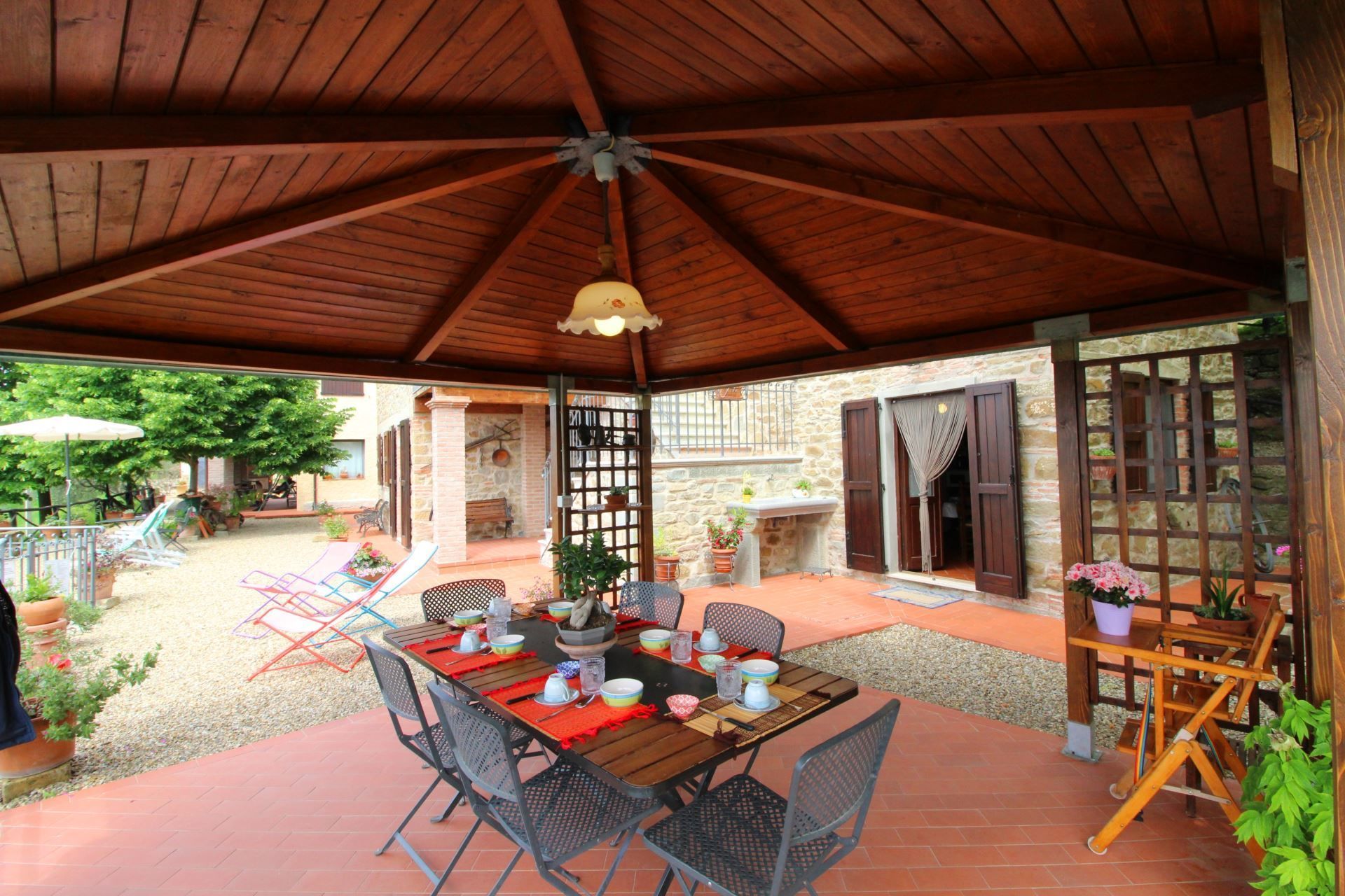 La maison est installée sur les pentes du Pratomagno qui s'incline en formant de vastes terrasses naturelles garnies d'oliviers jusqu'à la route dite des '7 ponts', construite sur le tracé d'une ancienne voie étrusque.
