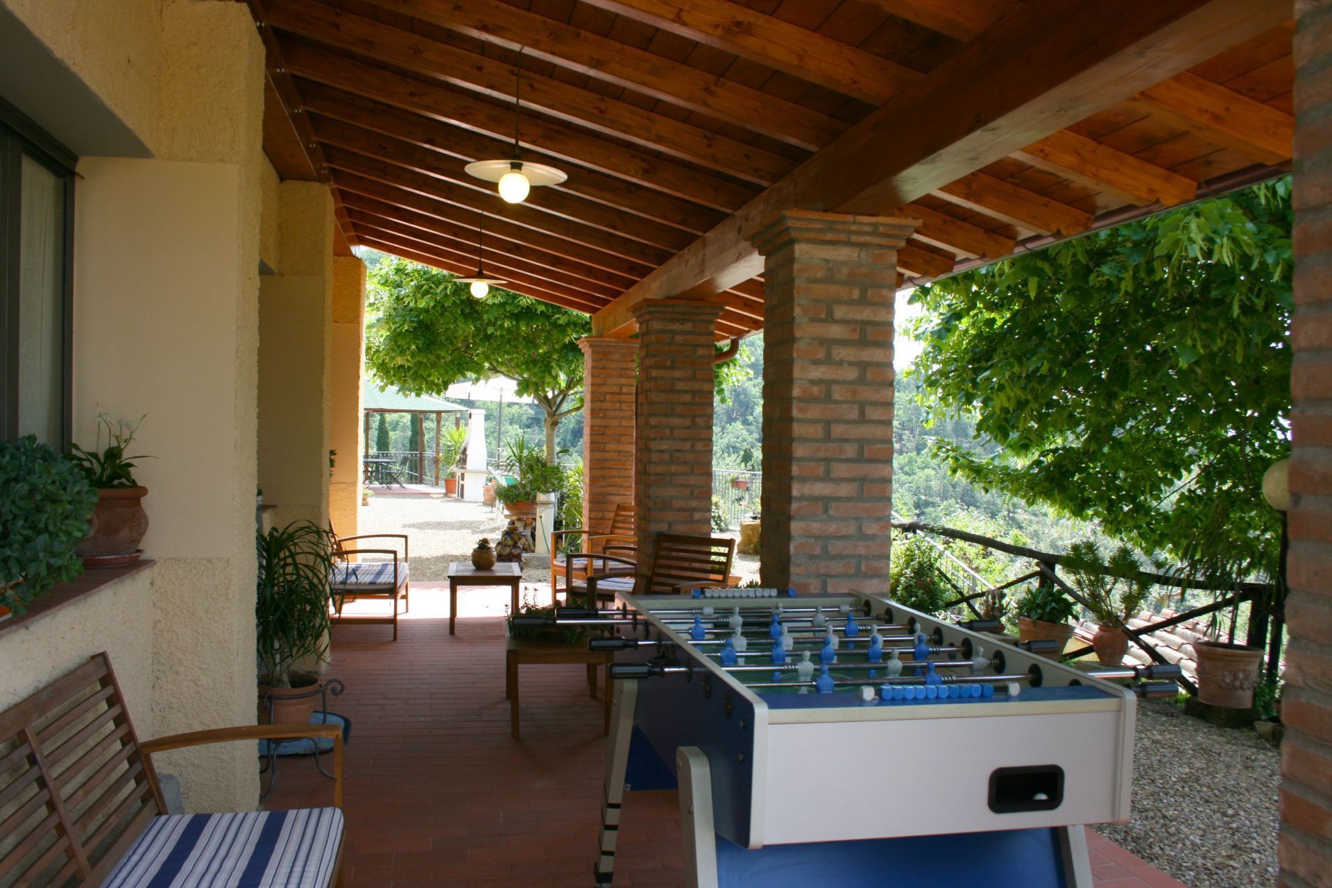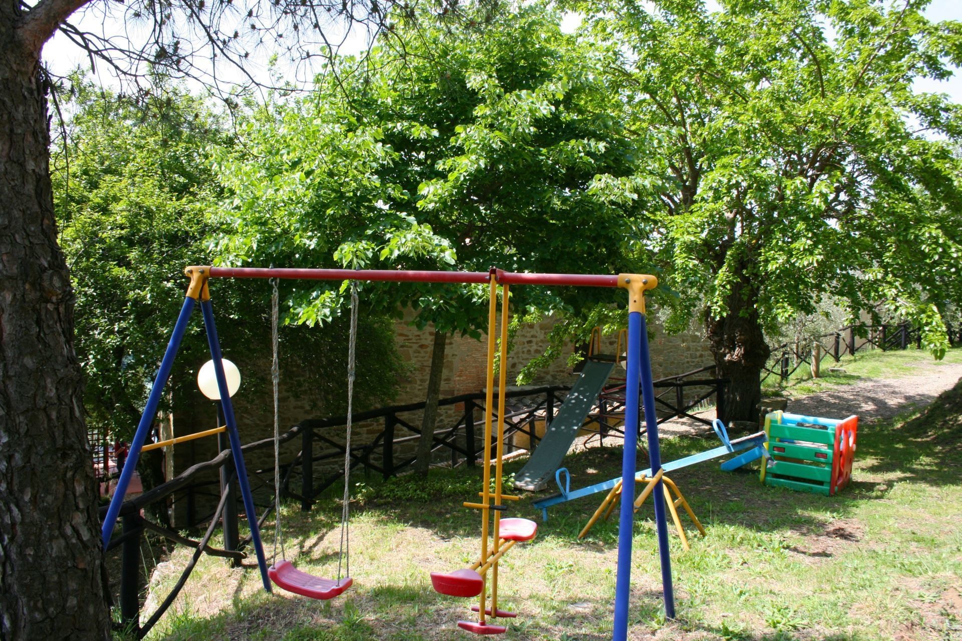 Entourant la villa, parmi les oliviers et les bois de chêne, se trouve une aire de jeu pour enfants et un table de ping-pong.