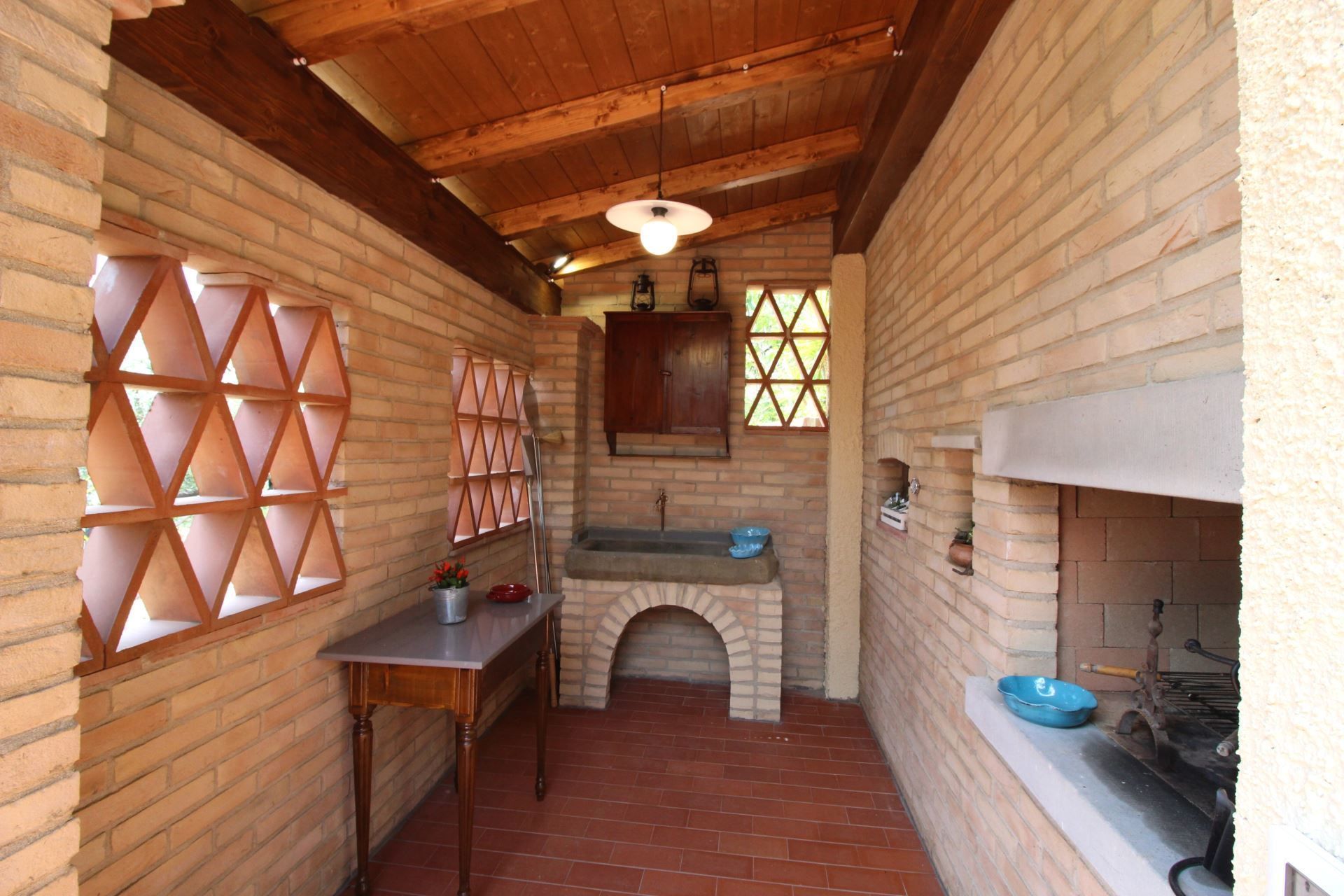 Devant la villa se trouve un agréable pergola en bois équipé avec table, chaises et barbecue pour manger dehors. Connexion Wi-Fi disponible dans le jardin et la maison.