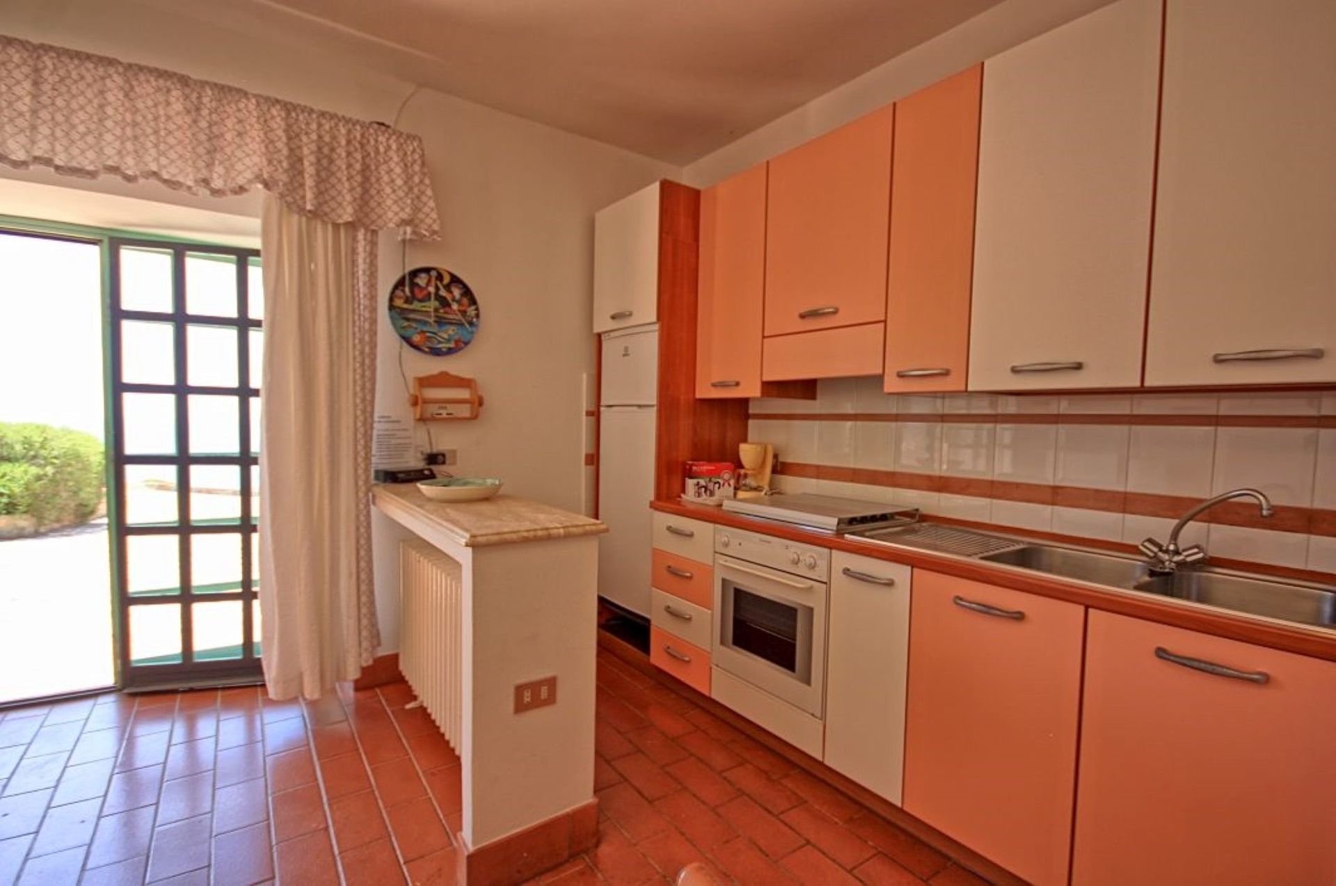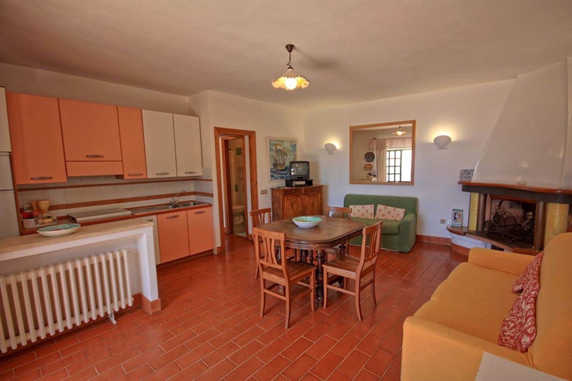 Cuisine – salle de séjour: table à manger, réfrigérateur, cuisinière, four, fer à repasser, machine à café italienne, canapé, cheminée, lit à une place, tv satellitaire, télévision, sortie sur le jardin.