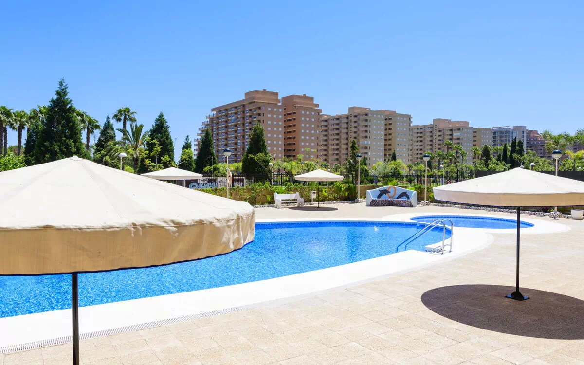 Urb. Marina d'Or: Petite résidence "Marina d'Or - Costa Azahar I", année de construction 2006. En-dehors de la localité, à 3 km du centre d'Oropesa del Mar, situation animée, ensoleillée, à 300 m de la mer. En commun: parc, jardin, piscine (20 x 10 m, profondeur 70 - 240 cm, disponibilité saisonnière: 01.Jun. - 30.Sep. horaires d'ouverture de la piscine: 11:00-15:00 et 17:00-21:00). Bassin pour les enfants, douche extérieure, espace de jeux pour les enfants. Infrastructures de la Maison: ascenseur. Supermarché 600 m, restaurant, bar 20 m, gare ferroviaire "Oropesa del Mar" 3 km, plage de sable 300 m. Groupes de jeunes sur demande seulement. Veuillez noter: D’autres appartements sont également proposés à la location dans cette maison de vacances. Environnement très sensible au bruit. Silence et bonne tenue exigés.