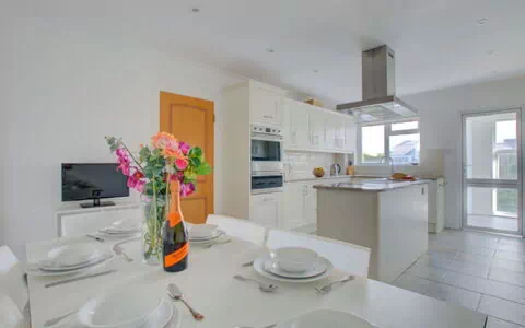 À 15 km de Wadebridge: Grande maison confortable "Trey". À 1 km de la mer, à 1 km de la plage. A usage privé: jardin avec pelouse. Jardinet, meubles de jardin, barbecue, place de parking près de la maison. Magasins, magasin d'alimentation, restaurant, bar 200 m, gare ferroviaire "Newquay" 18 km. Terrain de golf (18 trous) 2 km. Attractions à proximité: Goss Moor Natural Reserve, Owl Sanctuary 17 km, Eden Project 32 km, Newquay (harbour, aquarium, golf, zoo) 18 km, Trevose Heritage Coast and Golf Club 2 km, Tintagel Castle 36 km, Polperro Heritage Coast 41 km.