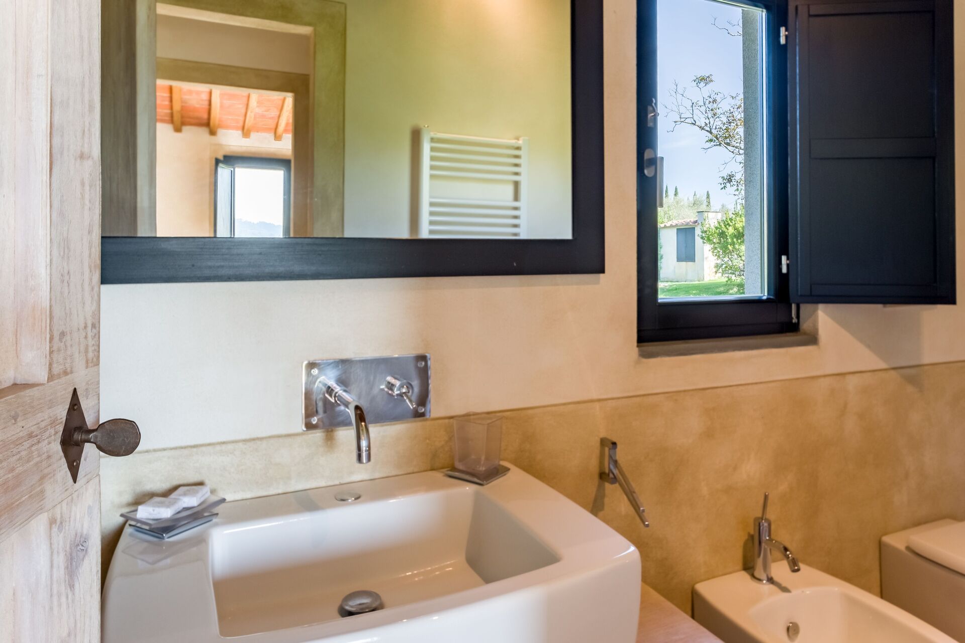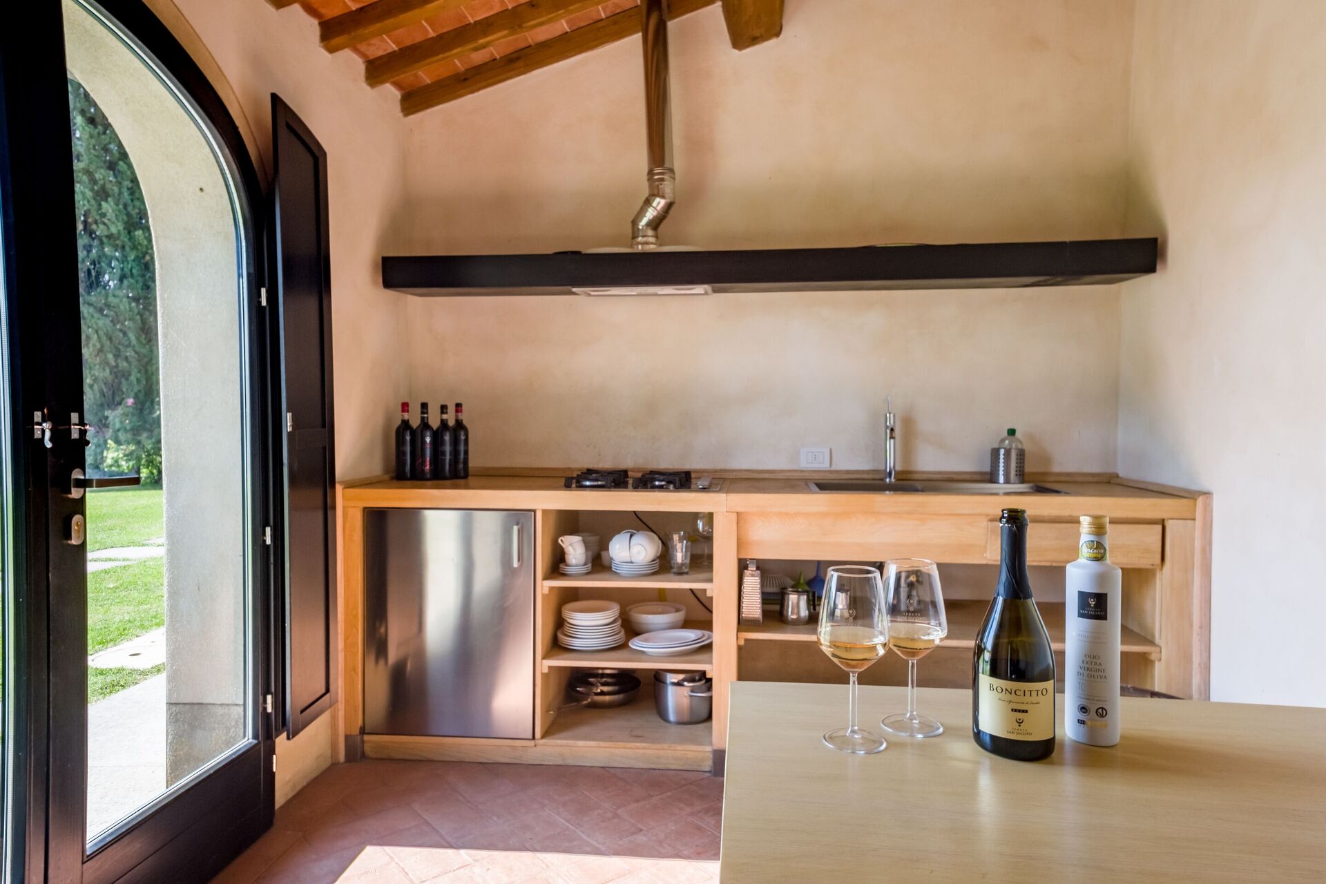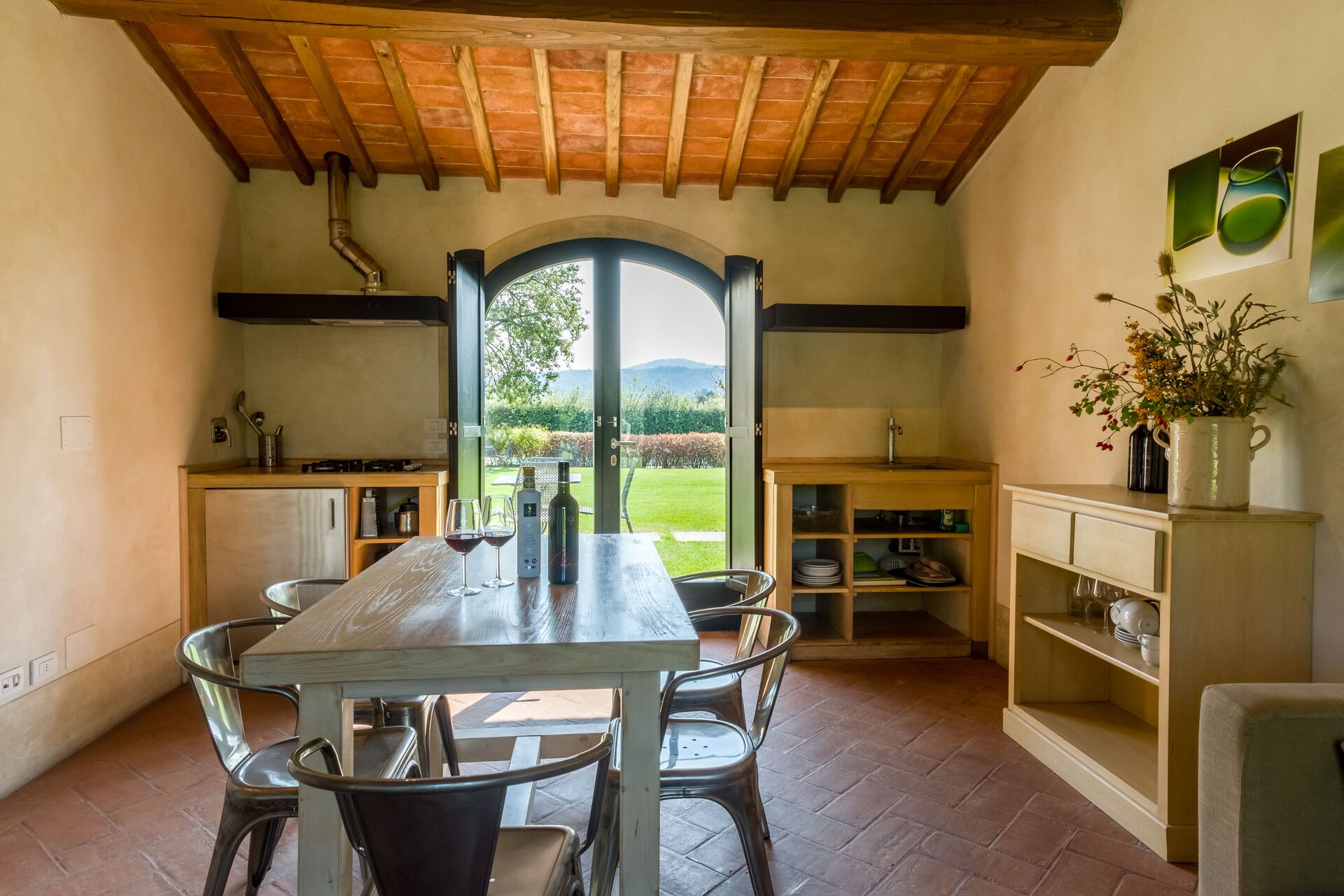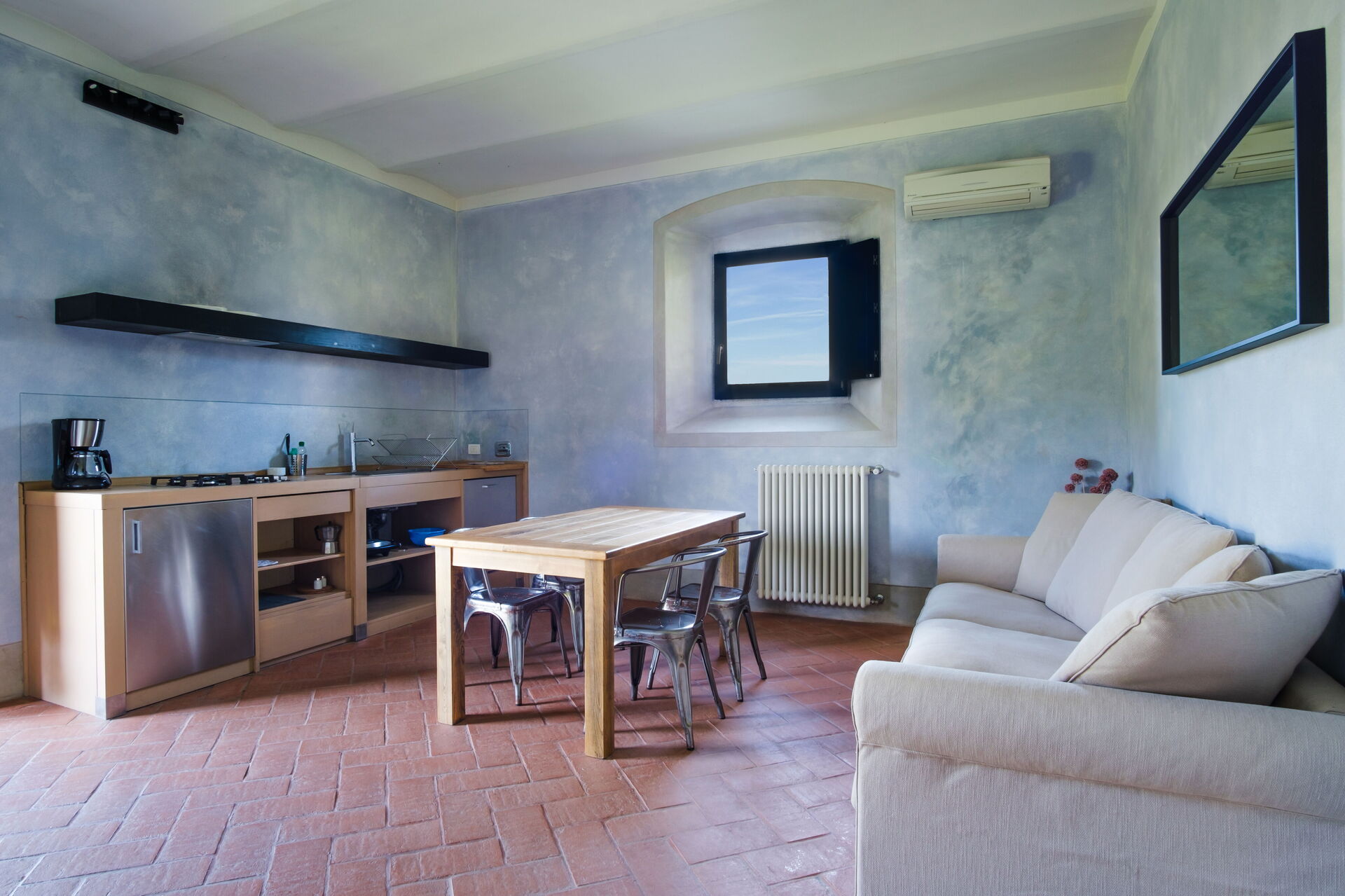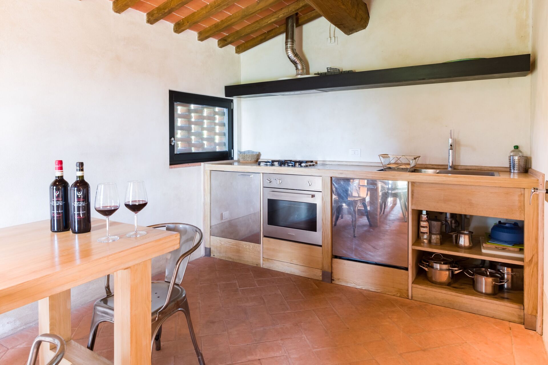 Cette ravissante bâtisse en pierre regorge de charme et de caractère. Ancienne résidence d’un prêtre, la Villa La Canonica Di Pietrafitta est composée d’une ancienne église avec un clocher et de plusieurs petits bâtiments en pierre reliés pour former une propriété impressionnante autour d’une cour pavée. L’ensemble évoque un petit hameau à part entière et donne aux invités l’impression d’avoir pris possession d’un véritable village toscan pendant leur séjour en vacances en Toscane!