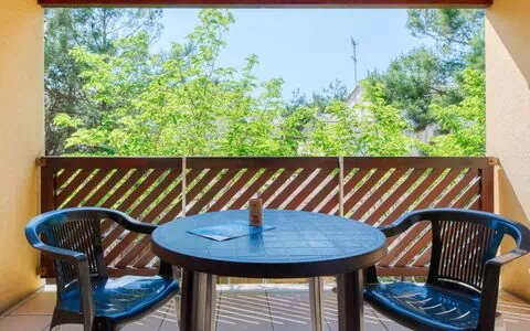 Carcans-Plage: Résidence "Les hameaux de l'Océan". Au centre, à 50 m de la forêt, à 300 m de la mer, à 5 km du lac, à 300 m de la plage, accès direct à la plage. A usage privé: terrasse, meubles de jardin, place de parking No 92 (pour 2 voitures). Magasin d'alimentation, restaurant 100 m. Terrain de golf (18 trous) 12 km, ecole de surf 100 m, golf miniature 5 km, piste cyclable 100 m. Les lacs connus sont facilement accessibles: Hourtin 5 km.
