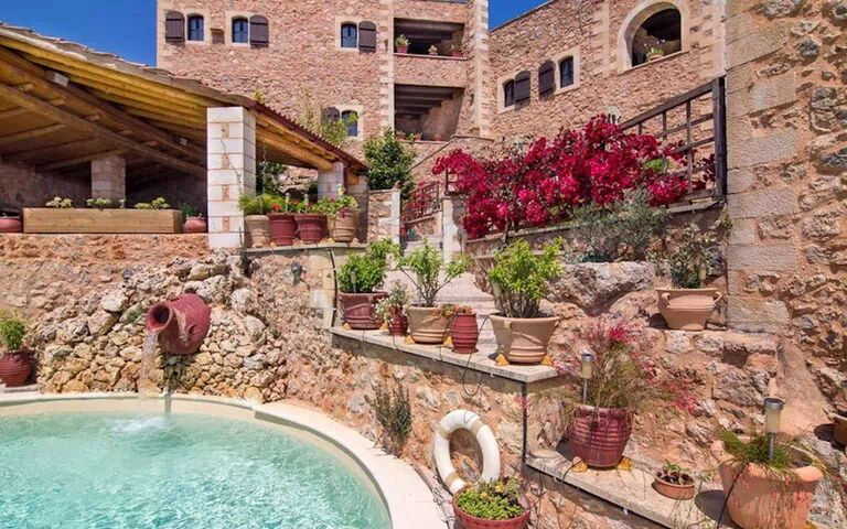 Ce bel appartement est l'une des unités d'un joli petit complexe de vacances, à la campagne près de Samonás appelé "Samonas Traditional Houses". Entouré d'arbres, de plantes, de fleurs et de verdure, c'est un cadre très pittoresque et l'endroit idéal pour s'évader. Un bâtiment en pierre, recouvert de lierre et de fleurs colorées, avec des fenêtres à volets et des terrasses offrant une vue panoramique sur le paysage environnant. C'est un excellent complexe où séjourner, vous y trouverez tout ce dont vous avez besoin.