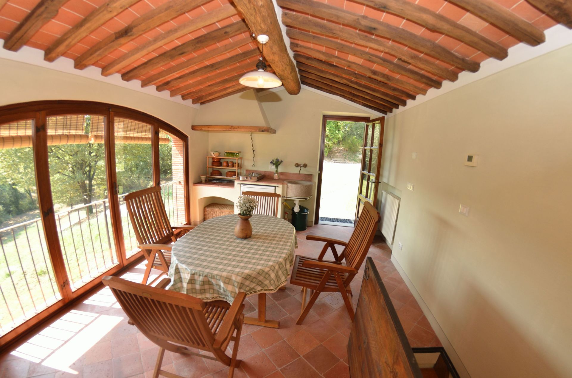 à votre arrivée à L'incanto vous trouverez une jolie propriété, propre et bien entretenue, parfaite pour des vacances paisibles en Toscane. Peu importe comment vous passez vos journées... shopping, visites, visites de musées ou tout simplement en vous baladant à la campagne, quand vous arrivez à la maison, vous pouvez vous délasser à la piscine avec votre famille et vos amis et conclure au mieux un autre jour de vacances en Toscane. Si vous aimez cuisiner pour la famille et les amis il y a une cuisine bien equipée y compris machine à café, four micro-onde, grille-pain, cuisinière et réfrigérateur, ainsi que, assez de vaisselle et couverts jusqu'à huit personnes. Si vous préférez dîner «al fresco», il y a à votre disposition une véranda entièrement meublée où vous pourrez profiter du beau temps tout en mangeant en plein air.