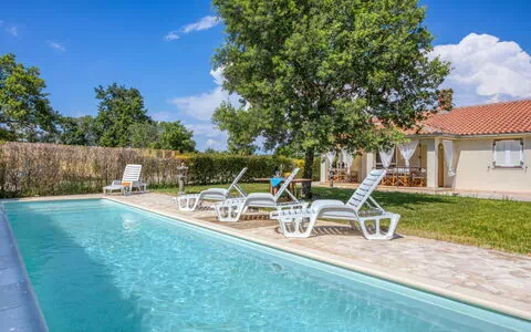 Belle maison individuelle "Frank Place". Dans le hameau de Mihatovići, à 4 km du centre de Poreč, situation ensoleillée, à 4 km de la mer, à 4 km de la plage. A usage privé: terrain 650 m2 (clôturé), jardin avec pelouse, piscine rectangulaire (10 x 3 m, profondeur 100 - 120 cm, 01.05.-30.09.) avec marches intérieures. Douche extérieure, meubles de jardin, barbecue, espace de jeux pour les enfants (toboggan, bac à sable). Infrastructures de la Maison: accès internet, lave-linge. Place de parking près de la maison sur le terrain. Magasins 1 km, supermarché 6 km, restaurant 800 m, plage de graviers 4 km, plage de rochers 4 km, plage aménagée 4 km. Centre équestre 6 km, chemins de randonnées pédestres depuis la maison 100 m, piste cyclable 150 m. Attractions à proximité: aquapark 9 km. Le propriétaire n'accepte pas les groupes de jeunes. Environnement très sensible au bruit. Silence et bonne tenue exigés. L'organisation de soirées n'est pas autorisée.