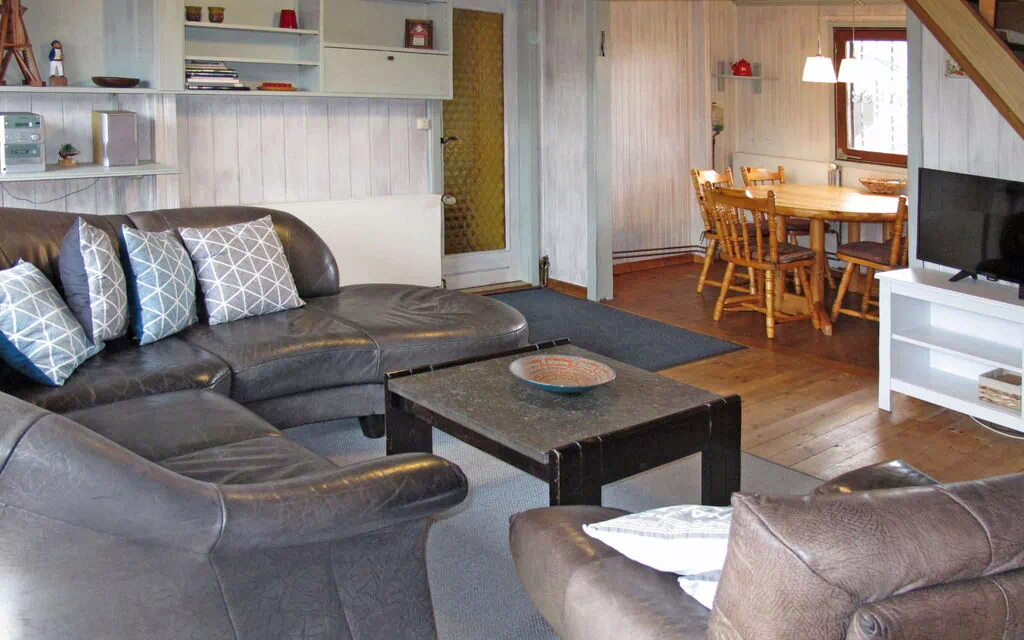 "Fliederweg (WGT110)", maison 4 pièces 75 m2 sur 2 niveaux. Clair, aménagement plaisant et avec beaucoup de bois: séjour/salle à manger avec poêle suédois, table pour les repas, TV (satellite) et chaîne stéréo. Sortie sur la terrasse. 1 chambre avec 2 lits. Cuisine (four, lave-vaisselle, 4 plaques vitrocéramique, réfrigérateur, bouilloire électrique, four micro-ondes, cafetière électrique). Douche/WC, Sauna. Chauffage électrique. À l'étage supérieur: chambre avec passage mansardée avec 1 lit double. 1 chambre, mansardée, ouverte avec 2 lits. Sol en bois. Terrasse partiellement couverte. Meubles de terrasse, barbecue. A disposition: lave-linge, sauna, chaise haute pour enfant, lit bébé. Veuillez noter: réfrigérateur sans compartiment congélateur, logement pour non fumeurs. 2 animaux/ chiens autorisés.