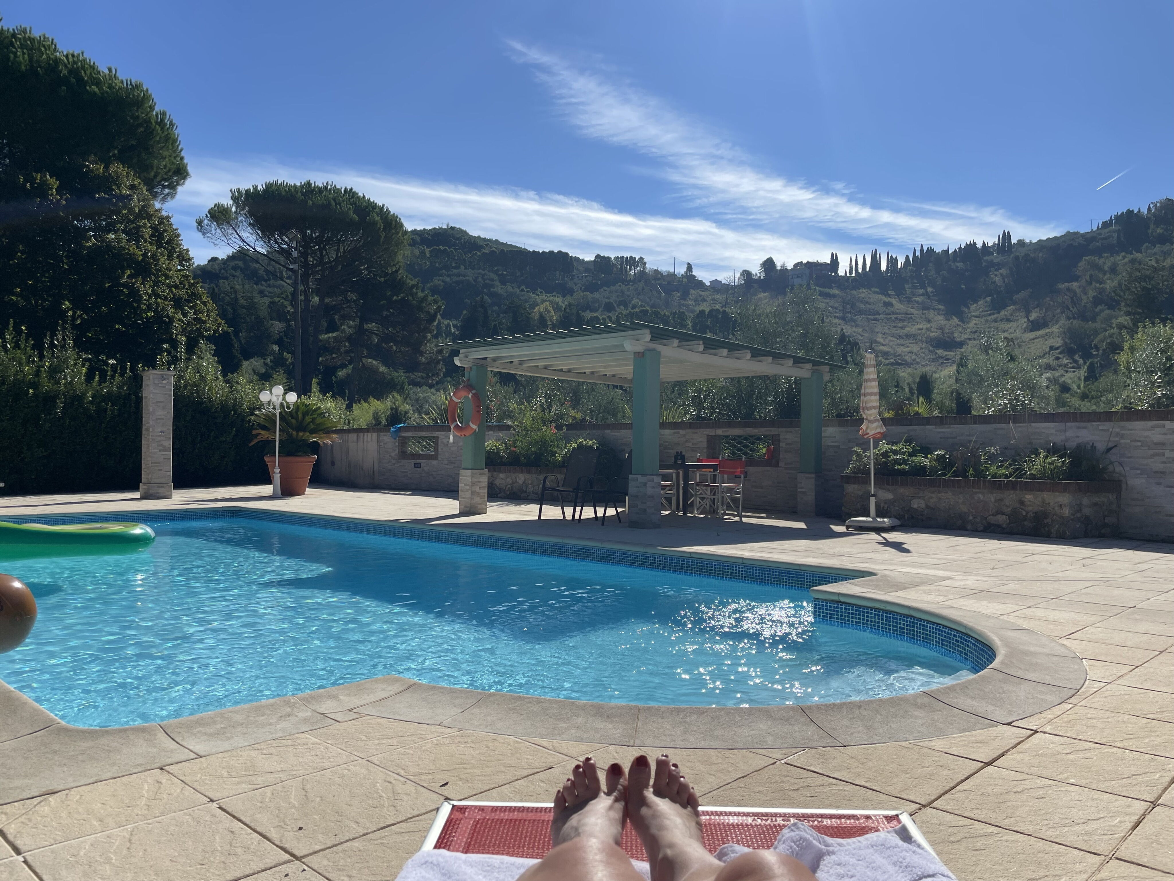 Nichée dans le quartier tranquille de Pontemazzori, à 4 km du centre de Camaiore en Italie, la maison de vacances « Costacce » offre un refuge paisible au cœur de la campagne toscane. Entourée d'arbres luxuriants et implantée dans un cadre rural serein, cette propriété de charme s'étend sur 2 000 m². L'estate comprend un jardin privé enrichi d'un jardin faunistique, d'une prairie ouverte et d'arbres matures, créant un environnement naturel immersif. Une piscine privée de 10 x 5 mètres invite à la détente pendant les mois chauds, tandis que la cour généreuse offre un espace abondant pour les activités extérieures.