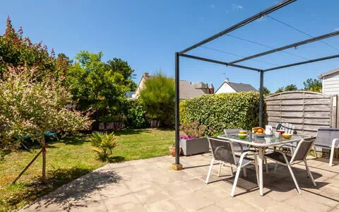 Maison mitoyenne "Oscar". À 600 m du centre de Hauteville-sur-Mer, à 10 km du centre de Coutances, dans un quartier résidentiel, à 350 m de la mer, dans une impasse. A usage privé: terrain à l'état naturel 200 m2, place de parking sur le terrain, parking public possible dans la rue. Magasins 600 m, supermarché 2.5 km, arrêt de bus "Quettreville-sur-Sienne Mairie" 8 km, plage de sable 350 m.