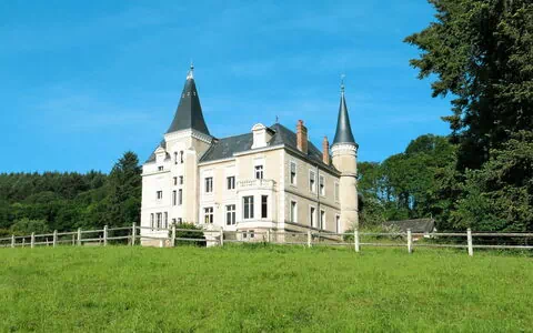 "Château Moindrots (BZY100)", maison 10 pièces 400 m2 sur 2 niveaux. Spacieux et clair, partiellement, aménagement fonctionnel et à l'ancienne: salon avec cheminée, TV et lecteur CD. Séjour avec cheminée. Bureau avec jardin d'hiver. Sortie sur le jardin, sur la terrasse, orientée est. Salle à manger avec cheminée (uniquement à titre de décoration). 1 chambre avec 2 lits. Cuisine (1 plaque de cuisson, four, lave-vaisselle, Poêle à gaz, 5 feux, grille-pain, bouilloire électrique, four micro-ondes, congélateur, cafetière électrique) avec table pour les repas. Sortie sur la terrasse, orientée ouest. Douche/WC, WC séparé. À l'étage supérieur: 1 chambre avec 2 lits et douche/WC. Sortie sur le balcon. 3 chambres, chaque chambre avec: 2 lits. 1 chambre avec 3 lits. Bain/WC. Chauffage au bois. Sol en parquet, sol en pierres naturelles. Grande terrasse 300 m2, situation est, grande terrasse 200 m2, situation ouest. Meubles de terrasse, barbecue (portable), chaises longues (2), réduit. Vue panoramique. A disposition: lave-linge, chaise haute pour enfant, lit bébé, bois (gratuit). Internet (Connexion WIFI, gratuit). Veuillez noter: logement non-fumeur. Maximum 2 animaux/ chiens autorisés. Détecteur de fumée.