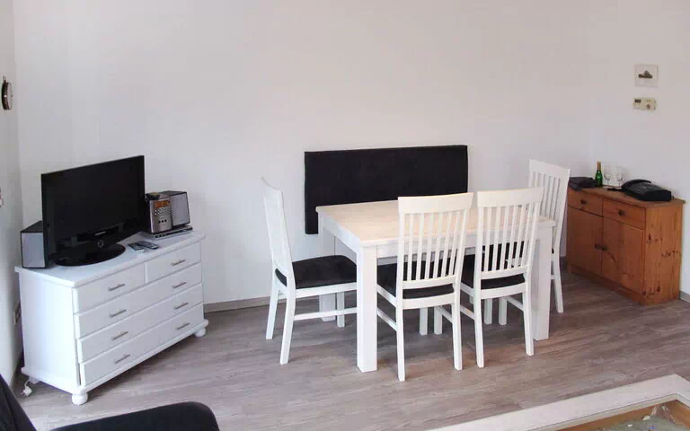 "Profuss (NDD168)", maison jumelée 4 pièces 80 m2 sur 2 niveaux. Clair, aménagement moderne: séjour/salle à manger avec jardin d'hiver avec table pour les repas, TV (satellite), radio, lecteur CD et chaîne stéréo. Sortie sur la terrasse. 1 chambre avec 1 x 2 lits superposés. Cuisine ouverte (four, 4 plaques vitrocéramique, réfrigérateur, grille-pain, bouilloire électrique, four micro-ondes, cafetière électrique). Douche/WC, WC séparé. À l'étage supérieur: 2 chambres doubles, chaque chambre avec: 1 lit double. Chauffage au gaz. A disposition: chaise haute pour enfant, lit bébé. Internet (Connexion WIFI, gratuit). Veuillez noter: logement pour non fumeurs. 1 animal/ chien autorisé.