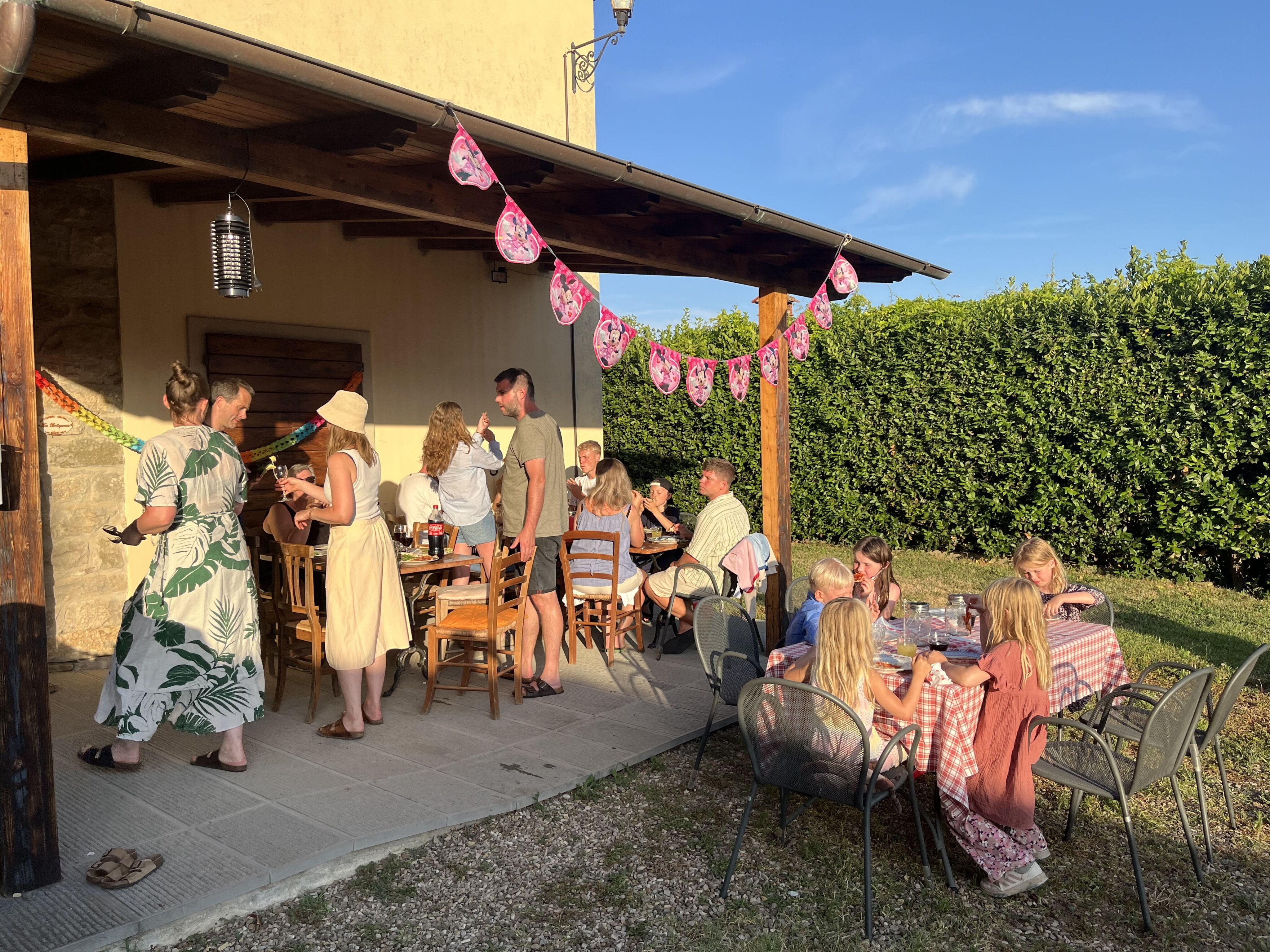 À l'extérieur, il est possible de dîner ensemble en joignant quelques tables - dans la partie du jardin faisant face à la piscine.