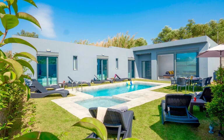 Belle villa moderne, individuelle "Ampela". Au centre d'Agia Marina, situation ensoleillée, excellente situation: centrale mais tranquille, à 300 m de la plage. A usage privé: beau jardin avec pelouse, piscine (40 m2, profondeur 160 cm, 01.04.-31.10.). Bassin pour les enfants, douche extérieure, meubles de jardin, barbecue. Change de linge 2 fois par semaine. Changementde linge de toilette 2 fois par semaine. Nettoyage 2 fois par semaine. Place de parking (pour 3 voitures) près de la maison. Magasins, supermarché, restaurant, bar, boulangerie, café 200 m, plage de sable "Agia Marina" 300 m. Marina 3 km. Attractions à proximité: Folklore Museum of Agia Marina 400 m, Chania old town 9 km, Botanical Park and Gardens of Crete 16 km. Veuillez noter: voiture recommandée. Adapté(e) aux familles, équipement pour bébés sur demande (inclus). Groupes de jeunes sur demande seulement.
