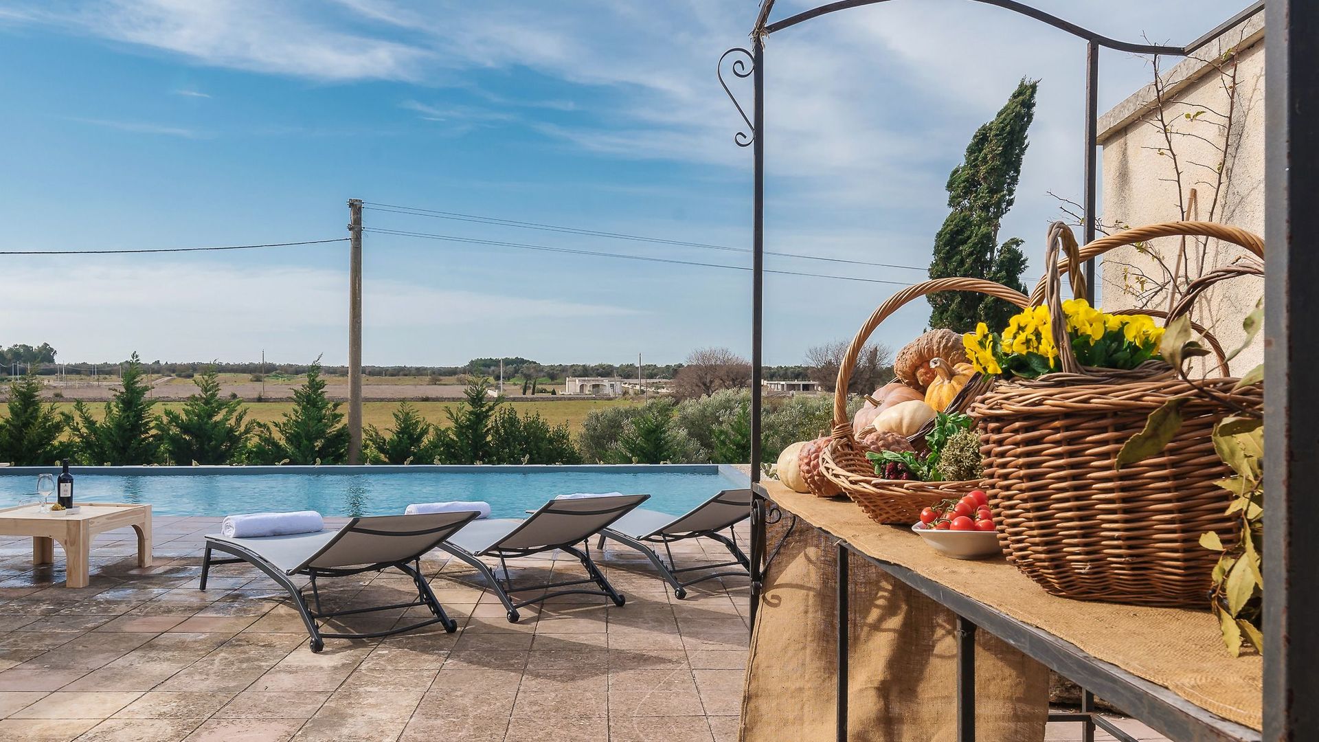 The Masseria sits on grounds of 10 hectares and is near to an area, where you can walk out into open fields, and also meander through the Augrumeto and olive trees and which is only a short walk away.