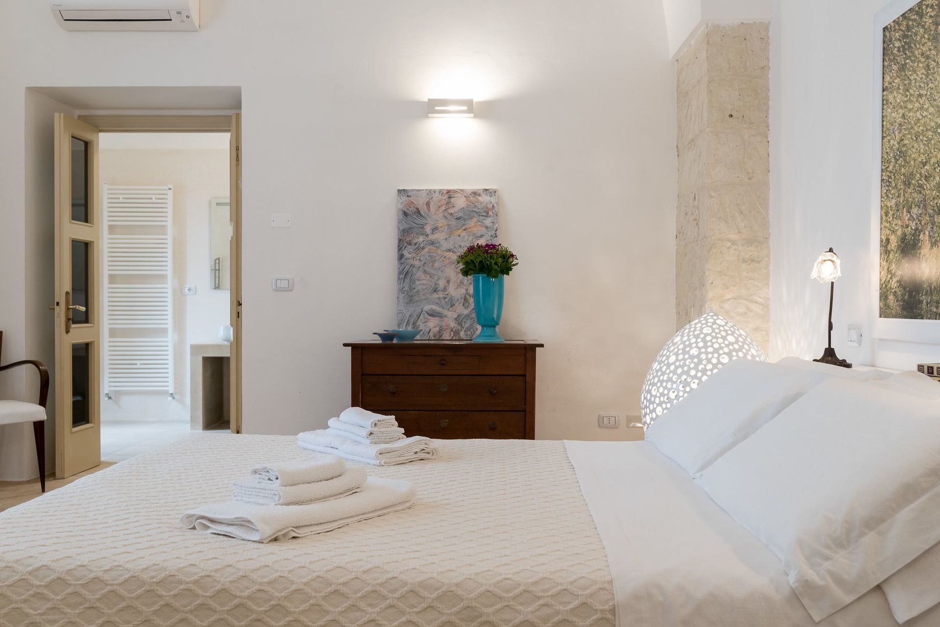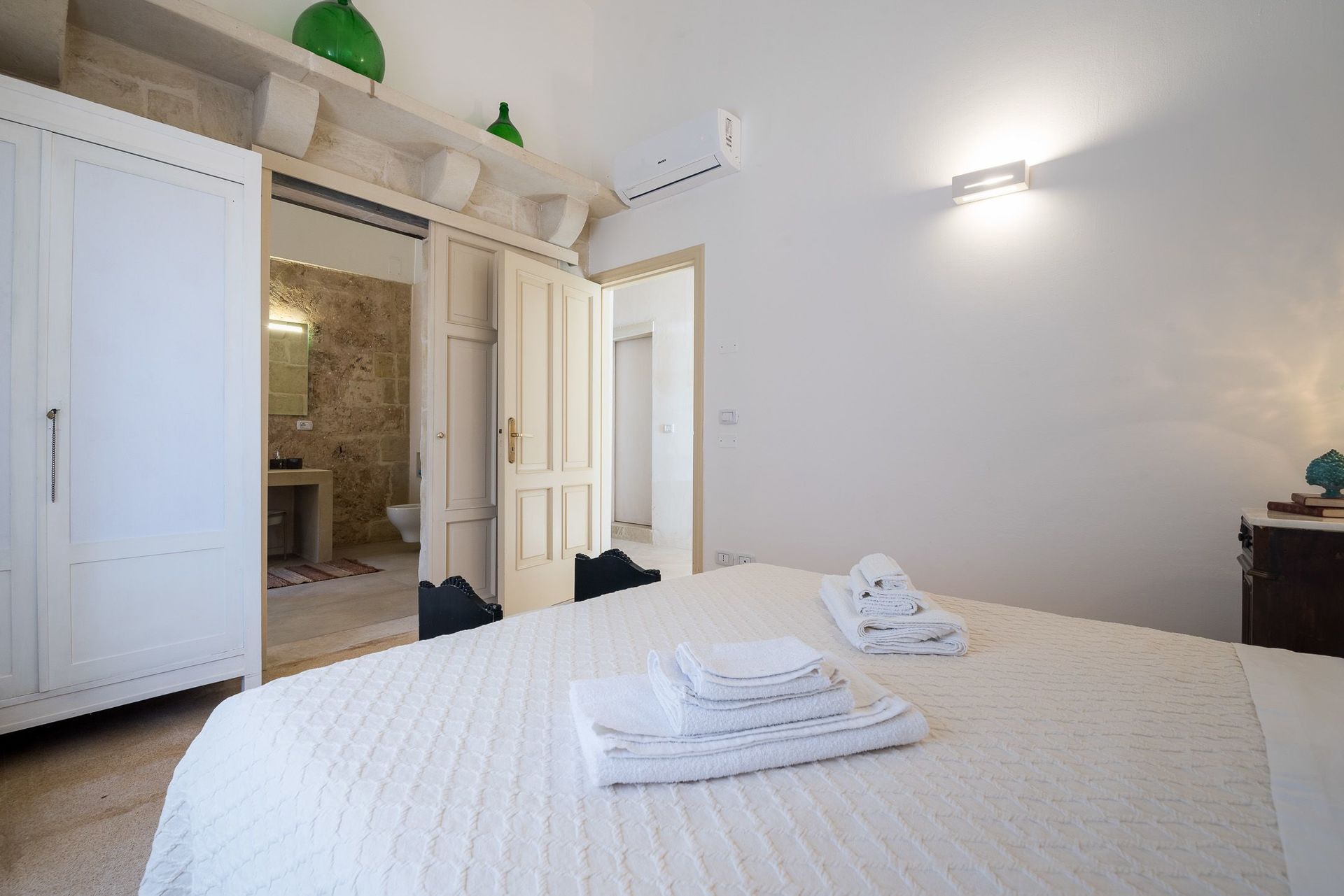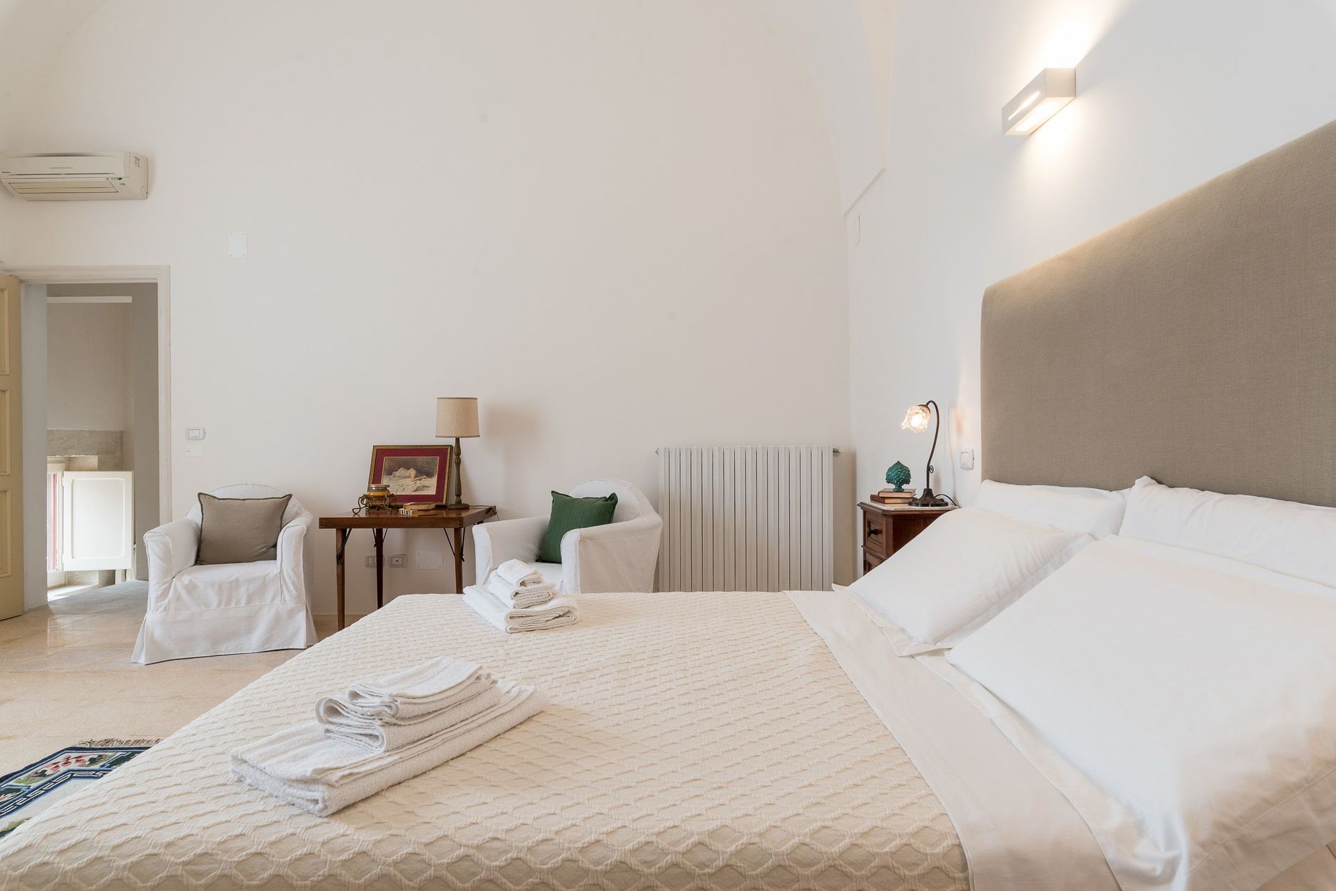 If you are wanting space, then this Masseria will not fail to impress, as it has 5 large, bright and airy bedrooms. All with A/C, in fact, there is A/C in the small snug too.