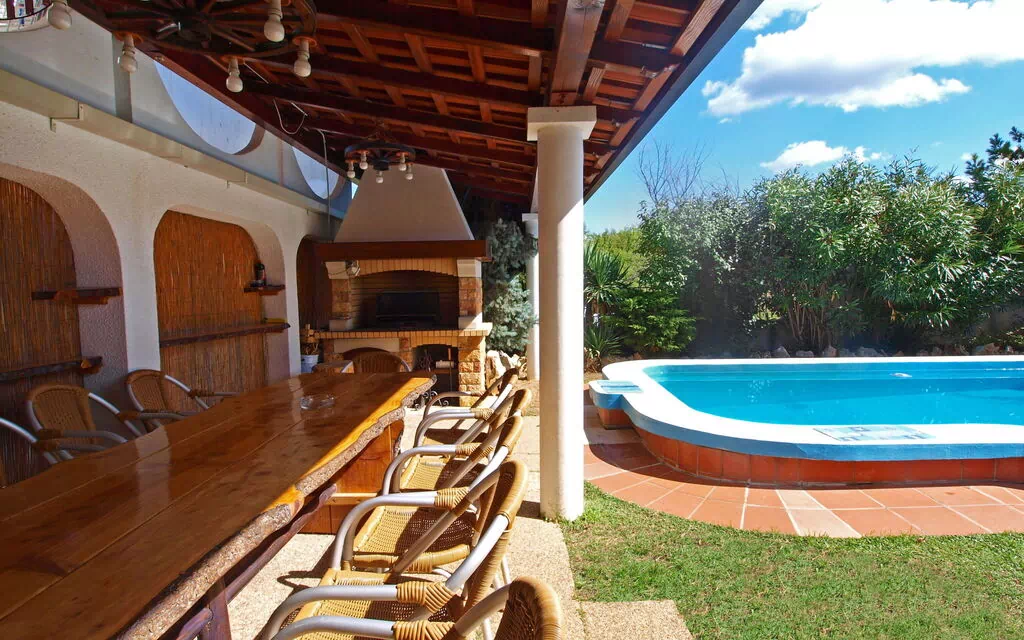 Maison jumelée 5 pièces 90 m2. Séjour/salle à manger avec cheminée et TV (satellite) (écran plat), air-conditionné. Sortie sur la terrasse, sur la véranda. 1 chambre avec 1 grand-lit (200 cm, longueur 200 cm). Petit séjour avec TV (satellite) et air-conditionné. 1 chambre avec 1 grand-lit (180 cm, longueur 200 cm). Sortie sur le balcon. 1 chambre avec 1 grand-lit (180 cm, longueur 200 cm), TV (satellite) et air-conditionné. 1 chambre avec 1 grand-lit (180 cm, longueur 200 cm). Cuisine ouverte (four, lave-vaisselle, 4 plaques vitrocéramique, four micro-ondes, congélateur). Bain/bidet/WC, douche/WC, bain/douche/bidet/WC. Balcon 13 m2, terrasse 30 m2 partiellement couverte. Meubles de terrasse. Vue sur la piscine et le jardin. A disposition: lit bébé (en sus). Internet (Connexion WIFI, gratuit). 1 animal/ chien autorisé.