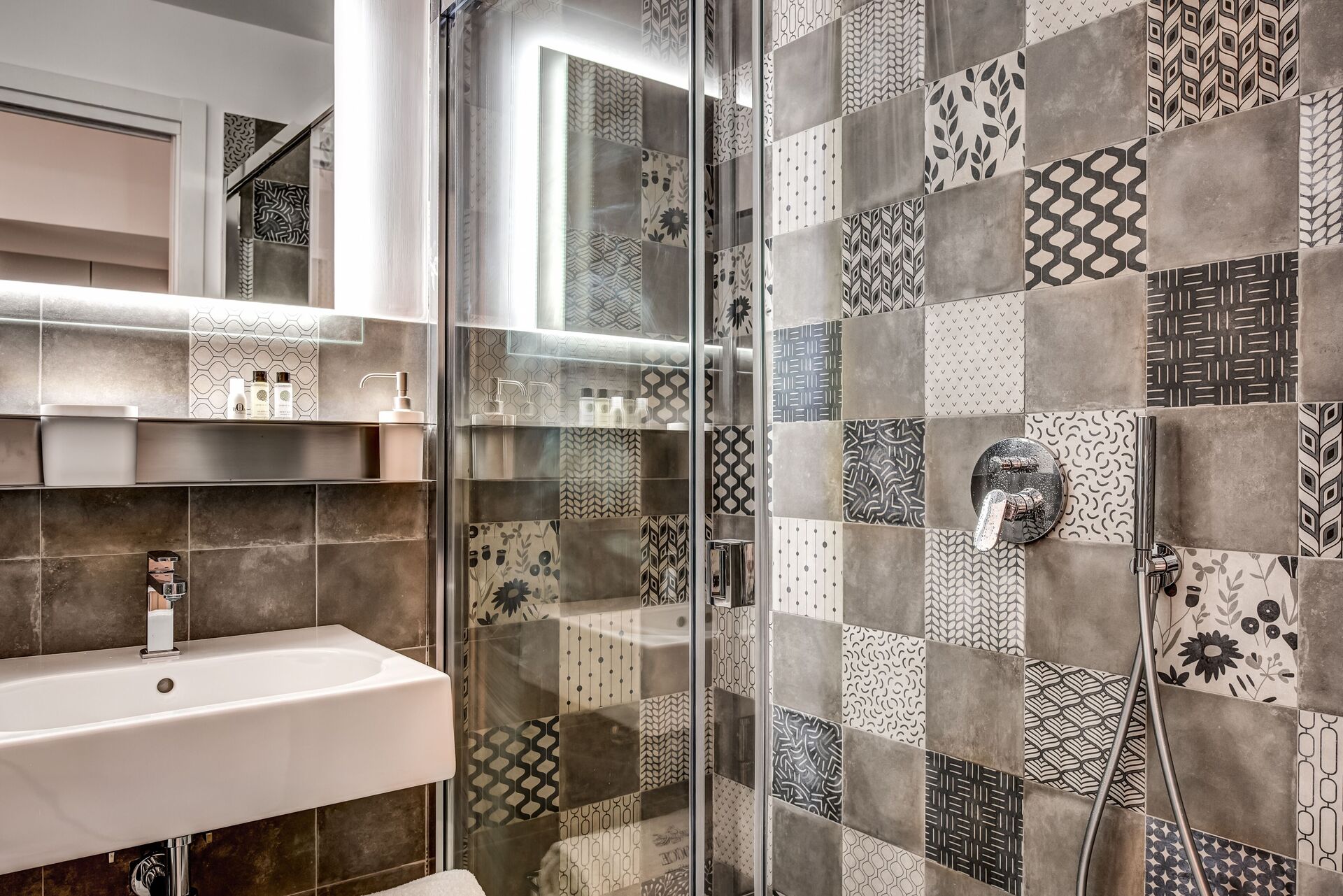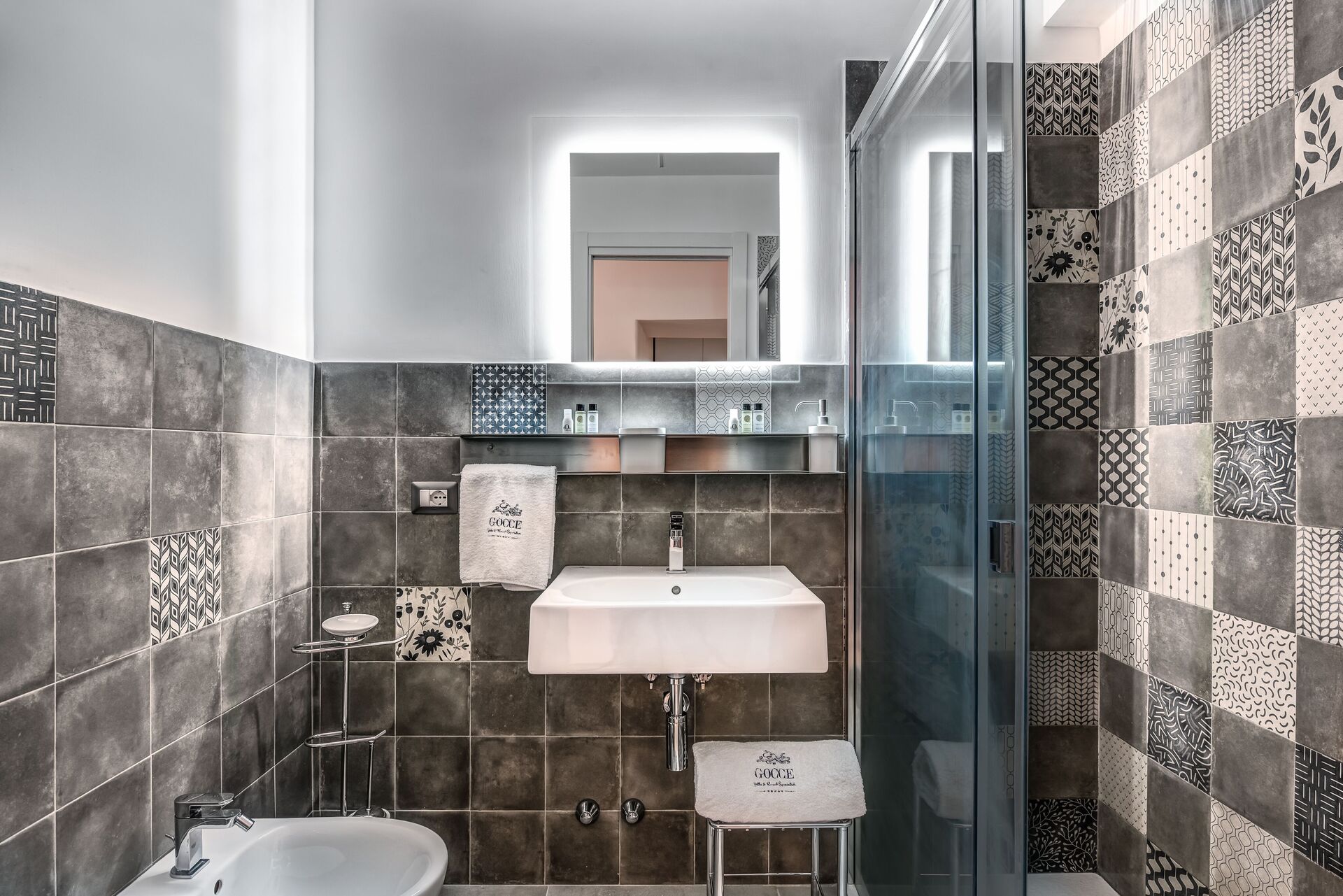 salle de bain: bassin, wc, bidet, douche.