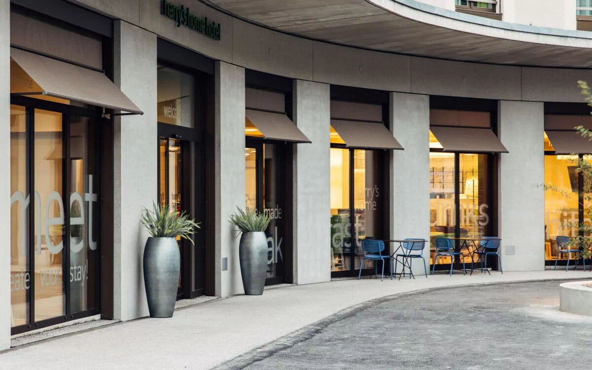 Immeuble de studios, récent, moderne "harry´s home Hotel Zürich-Wallisellen", année de construction 2019, environné par les arbres.