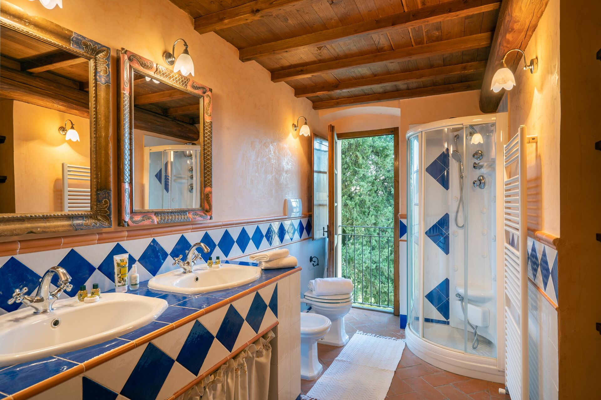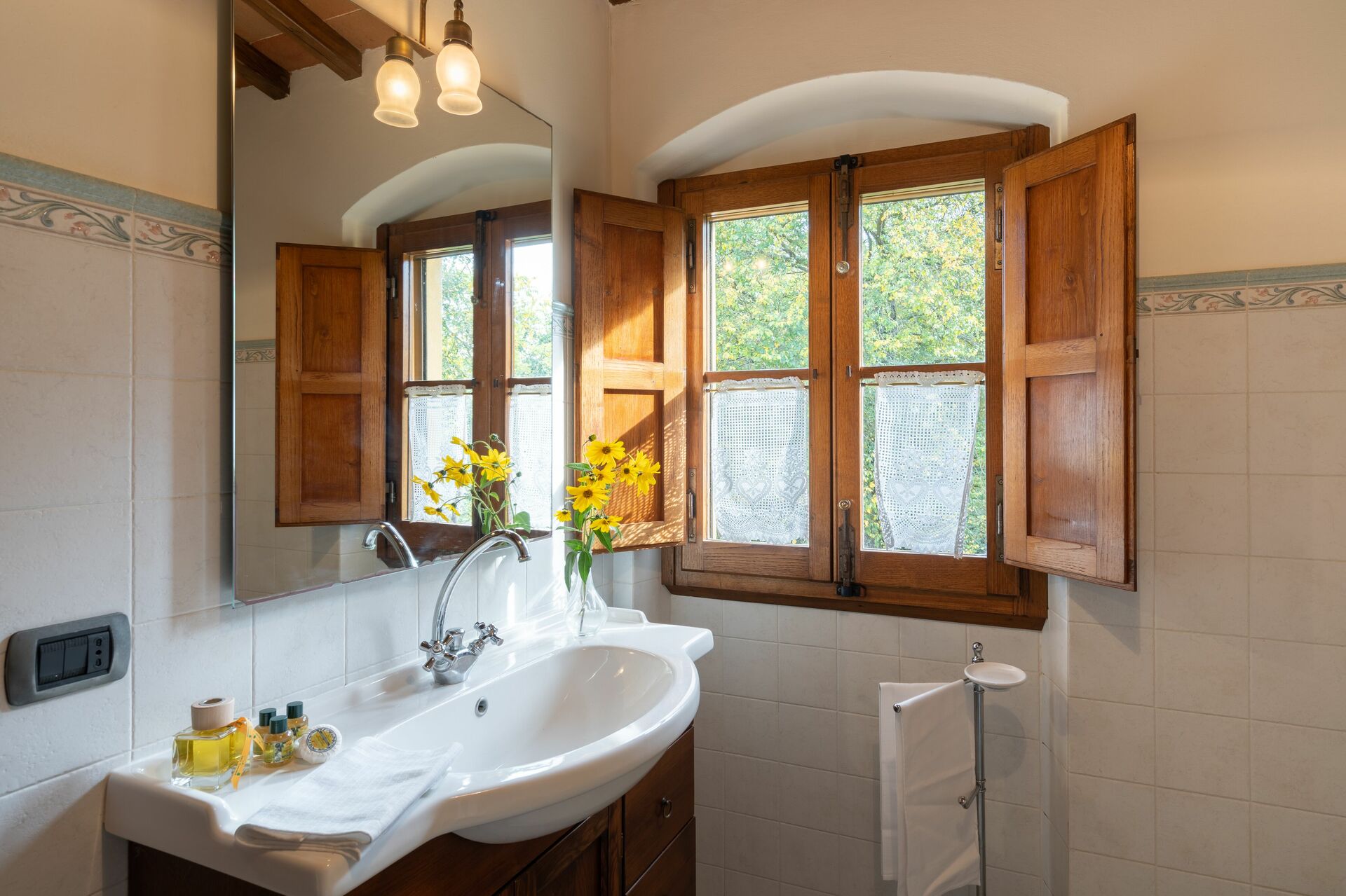 Cette ravissante bâtisse en pierre regorge de charme et de caractère. Ancienne résidence d’un prêtre, la Villa La Canonica Di Pietrafitta est composée d’une ancienne église avec un clocher et de plusieurs petits bâtiments en pierre reliés pour former une propriété impressionnante autour d’une cour pavée. L’ensemble évoque un petit hameau à part entière et donne aux invités l’impression d’avoir pris possession d’un véritable village toscan pendant leur séjour en vacances en Toscane!