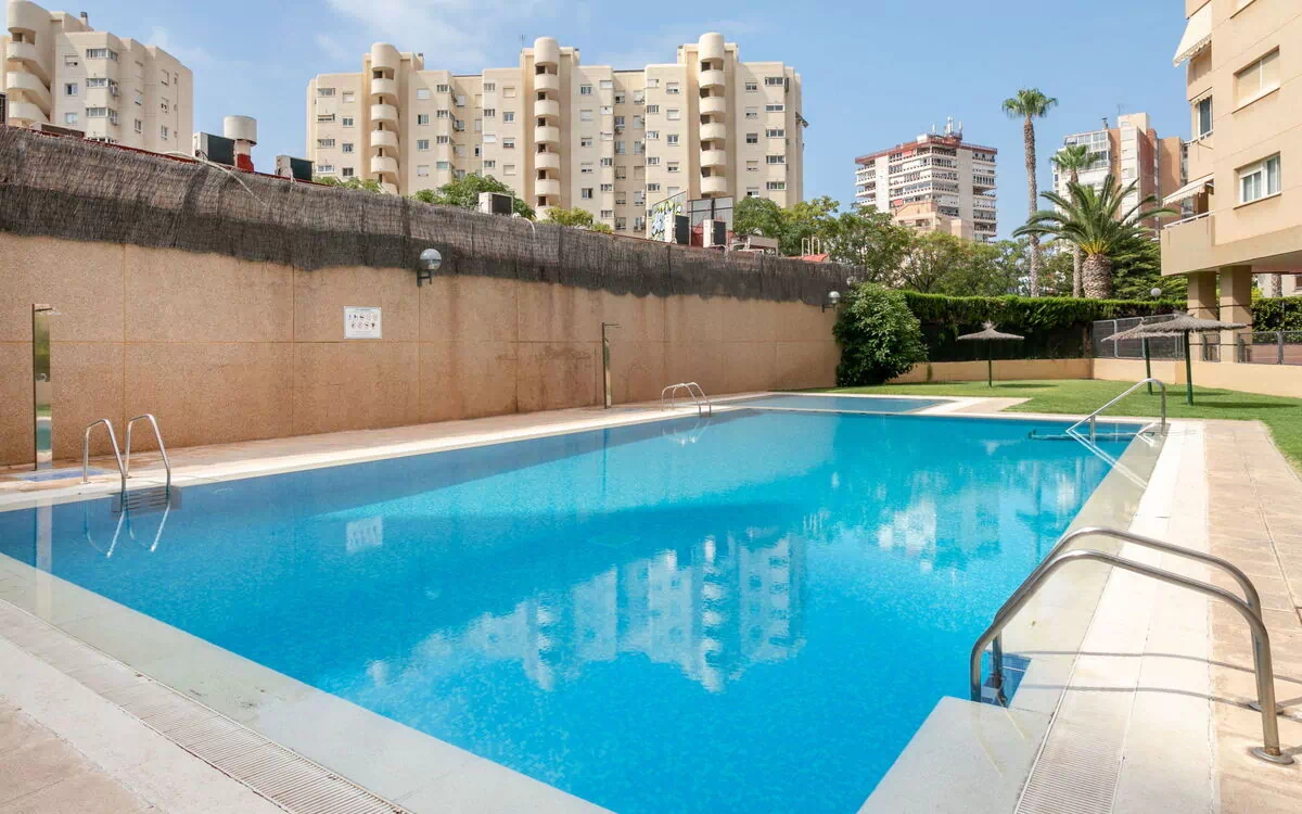 Petite résidence "Los Almendros". Situation centrale, animée, ensoleillée, à 500 m de la mer, à, de la plage. En commun: jardin, piscine (9 x 19 m, profondeur 120 - 280 cm, disponibilité saisonnière: 01.Jan. - 31.Dec. horaires d'ouverture de la piscine: 10:00-22:00). Bassin pour les enfants, douche extérieure, tennis (en sus), espace de jeux pour les enfants. Infrastructures de la Maison: ascenseur, système d'alarme. Place de parking (couvert) près de la maison, garage en commun à 60 m, parking public possible dans la rue. Magasins 200 m, magasin d'alimentation, supermarché, restaurant, bar, café, tramway "Sergio Cardell" 100 m, arrêt de bus 30 m, plage de sable "Playa de la Almadraba" 500 m (petit[e]). Port plaisance 800 m, terrain de golf (18 trous) 3 km. Groupes de jeunes sur demande seulement. Environnement très sensible au bruit. Silence et bonne tenue exigés.
