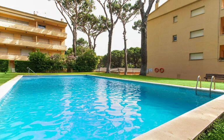 Golf Playa De pals à 5 km de Pals Centre: Petite résidence "Porta del Golf", de 3 étages. À 1.7 km de la mer. En commun: terrain à l'état naturel, piscine (6 x 12 m, profondeur 50 - 190 cm, disponibilité saisonnière: 01.Jun. - 01.Oct.). Douche extérieure. Infrastructures de la Maison: ascenseur. Supermarché 1 km, arrêt de bus "Pals" 6 km, plage de sable "Playa del grau" 1.7 km. Terrain de golf (18 trous) 100 m. Le propriétaire n'accepte pas les groupes. Le propriétaire n'accepte pas les groupes de jeunes. Environnement très sensible au bruit. Silence et bonne tenue exigés.