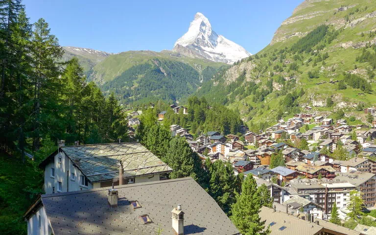 Chalet "Birken", de 3 étages. Accès en voiture jusqu'à la maison par un chemin raide. Sentier en escalier (75 marches) jusqu'à la maison. Magasin d'alimentation 400 m, supermarché 500 m, restaurant 200 m, boulangerie, location de bicyclettes 400 m, centre à 8 minutes à pieds, arrêt de bus "Getwingbrücke" 300 m, gare ferroviaire "Bahnhof Zermatt" 800 m. Train de montagne 600 m, location de ski. Arrêt du ski-bus 300 m, école de ski, école de ski d'enfants 600 m. La remise des clés a lieu à l’agence Interhome de Zermatt.