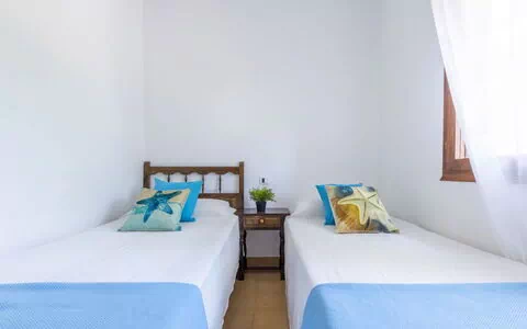 L'extérieur de la propriété bénéficie d'un terrain privé entièrement clos, créant un environnement sûr et paisible. Du mobilier de jardin est mis à disposition dans l'espace extérieur, permettant aux hôtes de profiter de repas en plein air ou simplement de se détendre au soleil. L'orientation ensoleillée du terrain assure que les espaces extérieurs reçoivent une lumière naturelle généreuse tout au long de la journée. La plage de sable de Riumar se situe à 250 m, et la mer est à 250 m de la propriété.