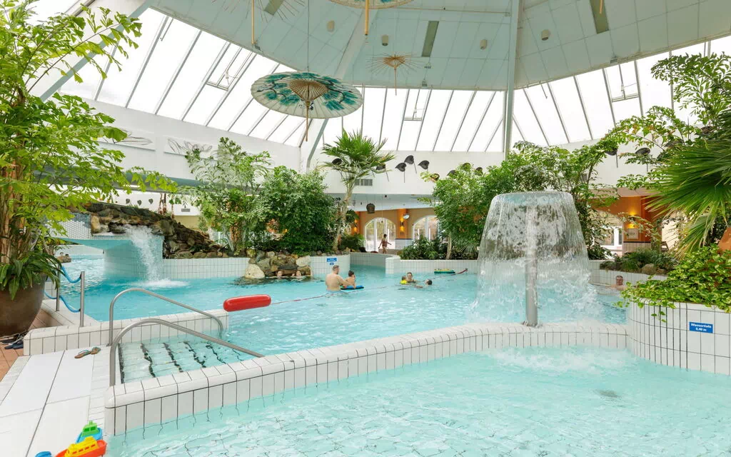 Complexe de vacances accueillant pour les enfants "Center Parcs Park Eifel". En-dehors de la localité, à 1 km du centre de Gunderath, situation tranquille, dans la verdure. En commun: piscine couverte chauffée. Douche/WC dans l'espace piscine, bassin pour les enfants, toboggan, tennis (en sus), ping-pong, badmington (en sus), espace de jeux pour les enfants. Infrastructures de la résidence: réception, restaurant, bar, salle pour petits déjeuners, sauna (en sus). Massage (en sus). Ping-pong (en sus). Possibilité d'achats, chauffage central, location de bicyclettes. A disposition: bowling (en sus). Service boulangerie et Petit-déjeuner possible (en sus). Places de parking centrales. Terrain de golf (18 trous) 25 km. Attractions à proximité: Nürburgring 15 km, Vulkan-Maare 20 km, Moseltal 30 km. Le propriétaire n'accepte pas les groupes de jeunes. Veuillez noter: Déchargement et chargement des bagages à la location de vacances. La photo ne montre qu’un exemple de location de vacances. Toutes les maisons/appartements sont aménagés individuellement. Le "Market Dome" est un point propice aux rencontres, avec ses boutiques, cafés et son supermarché, ainsi que ses divers restaurants qui invitent au shopping et repos. Vous y trouverez même un House of Games et une Kids Factory. Les enfants pourront également s'amuser dans le parc aquatique subtropial "Aqua Mundo" (entrée gratuite), avec des piscines intérieures et extérieures, des toboggans, des pataugeoire et des cours de bébé nageur. Vous trouverez en outre de nombreux équipements sportifs et terrains de jeu, avec notamment du tir à l'arc, du poney et du squash. Les installations sont en partie payantes.