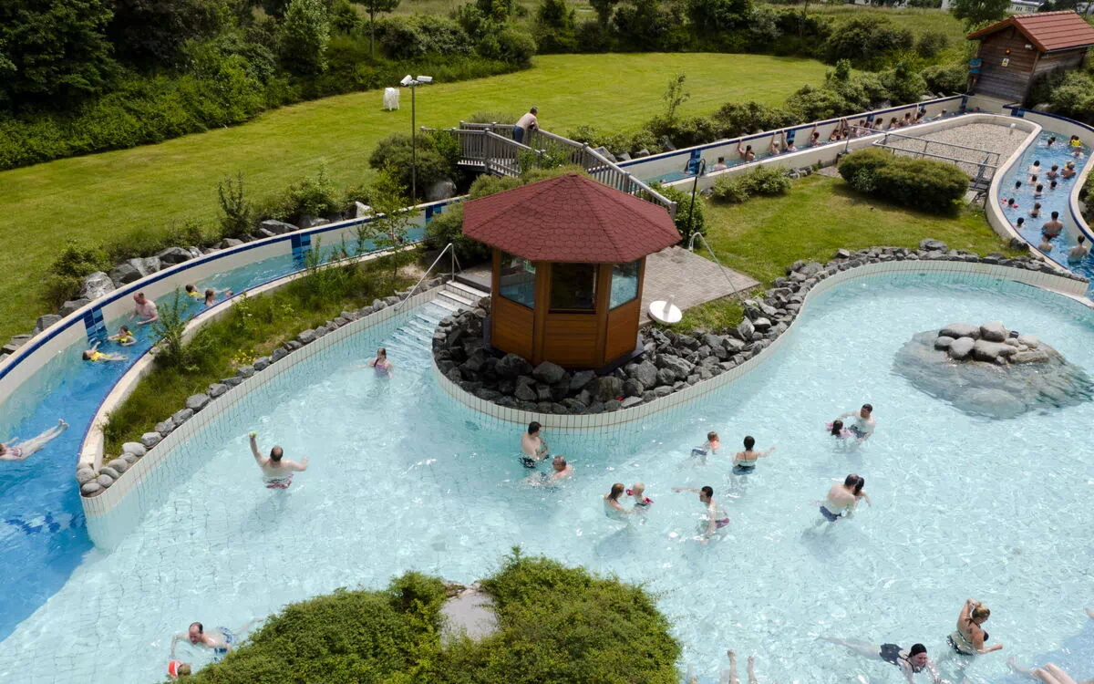 Complexe de vacances accueillant pour les enfants "Park Hochsauerland". En bordure de la localité, à 1 km du centre de Medebach, situation tranquille sur un versant, dans la verdure. En commun: piscine couverte chauffée. Douche/WC dans l'espace piscine, bassin pour les enfants, toboggan, tennis (en sus), volley ball, badmington (en sus), espace de jeux pour les enfants. Infrastructures de la résidence: réception, restaurant, bar, salle pour petits déjeuners, sauna (en sus). Massage (en sus). Bains de vapeur (hammam) (en sus). Bain à remous (en sus). Ping-pong, billard, trampoline, possibilité d'achats, location de bicyclettes. A disposition: bowling (en sus). Service boulangerie et Petit-déjeuner possible (en sus). Places de parking centrales. Supermarché 100 m, arrêt du bus, gare ferroviaire "Winterberg" 16 km. Attractions à proximité: Aventura Medebach. Les domaines skiables de renommée sont facilement accessibles: Schlossberg 6 km, Winter-Sport Arena Sauerland 16 km, Mühlenkopfschanze Winterberg 19 km. Veuillez noter: complexe de vacances sans voiture. Le propriétaire n'accepte pas les groupes de jeunes. Déchargement et chargement des bagages à la location de vacances. La photo ne montre qu’un exemple de location de vacances. Toutes les maisons/appartements sont aménagés individuellement. Le parc de vacances dispose d'une piscine subtropicale "Aqua Mundo" gratuite avec des bassins intérieur et extérieur, des toboggans, une piscine à vagues et un "Water Playhouse". Le "Market Dome", un bâtiment couvert, est un point de rencontre central, composé de différents restaurants, cafés et magasins ainsi que de nombreuses possibilités de loisirs en intérieur comme l'arène de football et son école de football (en supplément), la "House of Games" ou, pour les plus petits, le programme d'activités "Wannabe". Vous trouverez également pour compléter la vaste offre de loisirs, un minigolf, du tir à l'arc et de l'escalade. Certaines activités moyennent un supplément. Les séjours de longue durée (de plus de 21 jours) et les réservations d'entreprises ne sont possibles que sur demande.