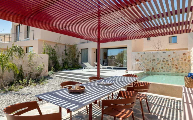 Cette villa d'architecte de forme semi-circulaire est d'une beauté unique. Elle est disposée autour d'une petite piscine en forme de poisson, ronde avec une petite queue. Rénovée en 2013, la villa présente des intérieurs modernes chics et éclectiques, comme tirée des pages du magazine "Interiors". Si vous êtes intéressé par la décoration ou le design, c'est un endroit parfait pour votre lune de miel.