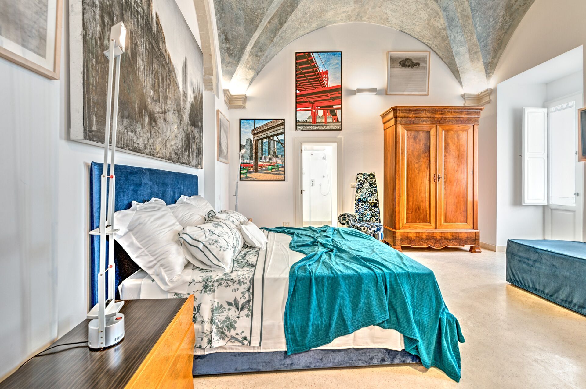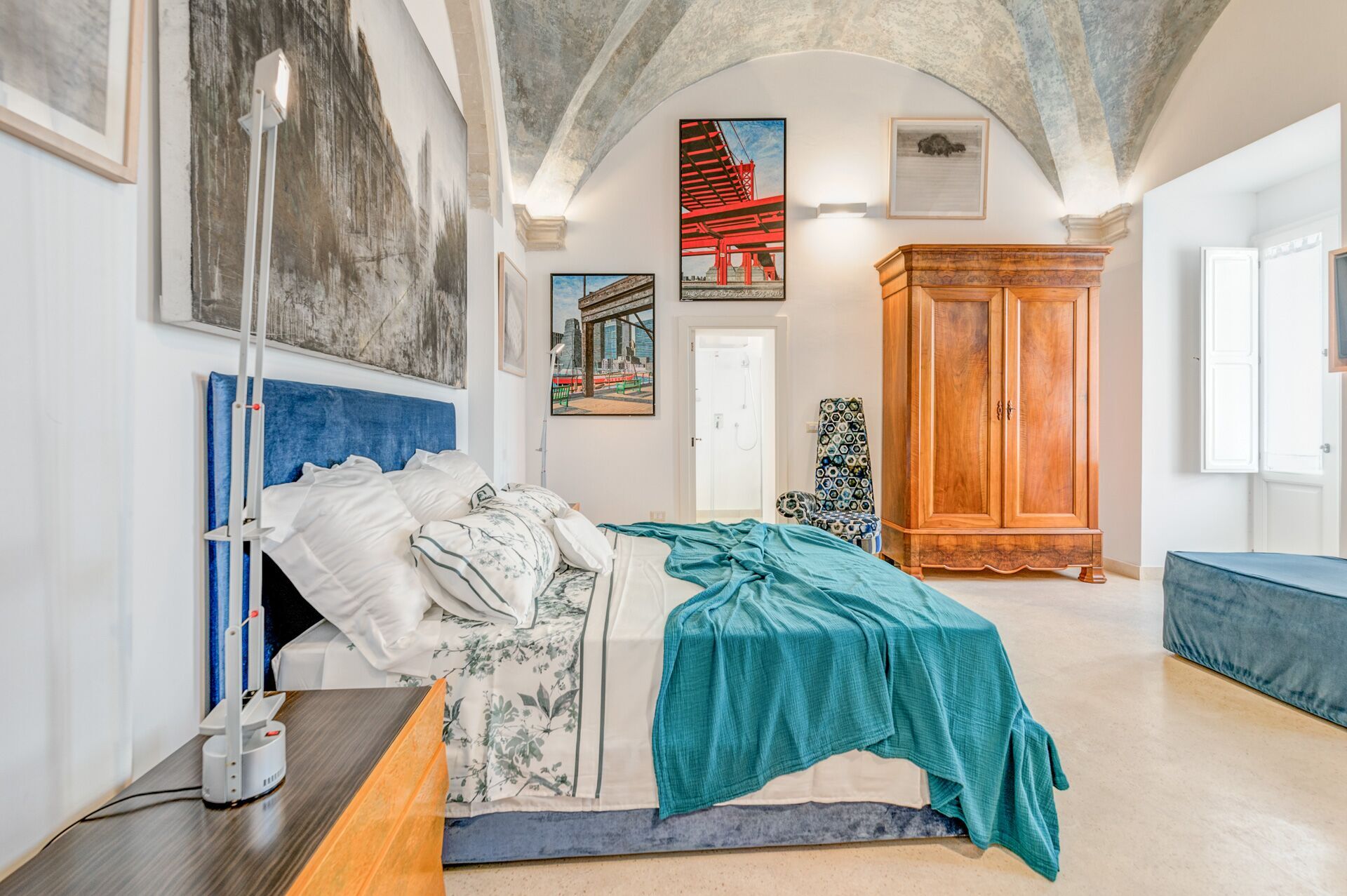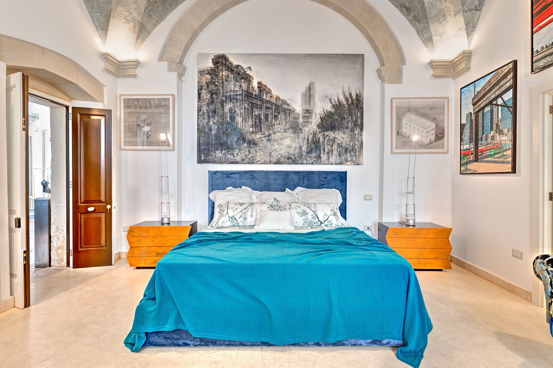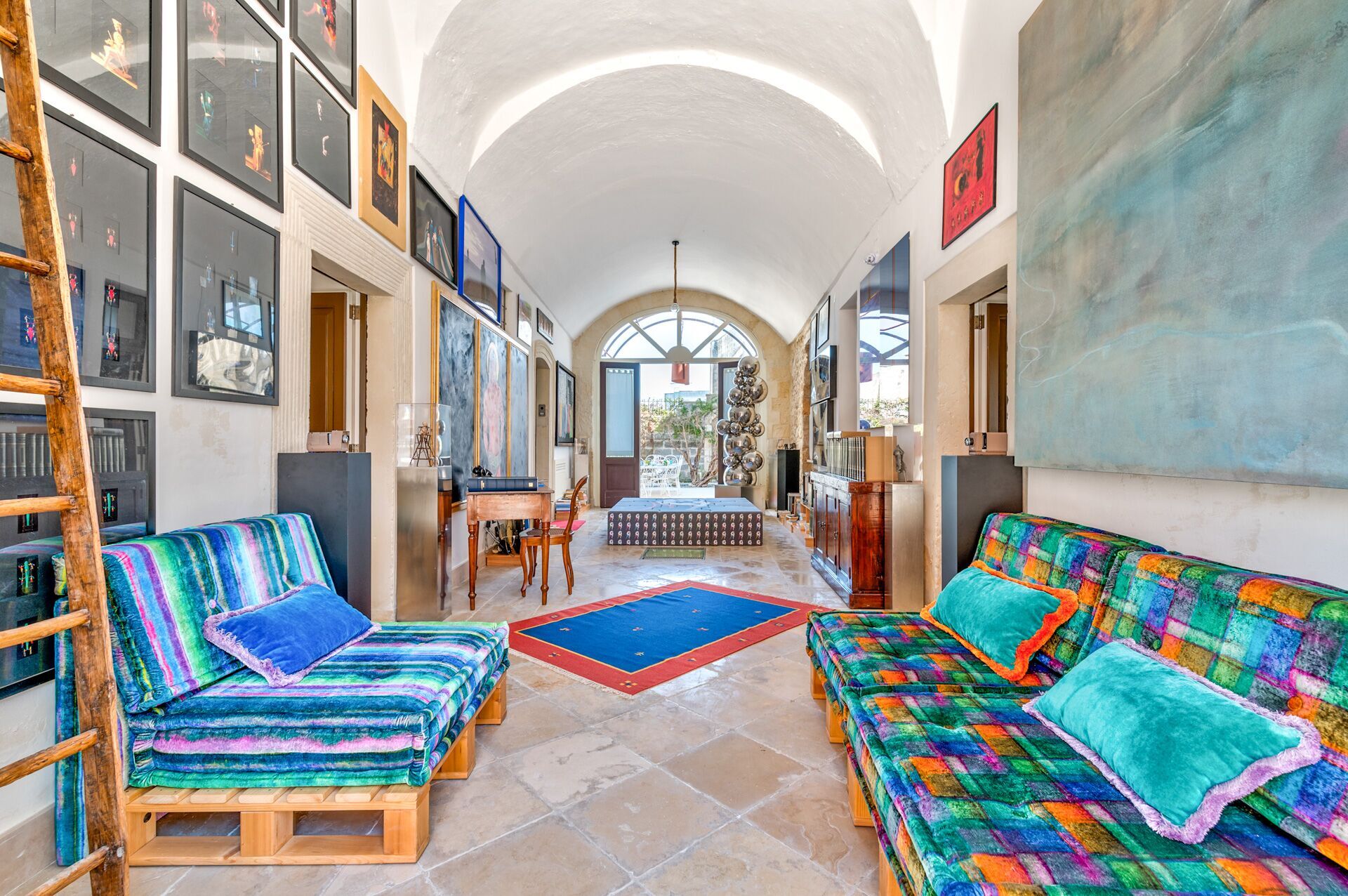 Palazzo Raho is a period noble residence recently renovated with fine finishes to become a charming residence full of works of art by contemporary authors and a unique collection of rare volumes and valuable editions. Every piece of furniture and every single detail is in the sign of Art. The Palace is located in the center of the village of Lequile just 8 km from Lecce and 20 minutes from the splendid beaches of the Ionian coast near Gallipoli and Porto Cesareo. This dwelling is suitable for those who want to live an unprecedented immersive experience, in a luxury environment, with every comfort, in a dimension suspended in time and space, surrounded by art, understood not only in a contemplative sense but as a fruition of everyday life.