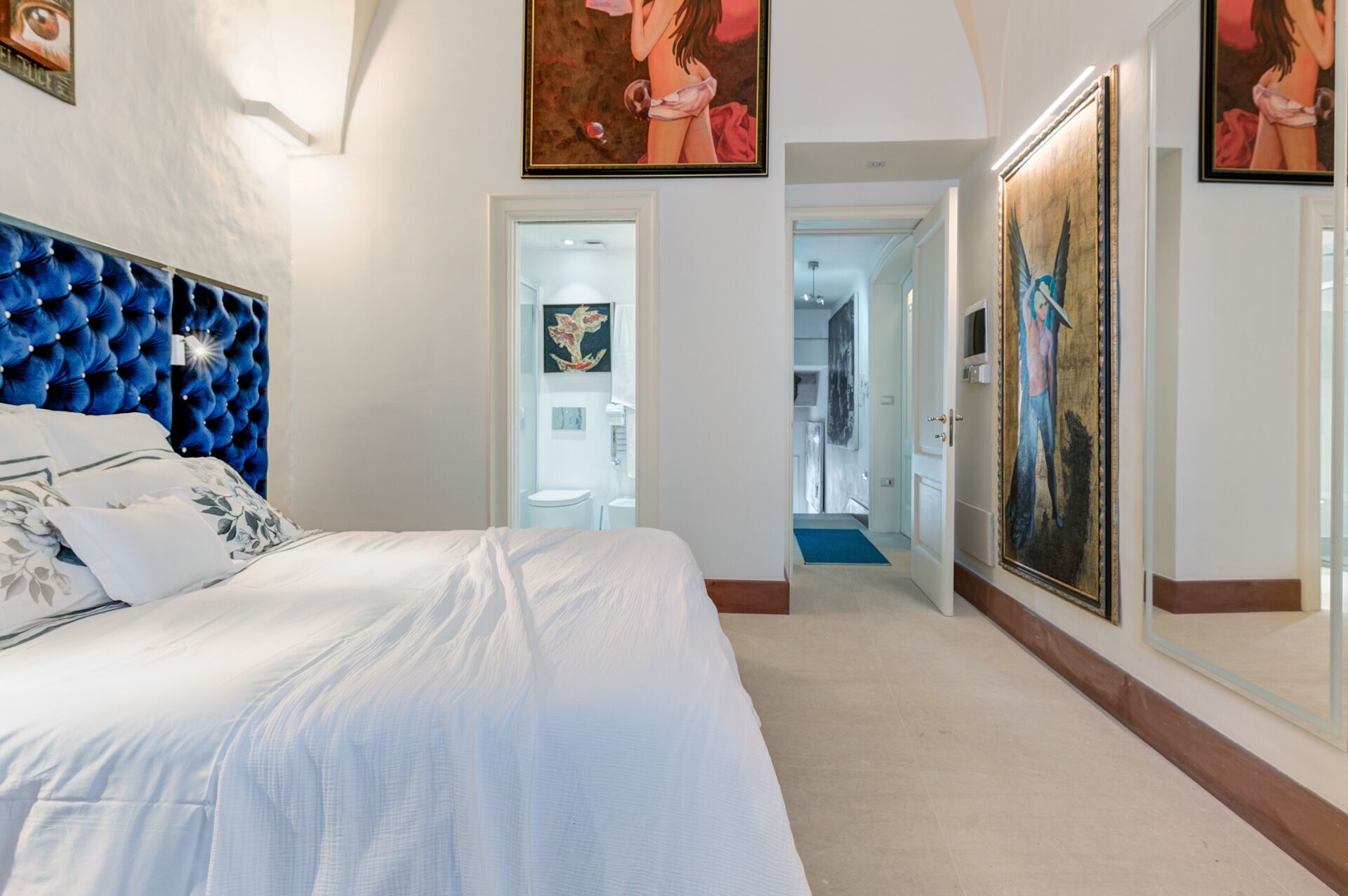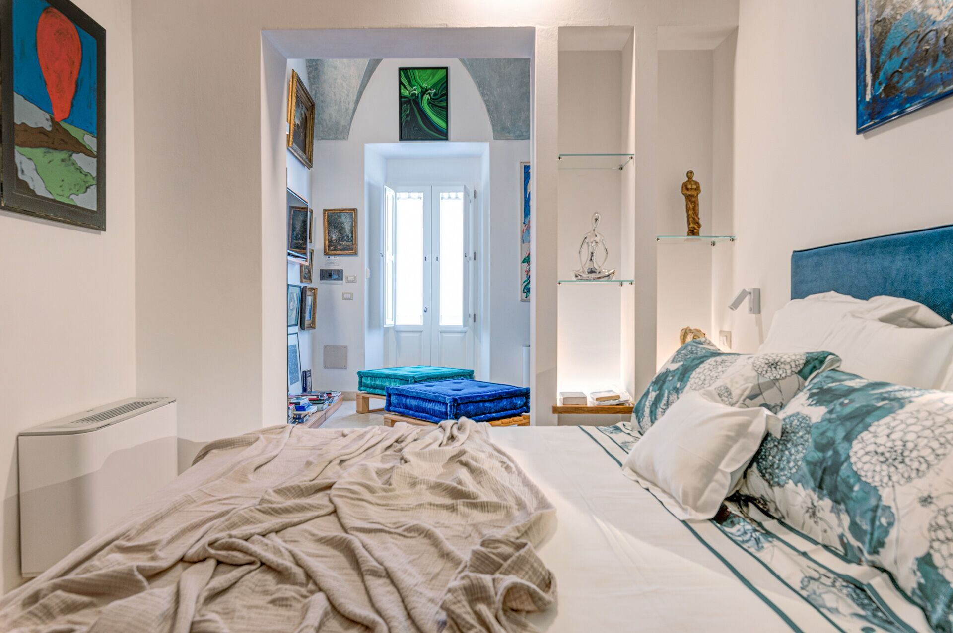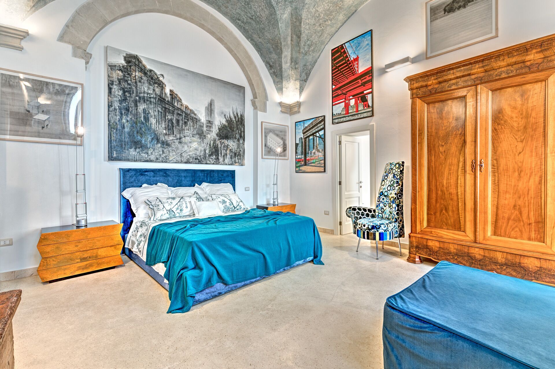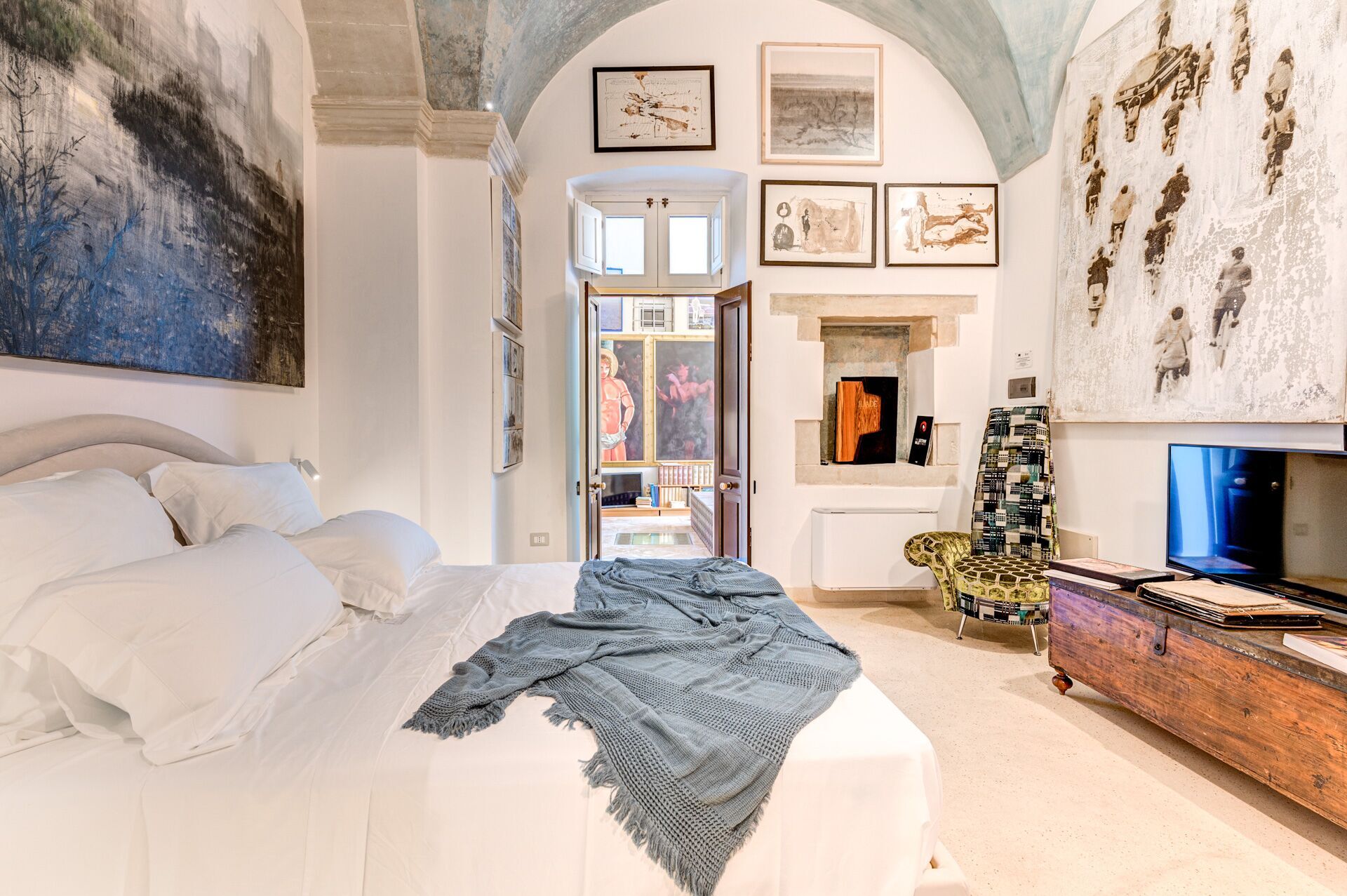 Palazzo Raho is a period noble residence recently renovated with fine finishes to become a charming residence full of works of art by contemporary authors and a unique collection of rare volumes and valuable editions. Every piece of furniture and every single detail is in the sign of Art. The Palace is located in the center of the village of Lequile just 8 km from Lecce and 20 minutes from the splendid beaches of the Ionian coast near Gallipoli and Porto Cesareo. This dwelling is suitable for those who want to live an unprecedented immersive experience, in a luxury environment, with every comfort, in a dimension suspended in time and space, surrounded by art, understood not only in a contemplative sense but as a fruition of everyday life.