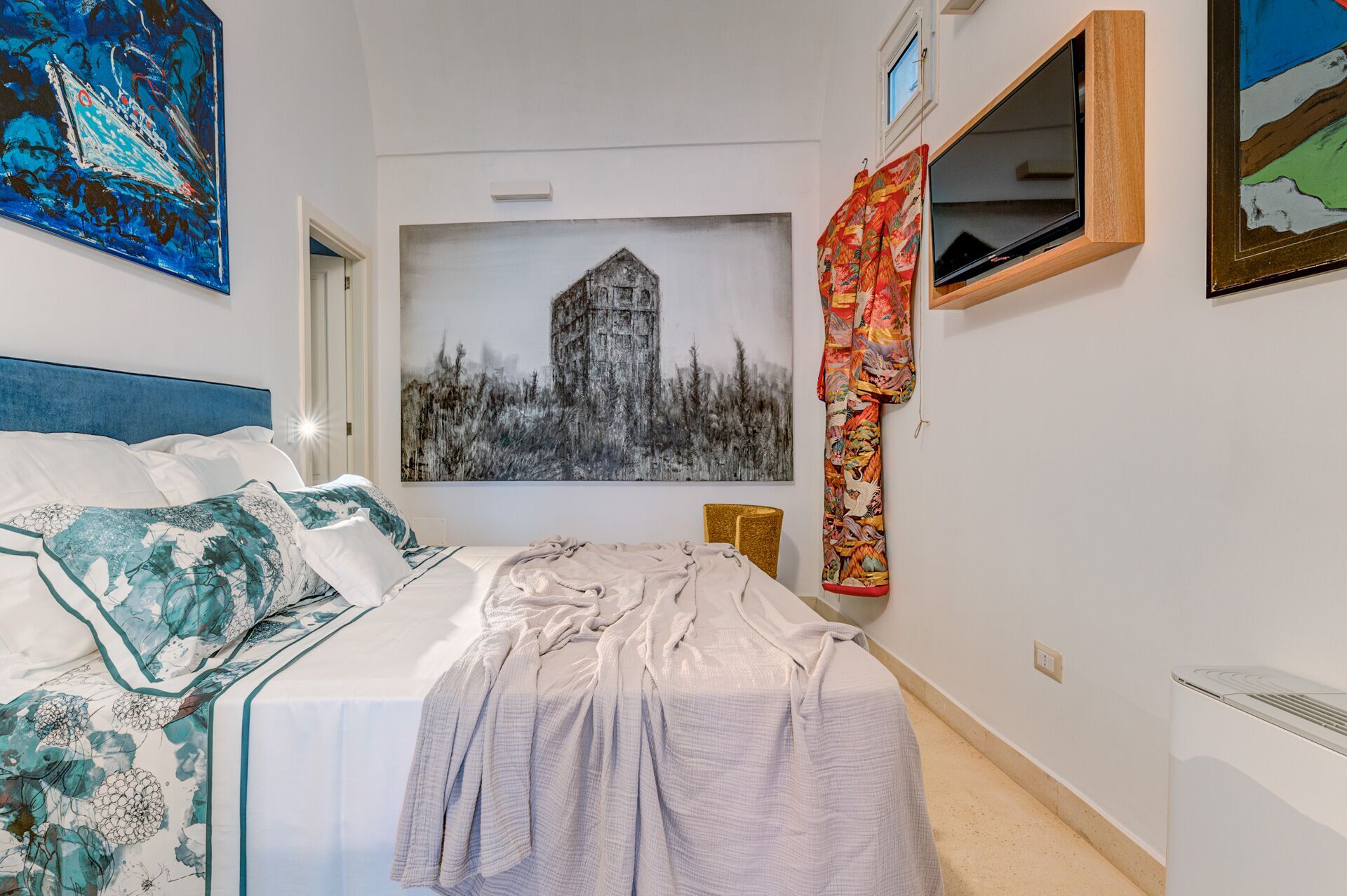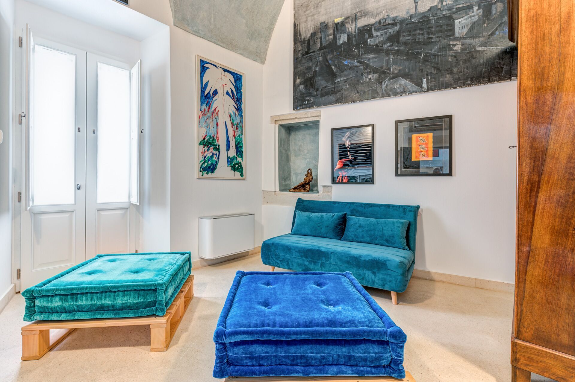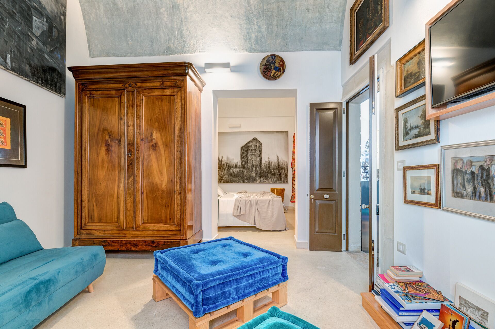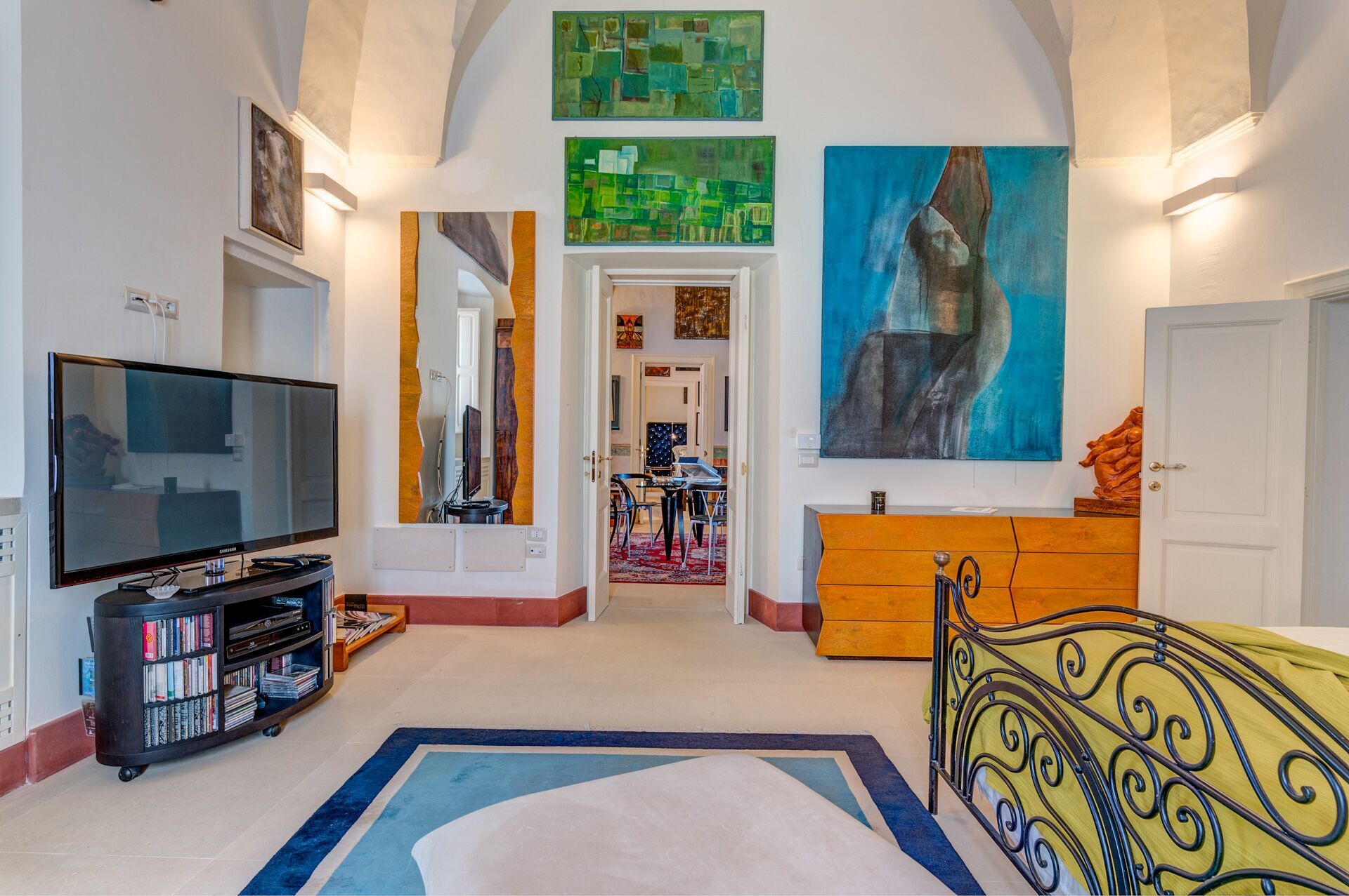Palazzo Raho is a period noble residence recently renovated with fine finishes to become a charming residence full of works of art by contemporary authors and a unique collection of rare volumes and valuable editions. Every piece of furniture and every single detail is in the sign of Art. The Palace is located in the center of the village of Lequile just 8 km from Lecce and 20 minutes from the splendid beaches of the Ionian coast near Gallipoli and Porto Cesareo. This dwelling is suitable for those who want to live an unprecedented immersive experience, in a luxury environment, with every comfort, in a dimension suspended in time and space, surrounded by art, understood not only in a contemplative sense but as a fruition of everyday life.