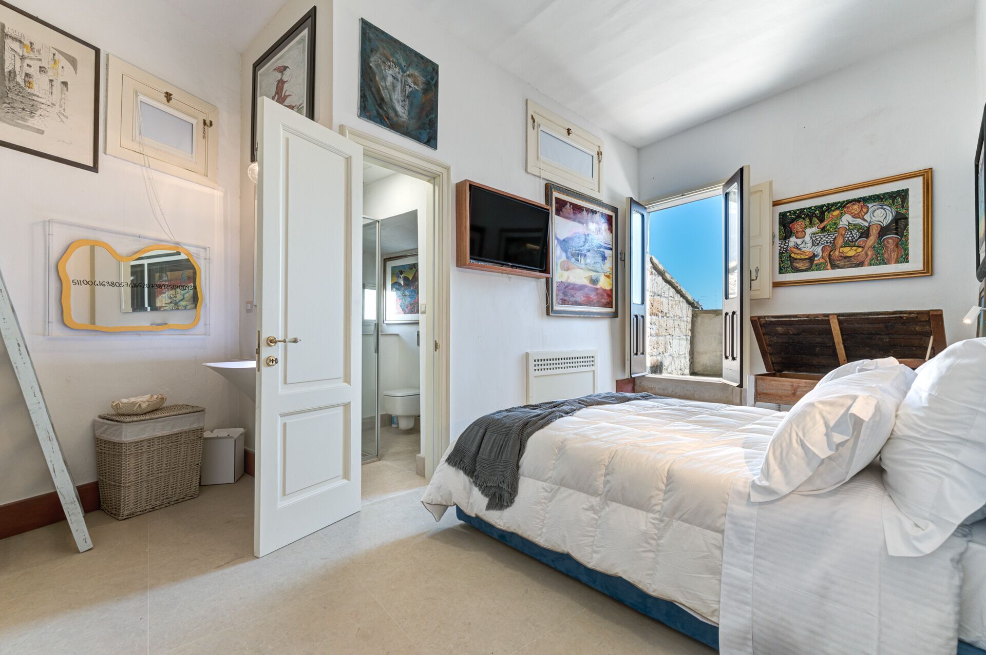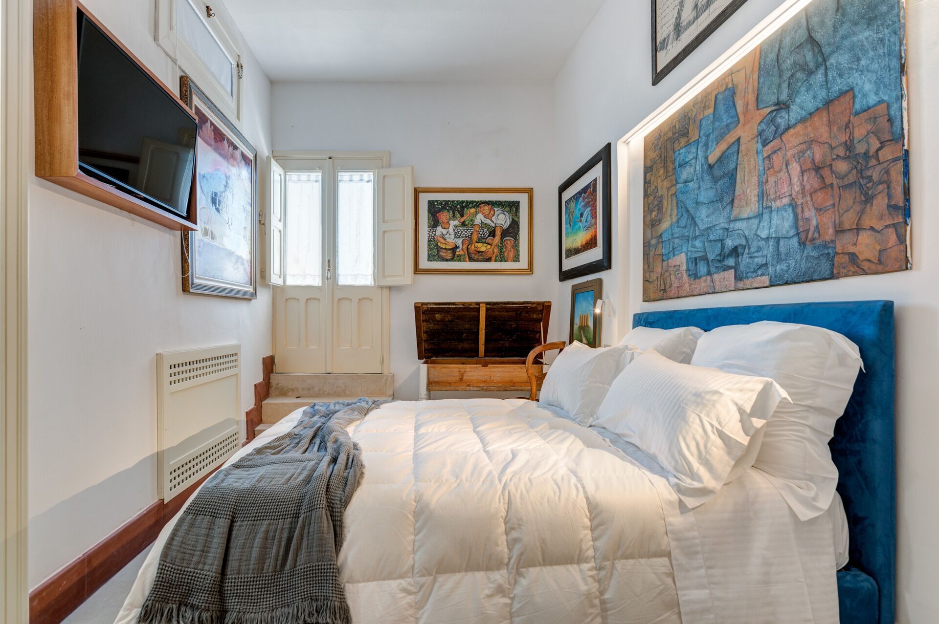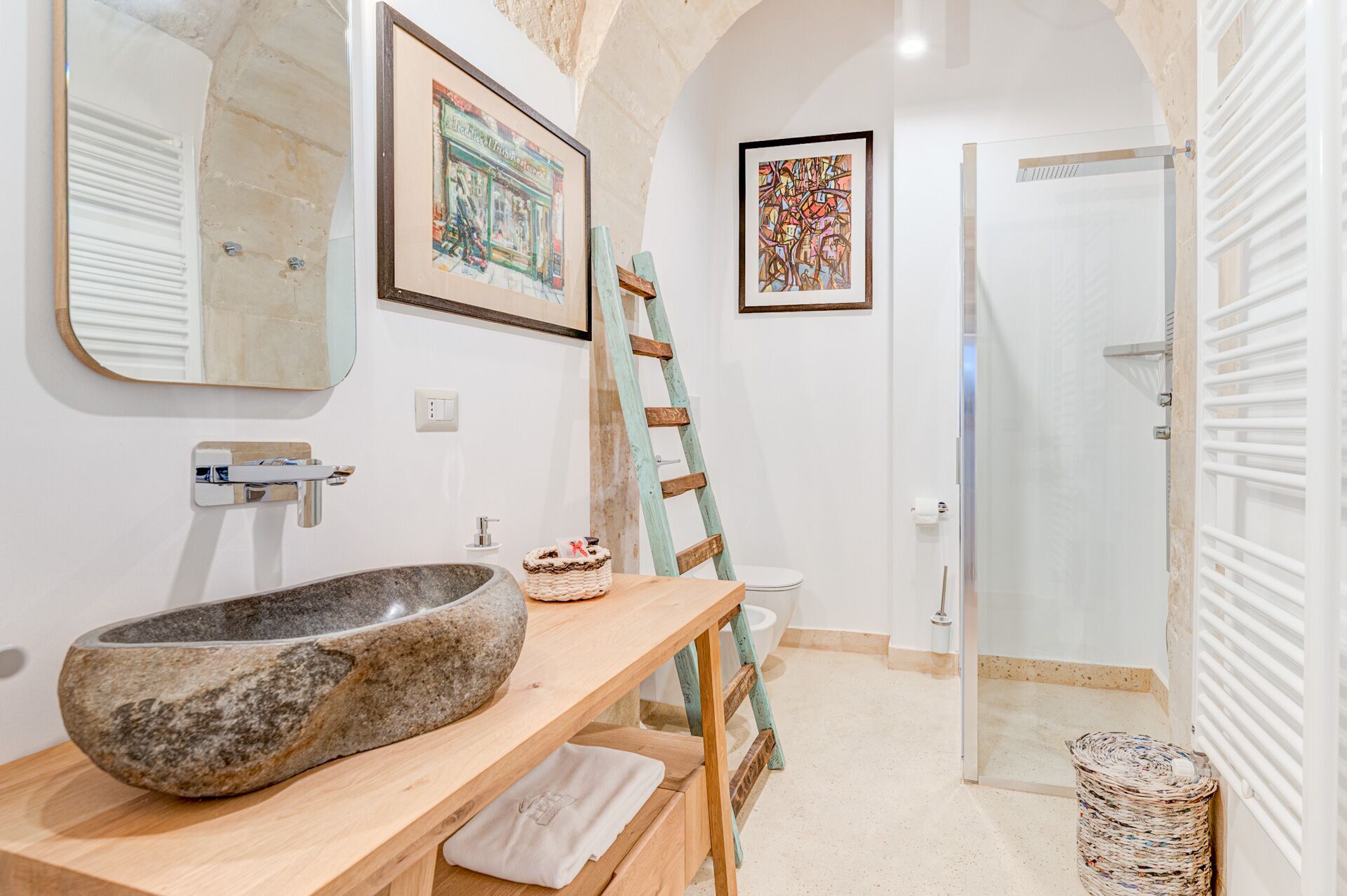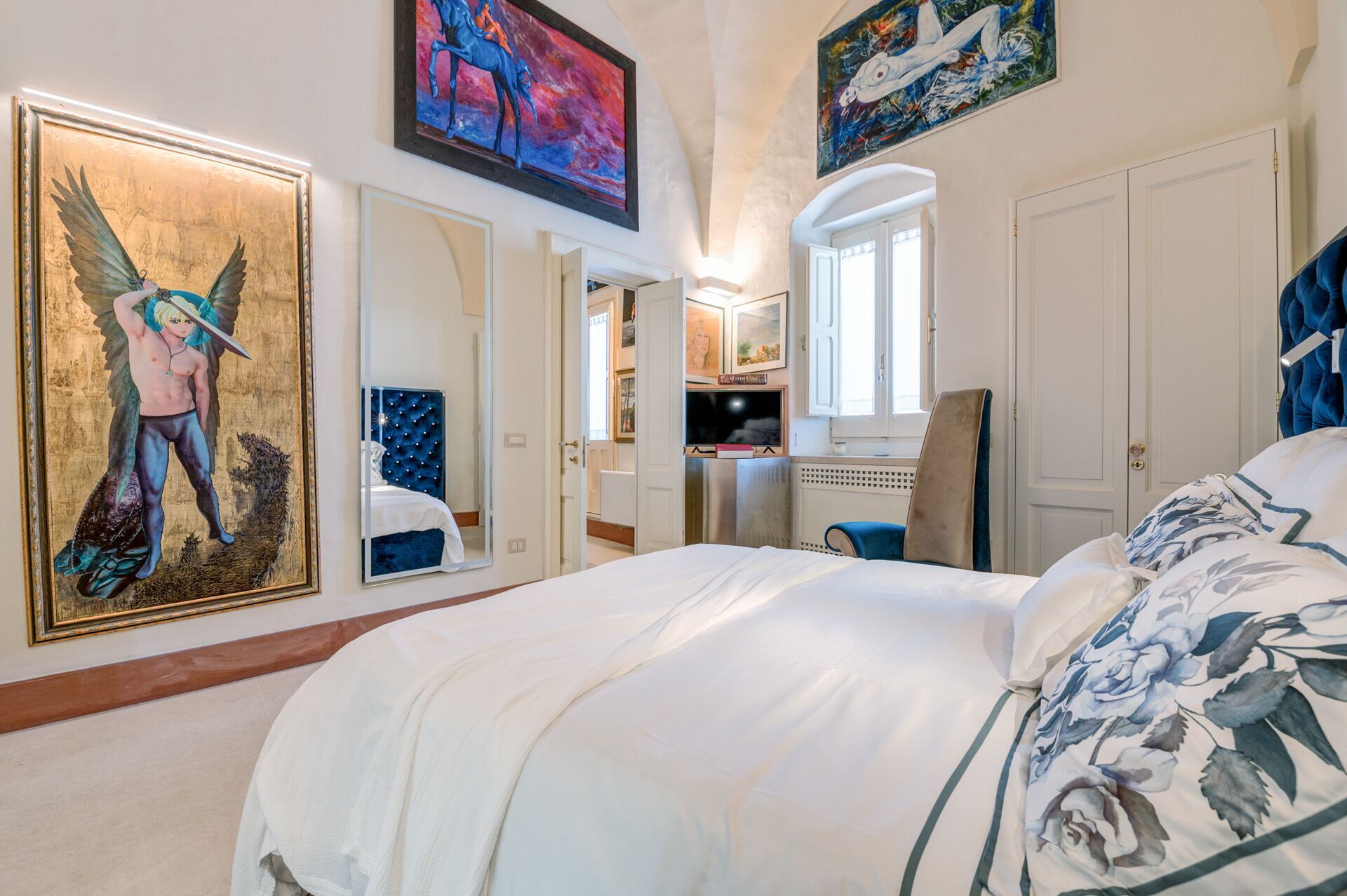 Palazzo Raho is a period noble residence recently renovated with fine finishes to become a charming residence full of works of art by contemporary authors and a unique collection of rare volumes and valuable editions. Every piece of furniture and every single detail is in the sign of Art. The Palace is located in the center of the village of Lequile just 8 km from Lecce and 20 minutes from the splendid beaches of the Ionian coast near Gallipoli and Porto Cesareo. This dwelling is suitable for those who want to live an unprecedented immersive experience, in a luxury environment, with every comfort, in a dimension suspended in time and space, surrounded by art, understood not only in a contemplative sense but as a fruition of everyday life.