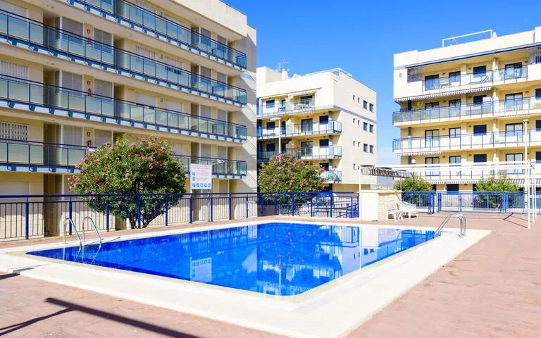 Résidence "Las Dunas". Dans le quartier de Chilches, situation tranquille, ensoleillée, à, de la mer, à 50 m de la plage. En commun: piscine rectangulaire (5 x 10 m, profondeur 140 - 220 cm, disponibilité saisonnière: 01.Jun. - 30.Sep.). Douche extérieure. Infrastructures de la Maison: ascenseur. Place de parking (couvert) près de la maison, parking public possible dans la rue. Magasin d'alimentation 700 m, restaurant, bar, café 50 m, arrêt de bus 3.6 km, gare ferroviaire 4.3 km.