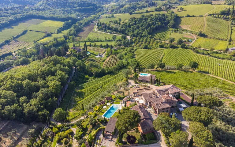 L'ancien Borgo Savignola, datant de 1700, situé dans la cave homonyme, se dresse sur une petite colline au cœur du Chianti Classico. Entouré des vignes de l'entreprise, il se compose de quatre unités immobilières pour un total de vingt trois lits. Chaque unité a sa propre cuisine et l'ensemble offre l'usage privé de deux piscines. La maison principale Lamore di Carla et son annexe abritent au total onze personnes et sont reliées entre elles par de grandes terrasses, un grand jardin et la piscine (16x6 - profondeur de 120 à 200 cm). A quelques pas se trouvent la maison d'amis (6 couchages) et la Casa 360 (6 couchages) qui dispose d'une deuxième piscine à usage exclusif (8x4 - profondeur 140 cm). L'entreprise propose des dégustations de ses propres vins en combinaison avec des spécialités de la cuisine toscane. Agrotourisme sur un domaine viticole "Savignola Paolina", année de construction 1700. À 3 km du centre de Greve in Chianti, à 35 km du centre de Firenze, à 46 km du centre de Siena, situation surélevée sur une colline, dans la verdure. A usage privé: jardin sur plusieurs niveaux 1'000 m2 (clôturé), 2 piscines cloturée (disponibilité saisonnière: 05.Avr. - 30.Sep.). Douche extérieure, meubles de jardin, barbecue. Infrastructures de la résidence: réception, restaurant, massage (en sus). Cuisinier possible (en sus). Petit-déjeuner et Demi-pension possible sur demande (en sus). Accès en voiture jusqu'à la maison (200 m chemin non goudronné). Place de parking sur le terrain. Magasins 3 km, supermarché 3 km, arrêt de bus 3.3 km. Terrain de golf (18 trous) 20 km. Attractions à proximité: Panzano in Chianti 8 km, Badia a Passignano 12 km, Radda in Chianti, San Donato 18 km, Castellina in Chianti 20 km, Gaiole in Chianti 30 km, San Gimignano 46 km. Veuillez noter: adapté(e) aux familles. Adapté à l'organisation d'évènements. Possibilité de réserver des cours de cuisine. Vente locale de produits de la ferme. Le propriétaire habite sur le même terrain.