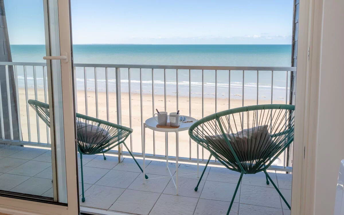 Bel immeuble "Les Mouettes". Dans la localité, à 200 m du centre de jullouville, excellente situation: centrale mais tranquille, à 10 m de la mer, à 10 m de la plage. Place de parking. Centre commercial, café 200 m, centre à 3 minutes à pieds, arrêt de bus "Edenville" 1 km, plage de sable 10 m. Ecole de voile 50 m, golf miniature 5 km. Attractions à proximité: Granville 12 km, Coutances 35 km, Le Mont Saint Michel 48 km, Iles Chaussey au départ de Granville 17 km.