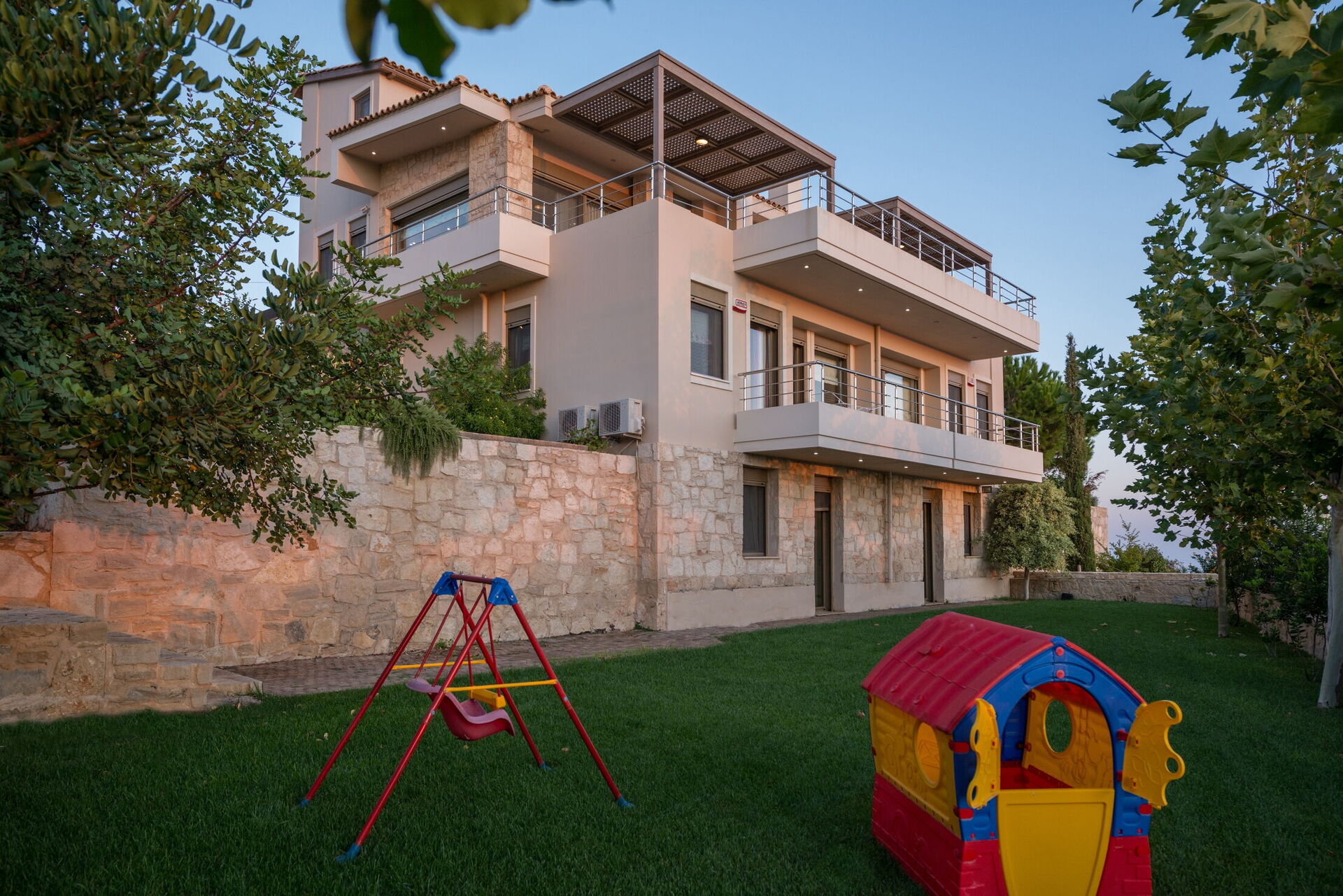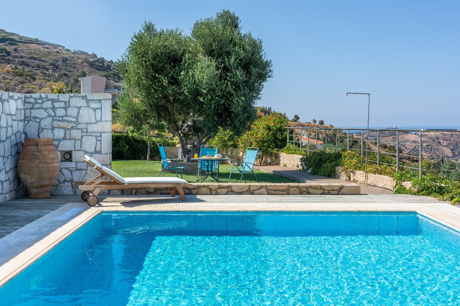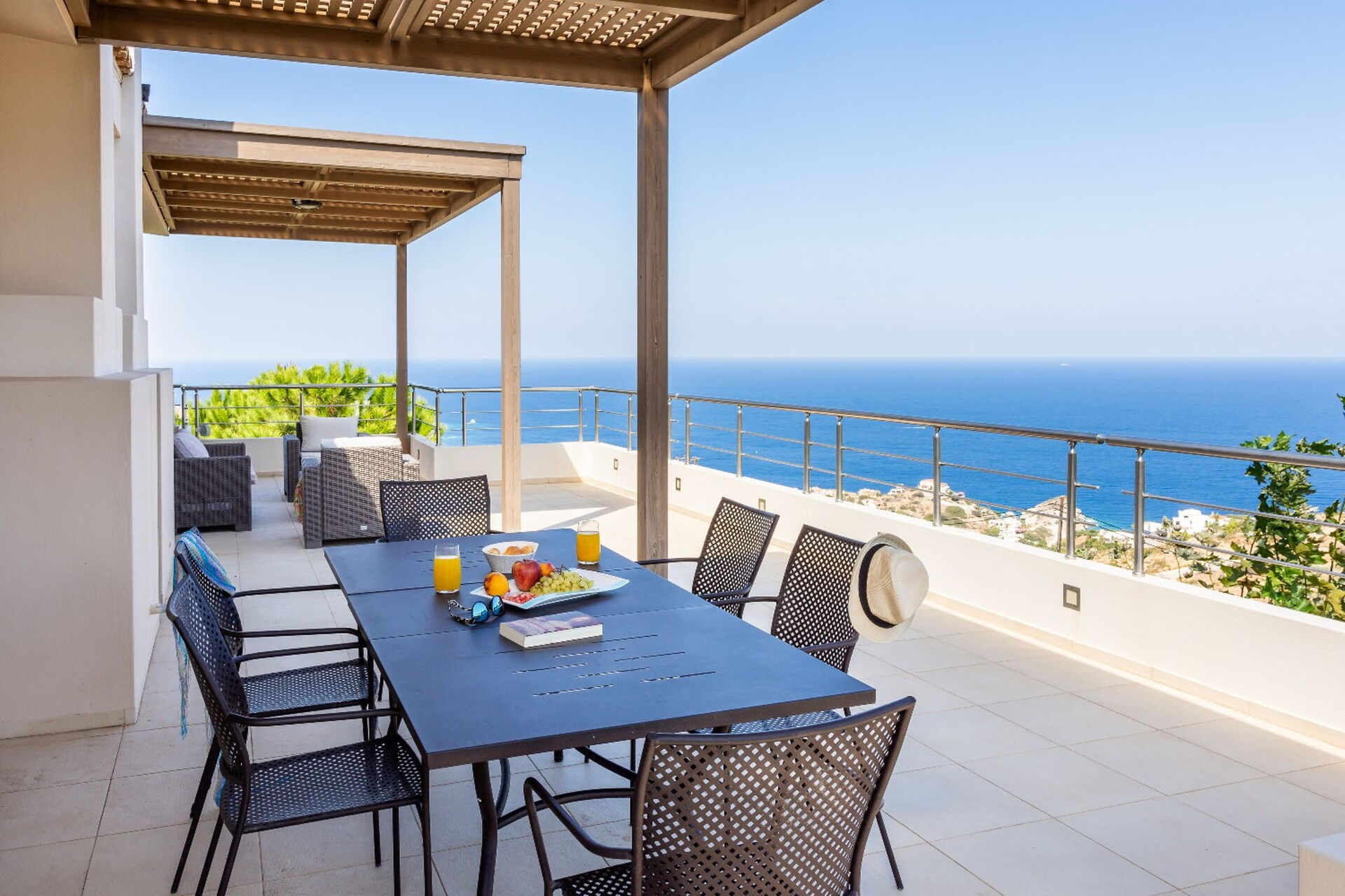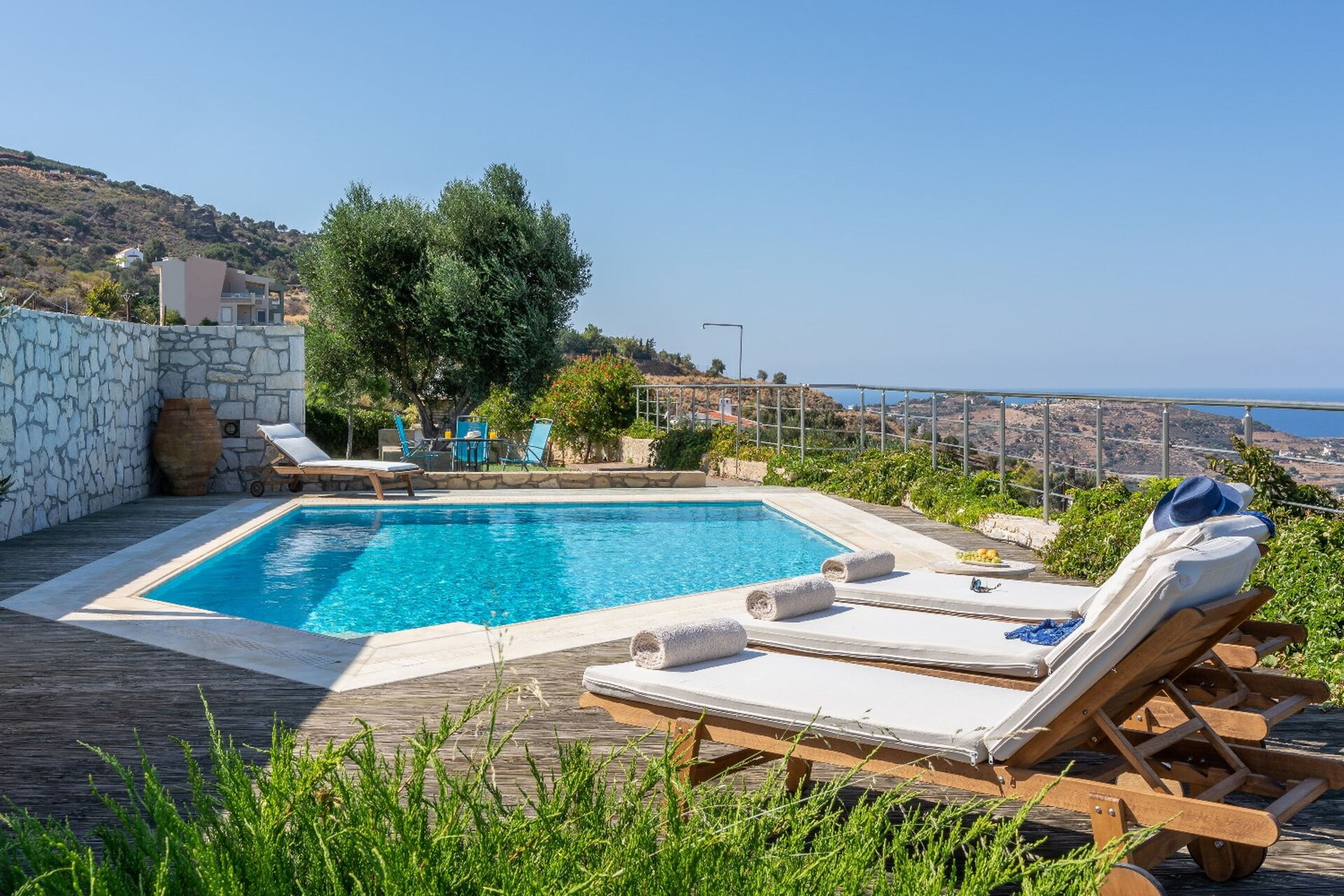 à votre arrivée à Villa Ethniki vous trouverez une jolie propriété, propre et bien entretenue, avec vue sur mer idéale pour des vacances calmes en Crète. Après une épuisante journée de shopping, passez du temps avec la famille et les amis en bord de piscine en dégustant un verre de vin, un moyen idéal pour vous délasser à la fin de la journée. En plein air vous trouverez également terrain de jeu et un barbecue. Si vous aimez cuisiner pour la famille et les amis il y a une cuisine bien equipée y compris machine à café, four micro-onde, grille-pain, cuisinière et réfrigérateur, ainsi que, assez de vaisselle et couverts jusqu'à 12 personnes. Si vous préférez dîner «al fresco», il y a à votre disposition un balcon entièrement meublé où vous pourrez profiter du beau temps tout en mangeant en plein air.