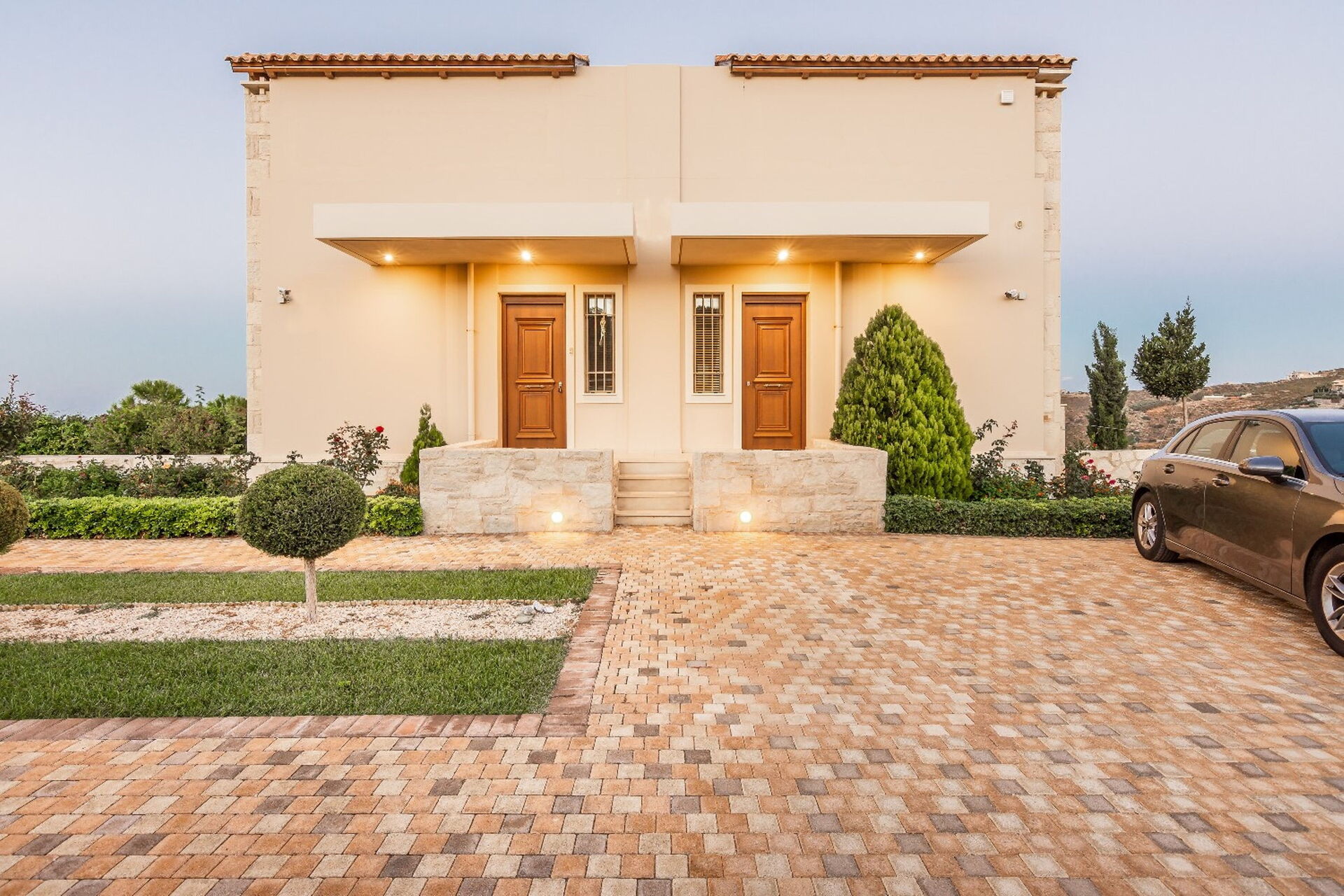 Comprend 2 jardins, terrasse, parking.
