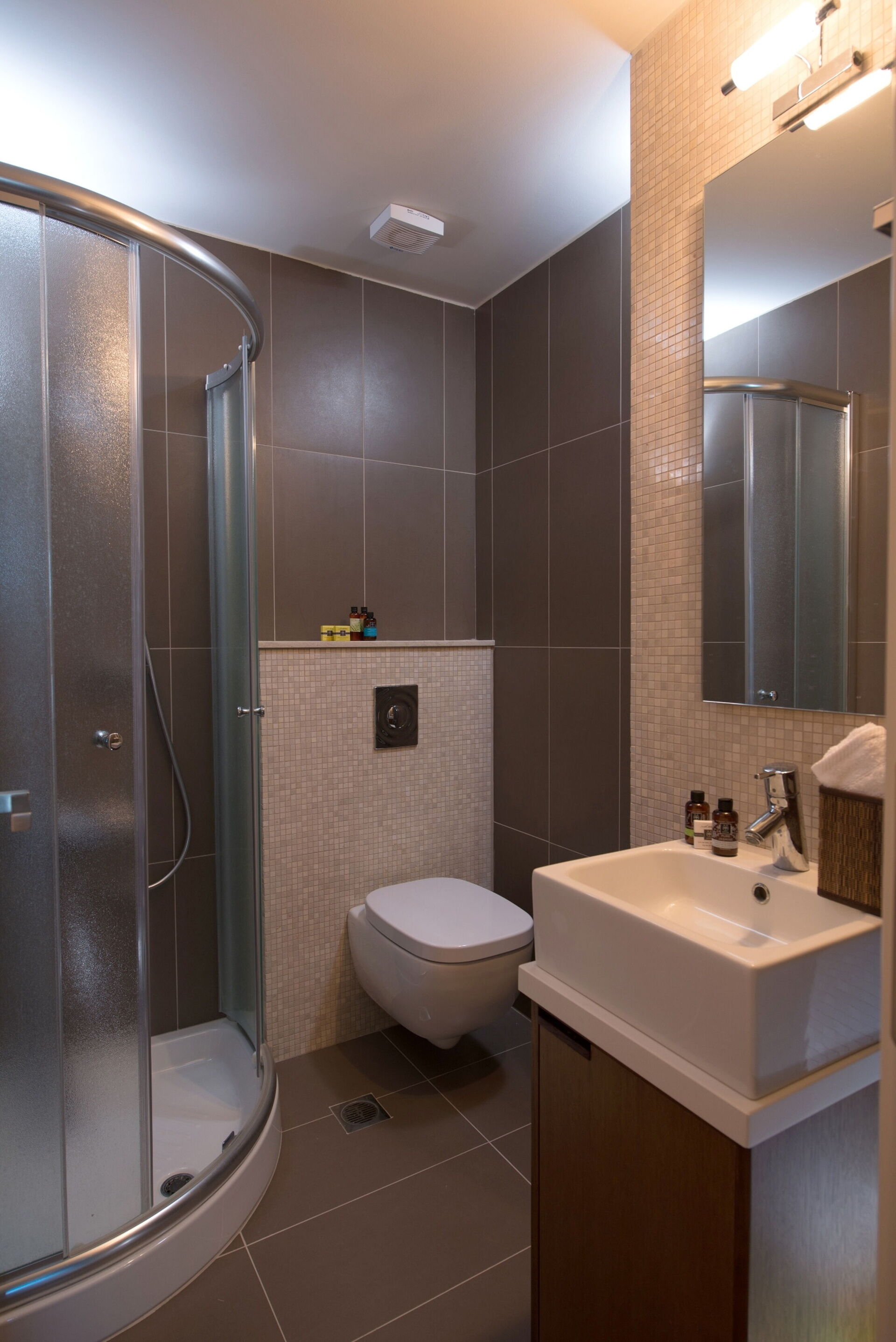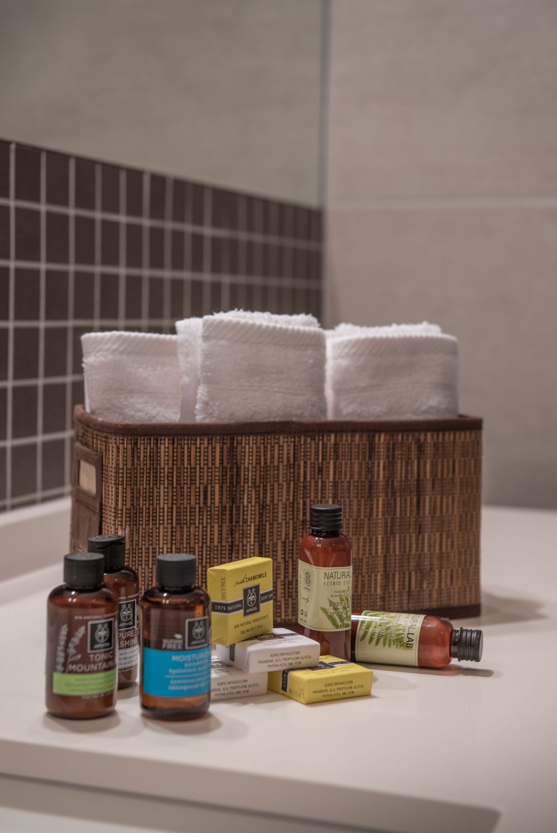 chambre avec salle de bain: deux lits à une place, climatisation, tv satellitaire, fauteuil, bassin, wc, douche.