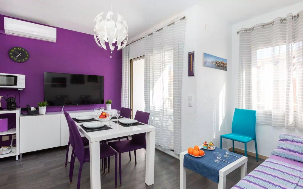 "jazz", apt 2 pièces 33 m2. Clair, aménagement moderne: séjour/salle à manger avec 1 divan-lit (150 cm, longueur 200 cm), TV, air-conditionné et chauffage à air chaud. Sortie sur le balcon. 1 chambre double avec 1 grand-lit (140 cm, longueur 200 cm), chauffage électrique. Cuisine ouverte (1 plaques à induction, grille-pain, bouilloire électrique, micro-ondes, cafetière électrique, Capsules pour machine à café (Nespresso)) avec table pour les repas, TV, air-conditionné et chauffage à air chaud. Sortie sur le balcon. Bain/WC. Petit balcon 3 m2, situation est. Mobilier de balcon. Vue sur la localité. A disposition: lave-linge, fer à repasser, sèche-cheveux. Internet (Connexion WIFI, gratuit). Veuillez noter: TV seulement ES. HUTG-004185 // Reg. Nr.: ESFCTU00001701300052317200000000000000000HUTG-0041859