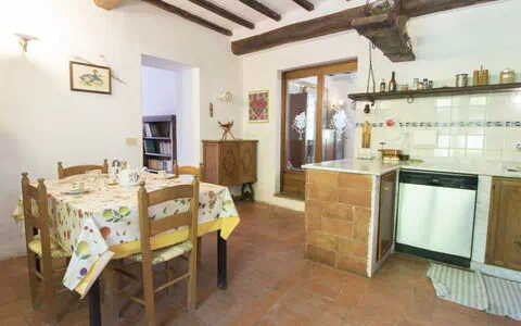 Ancienne ferme 7 pièces 200 m2 sur 2 niveaux. Aménagement confortable et rustique: séjour avec cheminée et TV. Sortie sur le jardin. Salle à manger. Sortie sur le jardin. 1 chambre avec 2 lits. Grande cuisine (4 plaques de cuisson, four, lave-vaisselle, micro-ondes, congélateur) avec table pour les repas. Sortie sur le jardin, pergola. Douche/bidet/WC. À l'étage supérieur: 1 chambre avec 2 lits et air-conditionné. 3 chambres doubles, chaque chambre avec: air-conditionné. Bain/bidet/WC. Chauffage au gaz. Possibilité de chauffage uniquement du 01.11. au 15.04. Très belle vue sur la vallée et les alentours. A disposition: lave-linge, moustiquaire, sèche-cheveux. Internet (Connexion WIFI, gratuit). IT055022C202030127