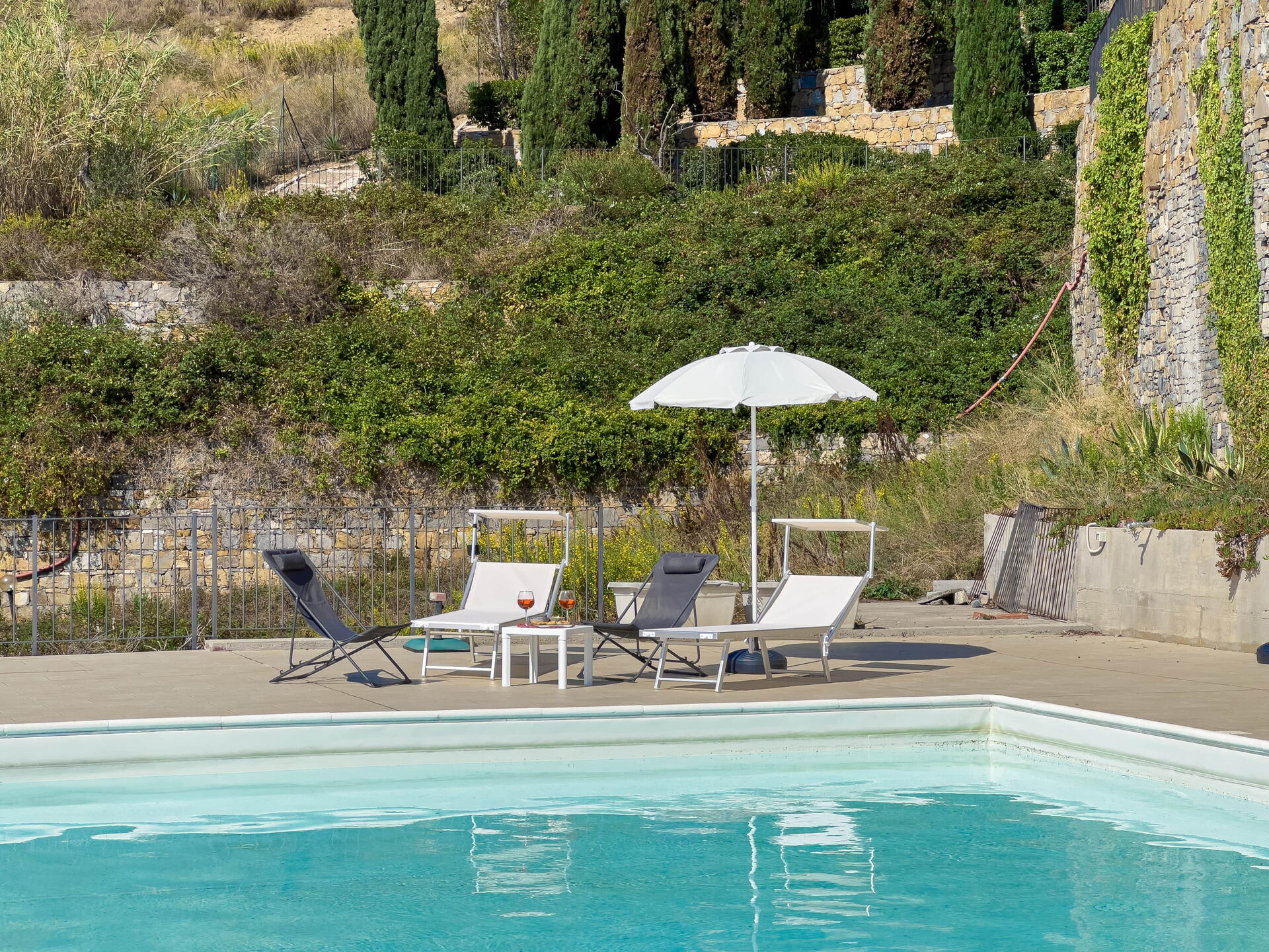 Pour des vacances reposantes, dans un endroit calme, dans le vert de la pinède et des oliveraies de la Ligurie, avec vue sur la mer.