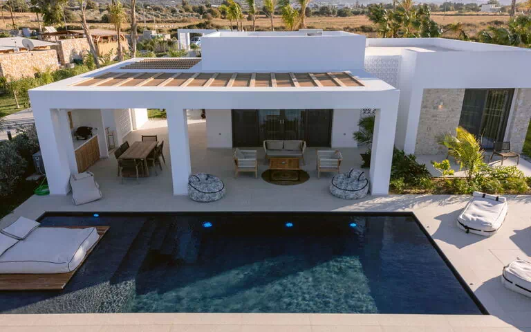 Villa moderne, confortable, individuelle "Cocomoon", année de construction 2021. Dans le quartier de Tigaki, à 7.4 km du centre de Kos, situation tranquille, ensoleillée, à 500 m de la mer, à 2.7 km de la plage. En commun: ping-pong, barbecue, espace de jeux pour les enfants. A usage privé: beau jardin entretenu 700 m2 avec fleurs et arbres, pré, piscine rectangulaire (26 m2, profondeur 140 cm, disponibilité saisonnière: 01.Avr. - 31.Oct.). Douche extérieure, barbecue. Infrastructures de la résidence: salle fitness. Change de linge 3 fois par semaine. Changementde linge de toilette 3 fois par semaine. Nettoyage 3 fois par semaine. Place de parking (pour 2 voitures) près de la maison. Magasin d'alimentation 1.5 km, supermarché 1.5 km, restaurant 1.5 km, bar 1.5 km, boulangerie 1.5 km, café 1.5 km, plage de sable "Tigaki" 2.7 km, centre de plongée 7.5 km, centre thermal "Therma Beach" 18.8 km. Ecole de surf 6.8 km, tennis 4 km, golf miniature 9.7 km, centre équestre 5.3 km. Attractions à proximité: Hippocratic Foundation & Museum 6.8 km, Ancient Agora of Kos 7.7 km, Neratzia Castle 8.2 km, Plane Tree of Hippocrates 8.1 km, Roman Odeon of Kos 6.9 km, Aquatica Waterpark 25.6 km. Veuillez noter: voiture recommandée. Équipement pour bébés sur demande (inclus). Groupes de jeunes sur demande seulement. La photo ne montre qu’un exemple de location de vacances. D’autres appartements sont également proposés à la location dans cette maison de vacances. La propriété référencée GR2400.18.1 est située sur le même terrain.