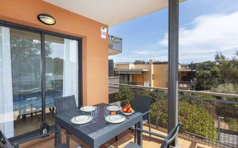 "Sa Boadella Mimosa", apt 3 pièces 56 m2. Spacieux et clair, aménagement plaisant: séjour/salle à manger avec 1 divan-lit (135 cm, longueur 190 cm), table pour les repas, Télévision numérique et air-conditionné. Sortie sur la terrasse. 1 chambre double avec 1 grand-lit (135 cm, longueur 190 cm). Sortie sur la terrasse. 1 chambre double avec 2 lits (90 cm, longueur 190 cm). Cuisine ouverte (four, lave-vaisselle, 4 plaques vitrocéramiques, grille-pain, bouilloire électrique, micro-ondes, congélateur, cafetière électrique). Bain/bidet/WC. Chauffage par le sol. Meubles de terrasse. Vue sur la forêt. A disposition: lave-linge, fer à repasser, chaise haute pour enfant, lit bébé jusqu'à 2 ans, sèche-cheveux. Internet (Connexion WIFI, gratuit). Place de parking No 15 (couvert, cloturée, 1 Voiture). Adapté(e) aux familles. HUTG-004210 // Reg. Nr.: ESFCTU00001701300017250900000000000000HUTG-004210122